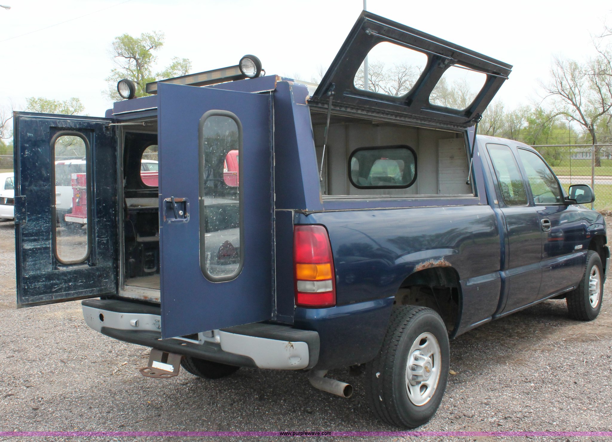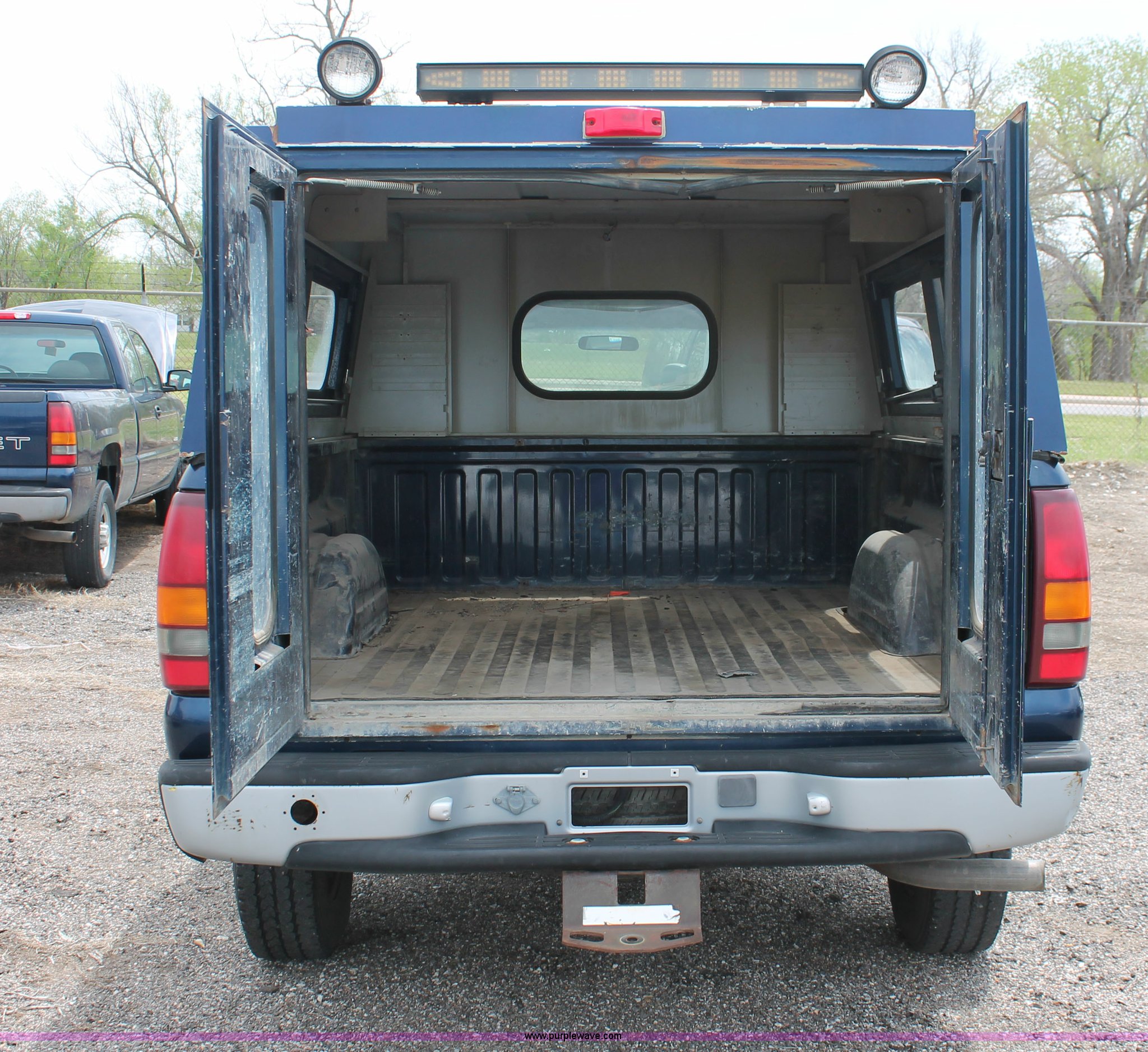 2000 Chevrolet Silverado 2500 pickup truck. 86,466 miles on odometer, 5.3L V8 OHV 16V gas engine, Automatic transmission, AC and heat, Tilt, AM/FM, Manual windows and locks, Vinyl interior, Steel utility topper Full rear doors, Full length reach in side doors, Rubber bed mat, LT225/75R16 tires, Hail damage, Battery dead, Paint peeling, Rust, Spare tire, Unit# 40186. 1GCFC29T7YE331652. Shipping quotes available. Central Maintenance Facility. 1801 S McLean. Wichita, KS 67213