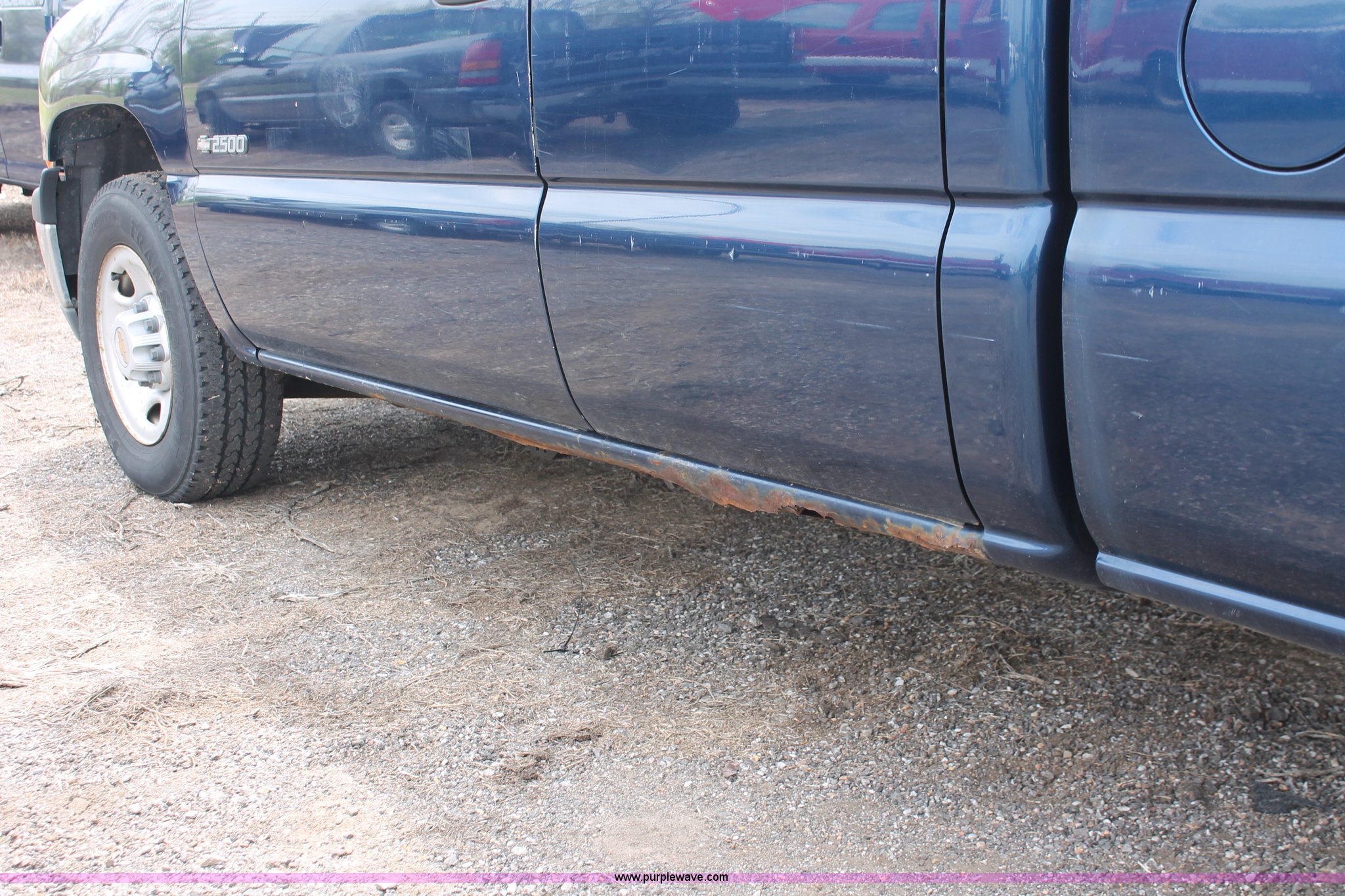 Purple Wave is selling a used Passenger Vehicle in Kansas. This item is a 2000 Chevrolet Silverado 2500 pickup truck with the following: 86,466 miles on odometer, 5.3L V8 OHV 16V gas engine, Automatic transmission, AC and heat, Tilt, AM/FM, Manual windows and locks, Vinyl interior, Steel utility topper, Full rear doors, Full length reach in side doors, Rubber bed mat, LT225/75R16 tires, Hail damage, Battery dead, Paint peeling, Rust, Spare tire, Unit# 40186