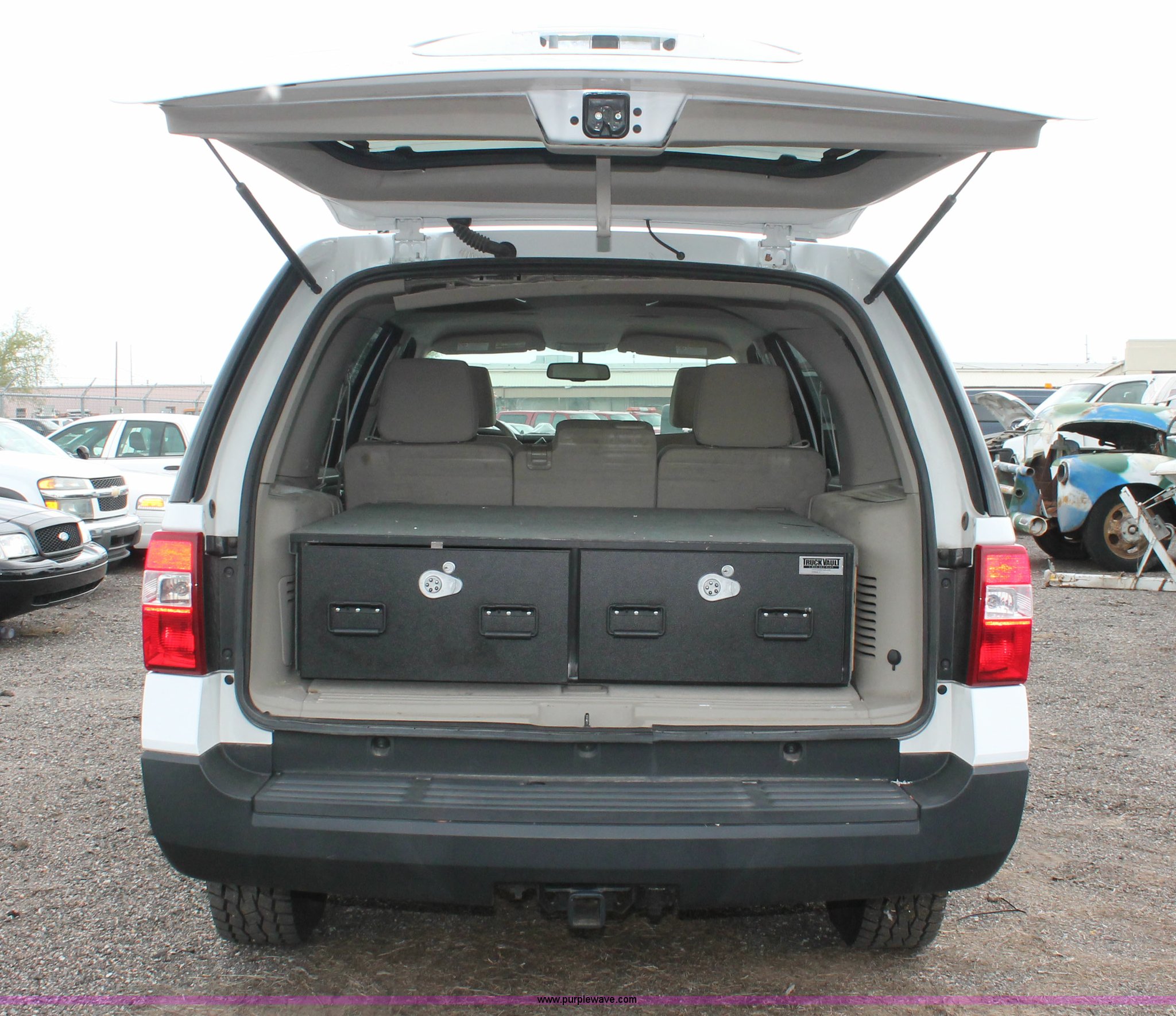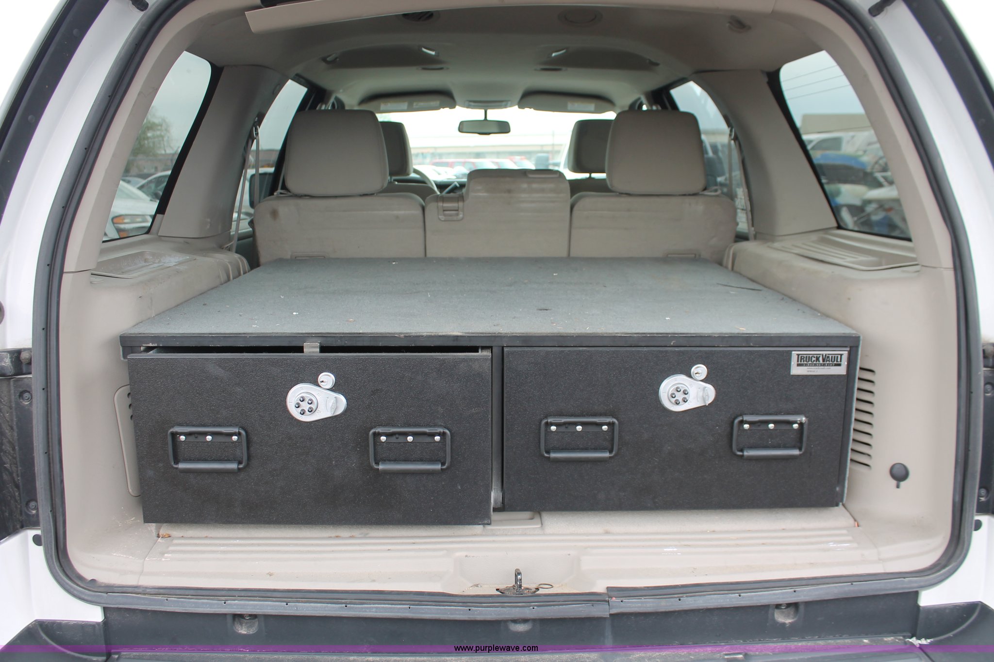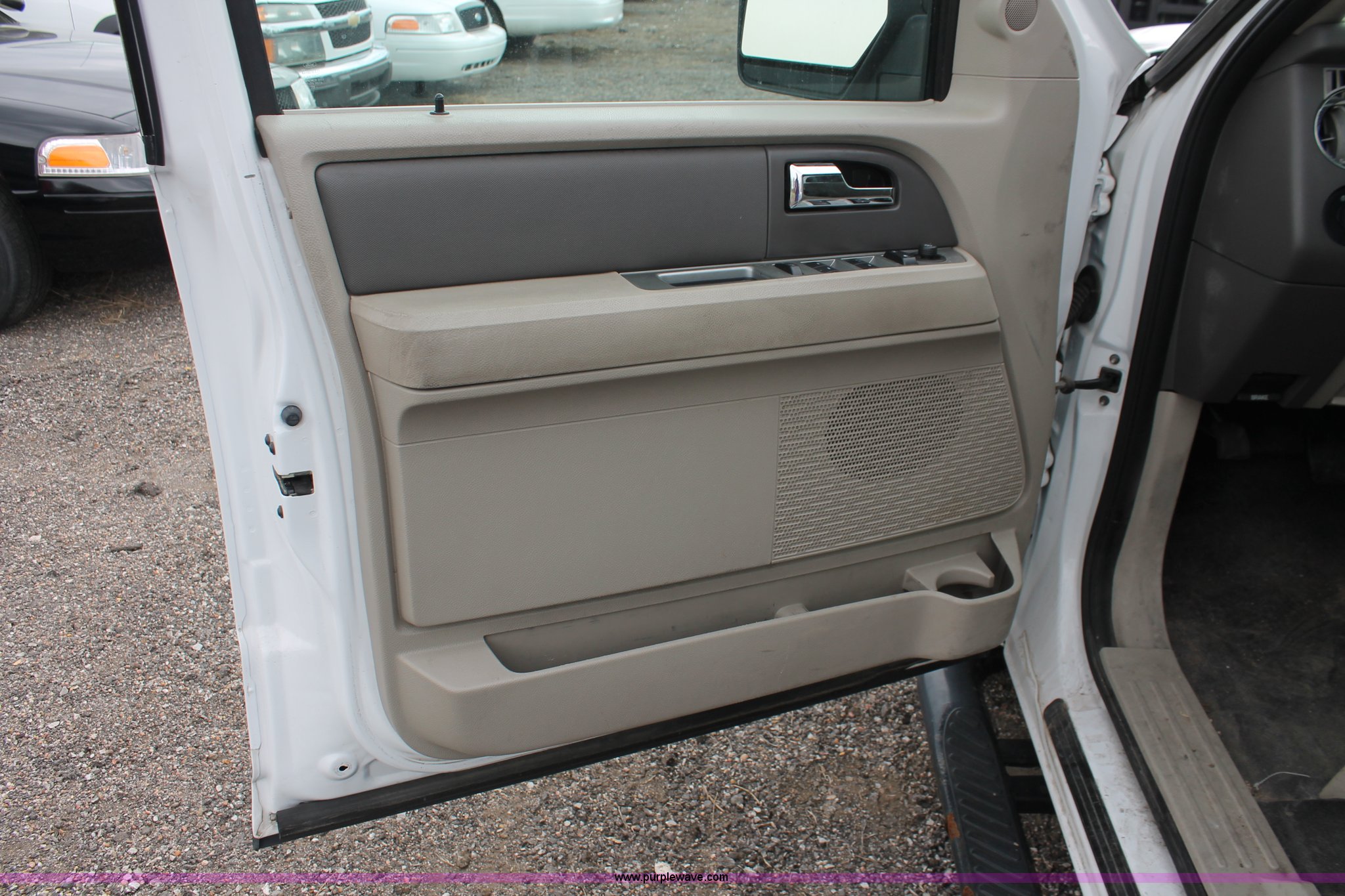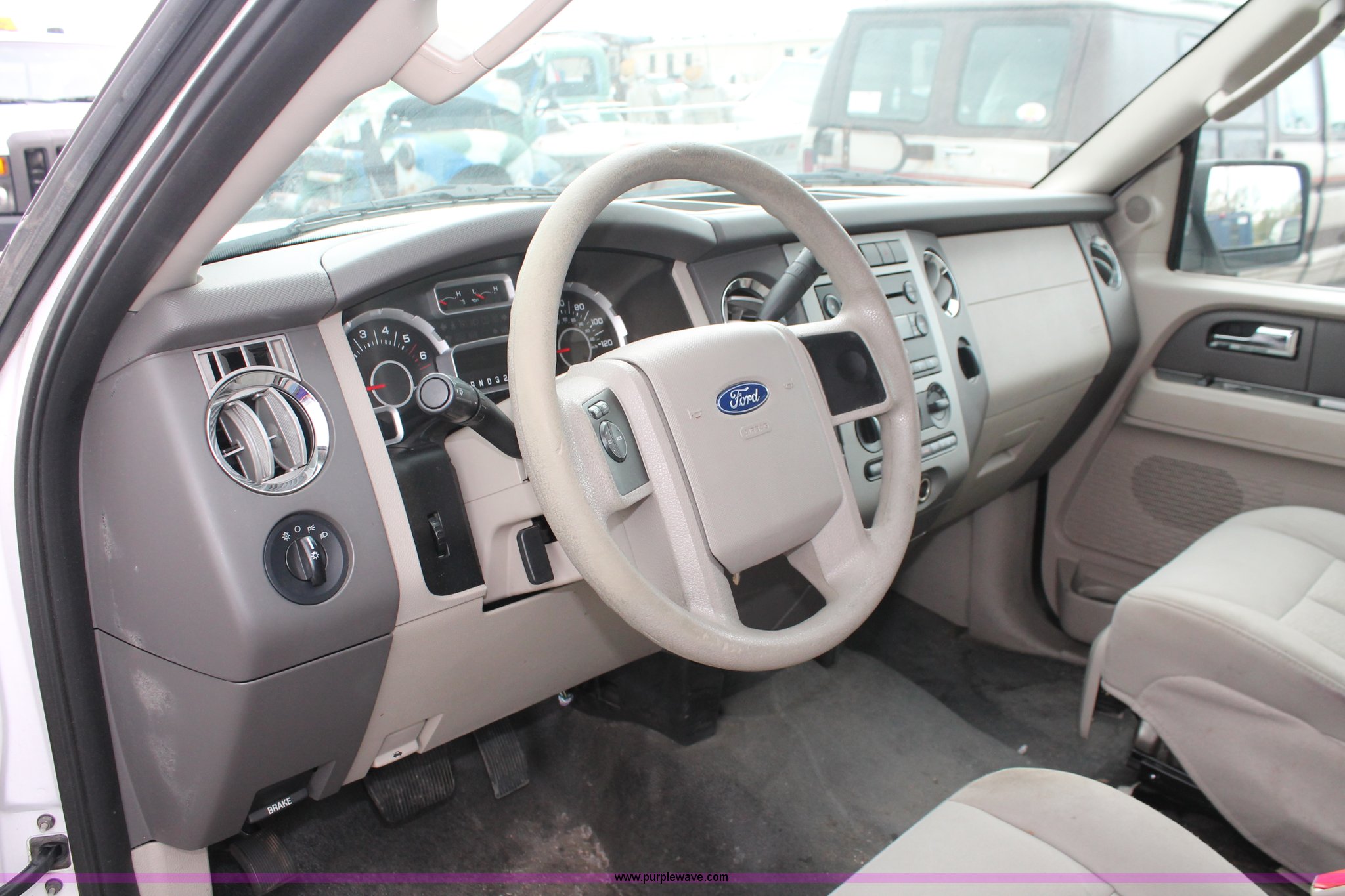 Purple Wave is selling a used Passenger Vehicle in Kansas. This item is a 2007 Ford Expedition XLT SUV with the following: 52,898 miles on odometer, 5.4L V8 SOHC 16V gas engine, Automatic transmission, AC and heat, Tilt, Cruise, AM/FM/CD, Power windows, locks, mirrors, and seats, Cloth interior, Nerf bars, Luggage rack, Keyless door entry pad, Storage vault, Receiver hitch, Trailer wiring, LT265/70R17 tires, Unit# 001380