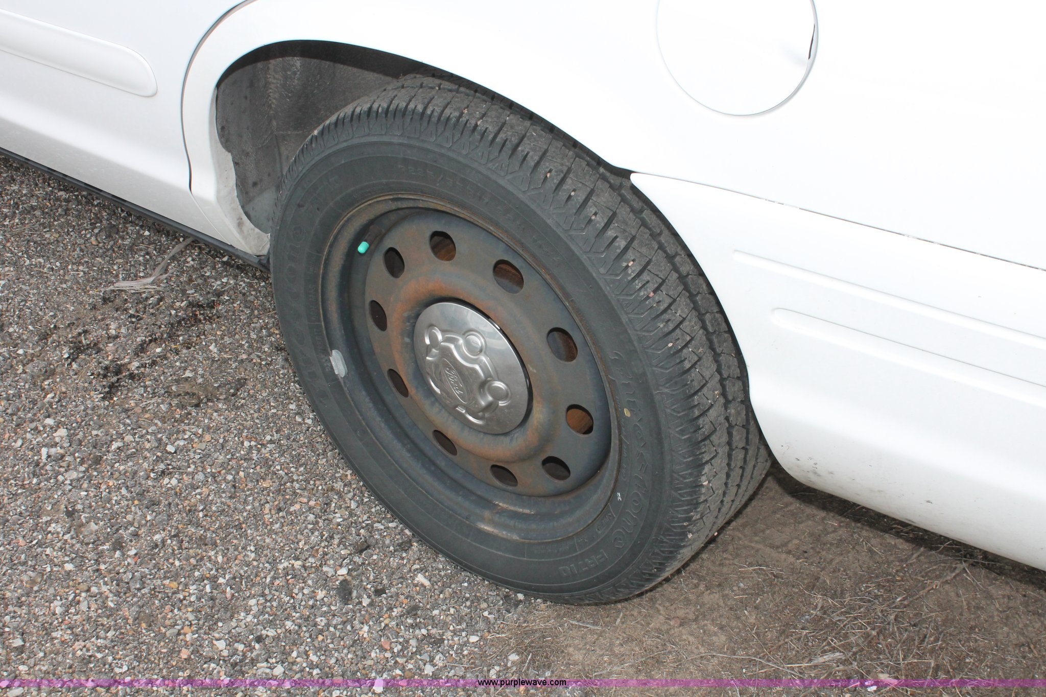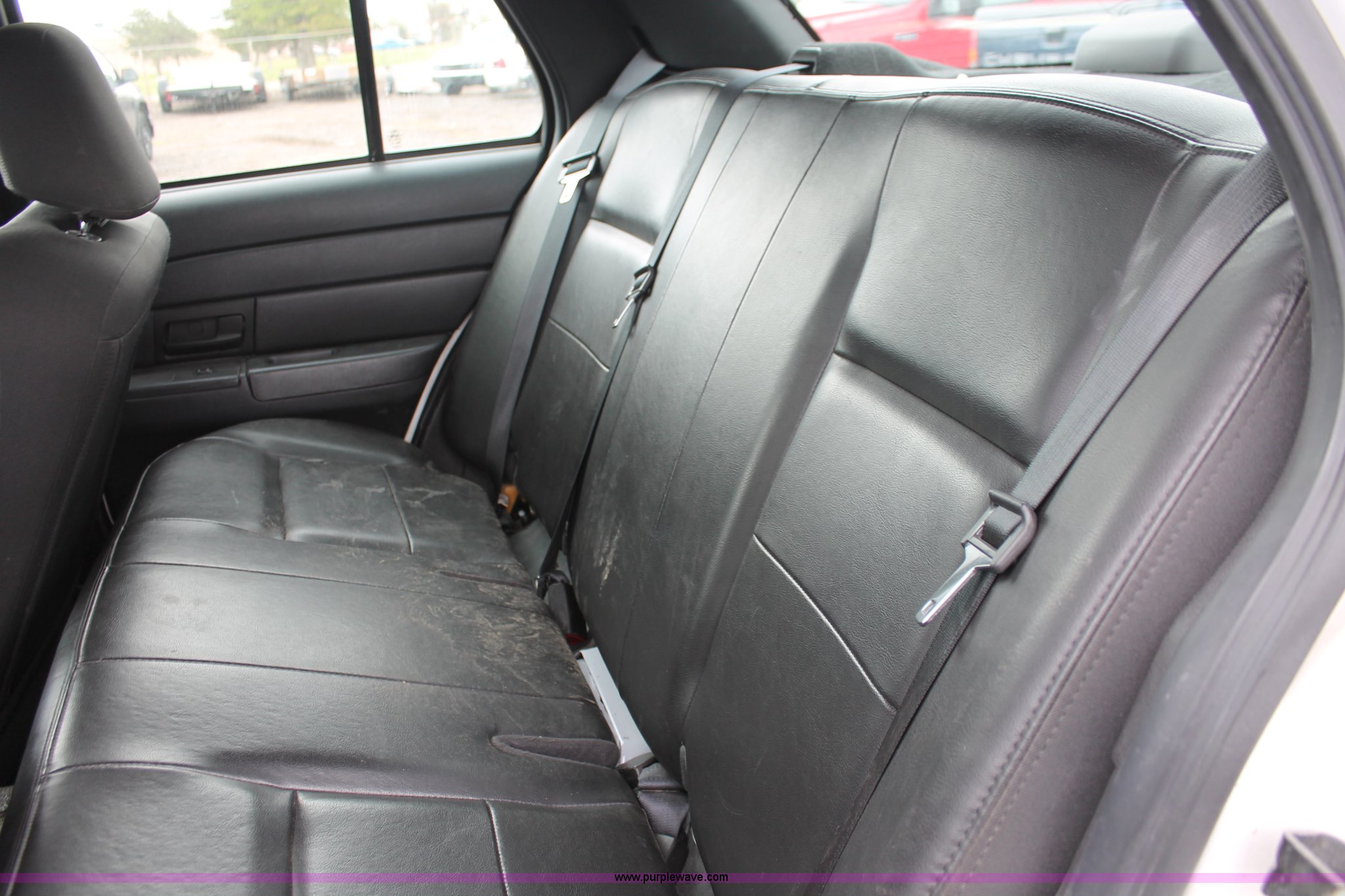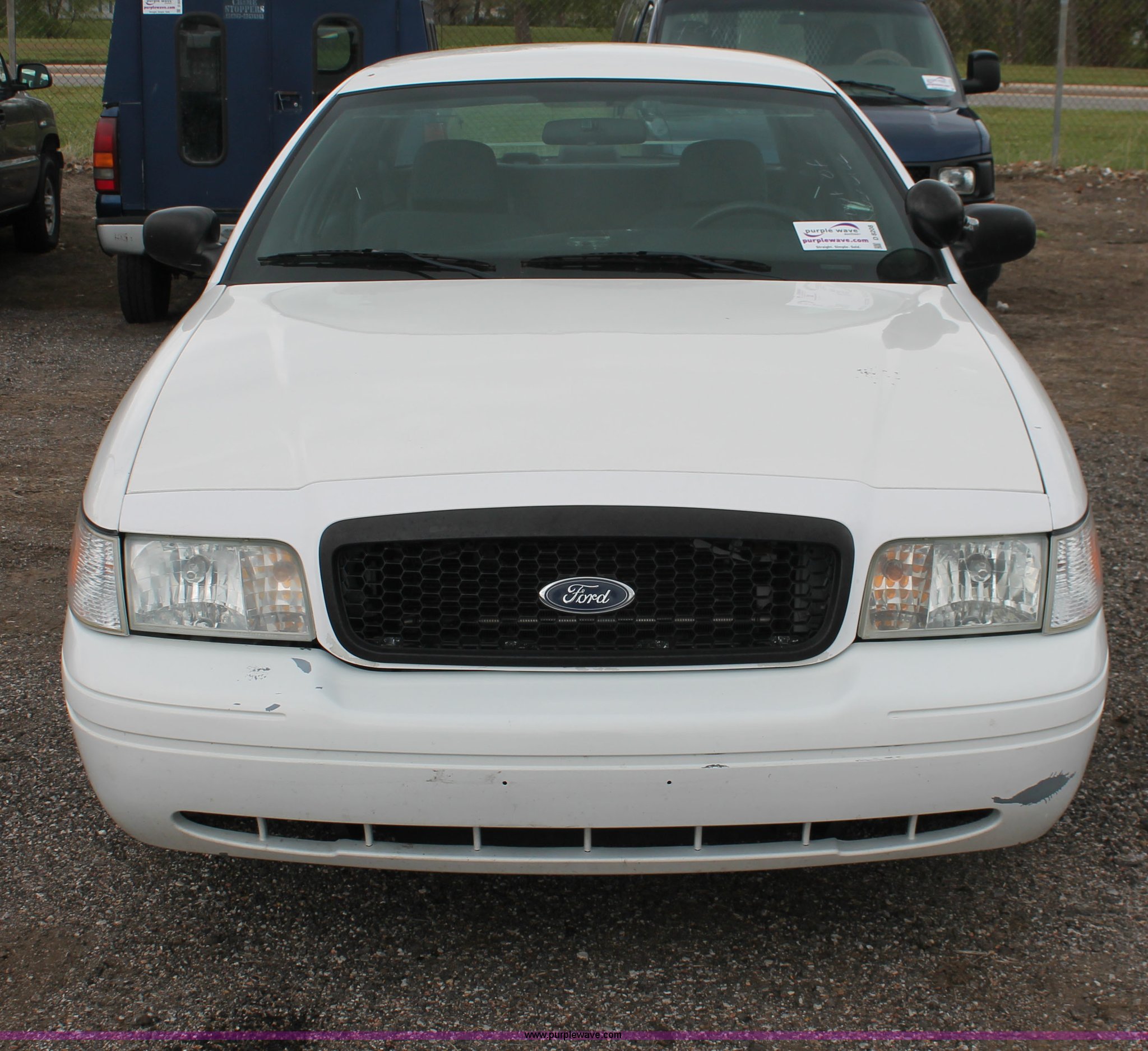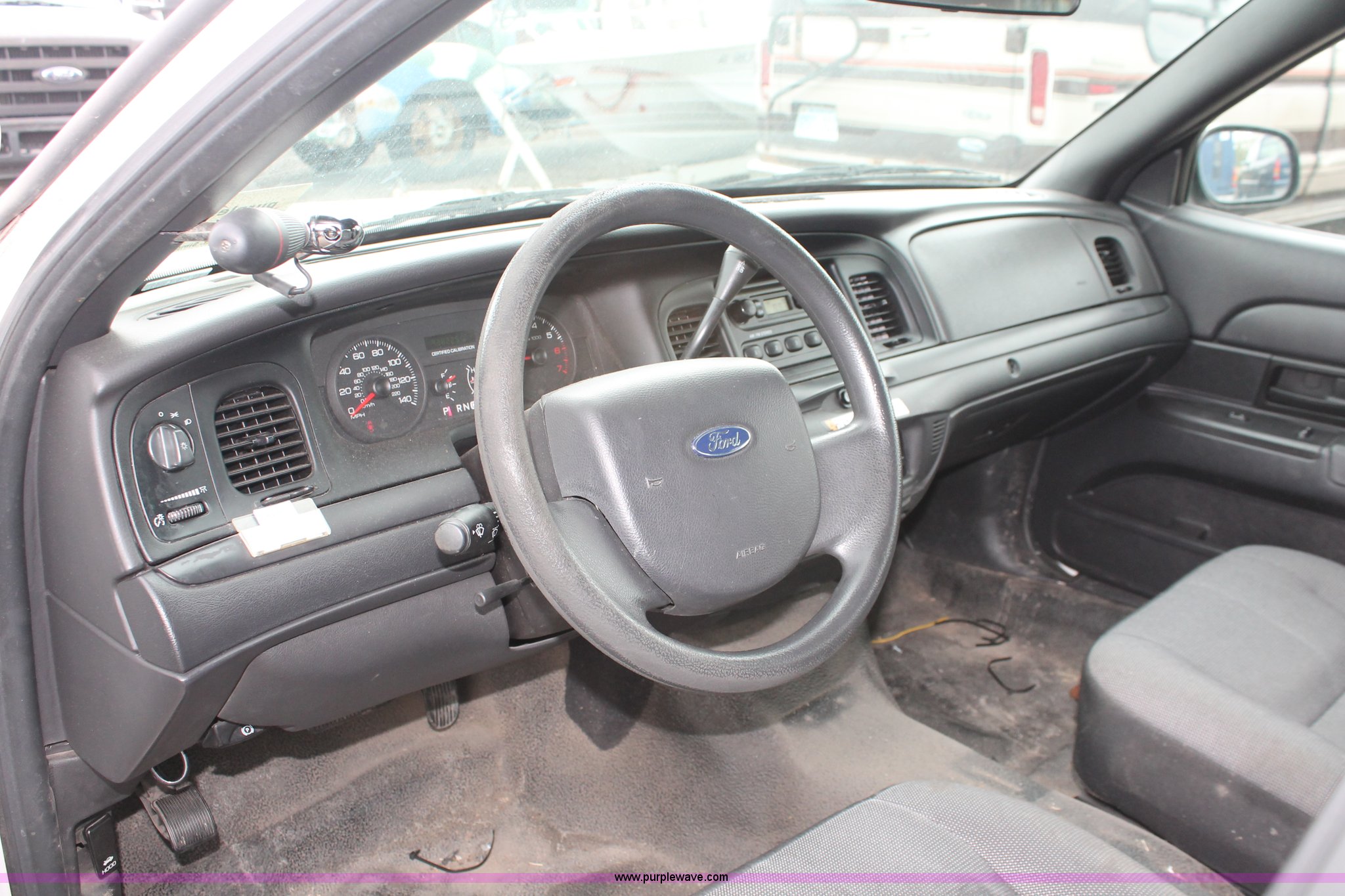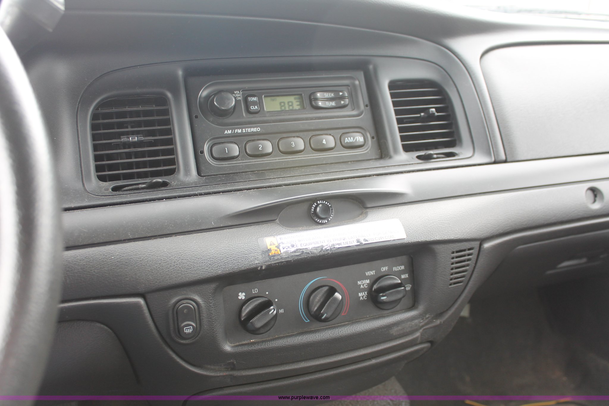 Purple Wave is selling a used Passenger Vehicle in Kansas. This item is a 2006 Ford Crown Victoria Police Interceptor with the following: 93,822 miles on odometer, 4.6L V8 SOHC 16V gas engine, Automatic transmission, AC and heat, Tilt, AM/FM, Power windows, locks, mirrors, and seats, Cloth front interior, Vinyl rear interior, P235/55R17 tires, Hail damage, Paint peeling, Passenger seat bolts broken, Holes in trunk, Unit# 000957