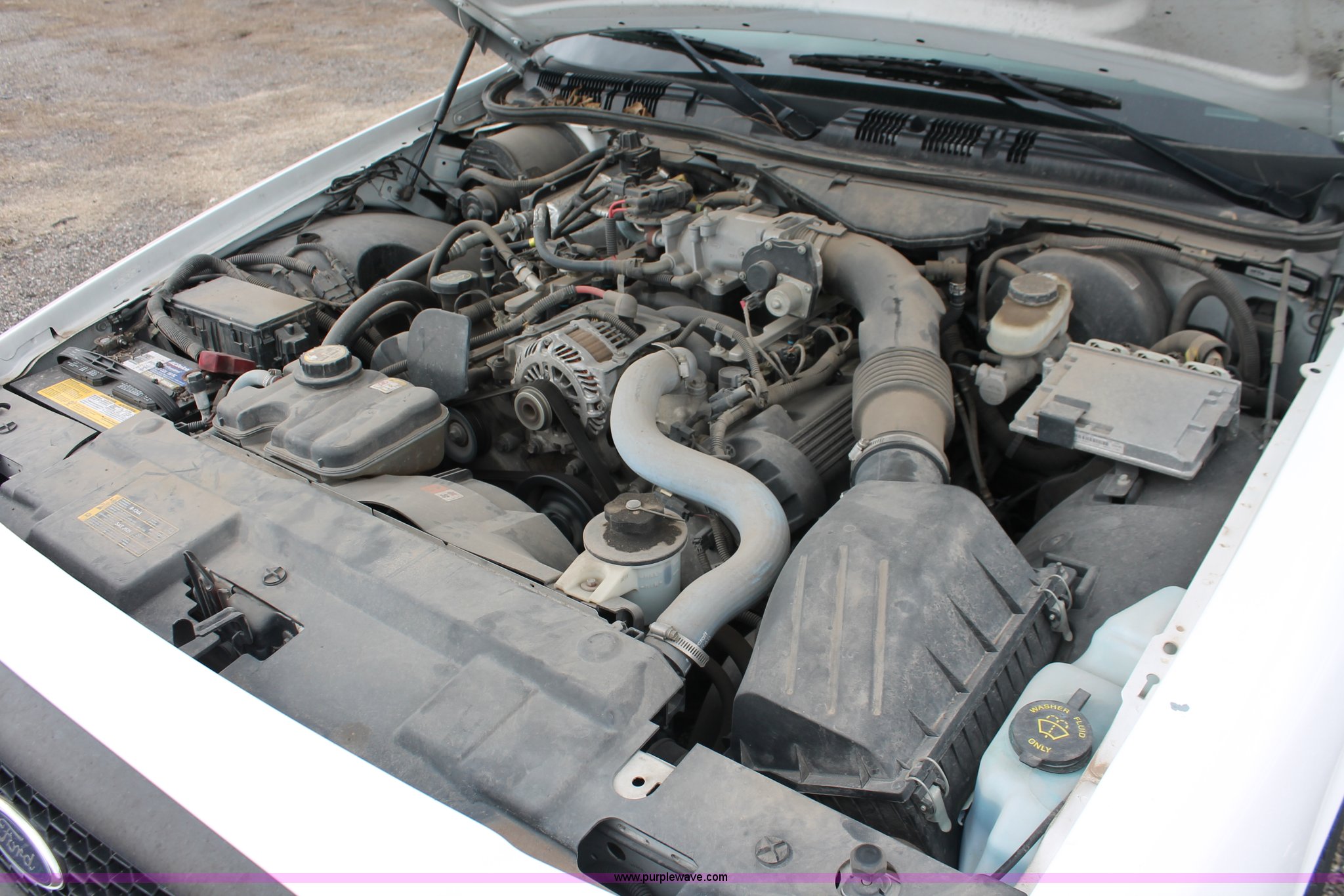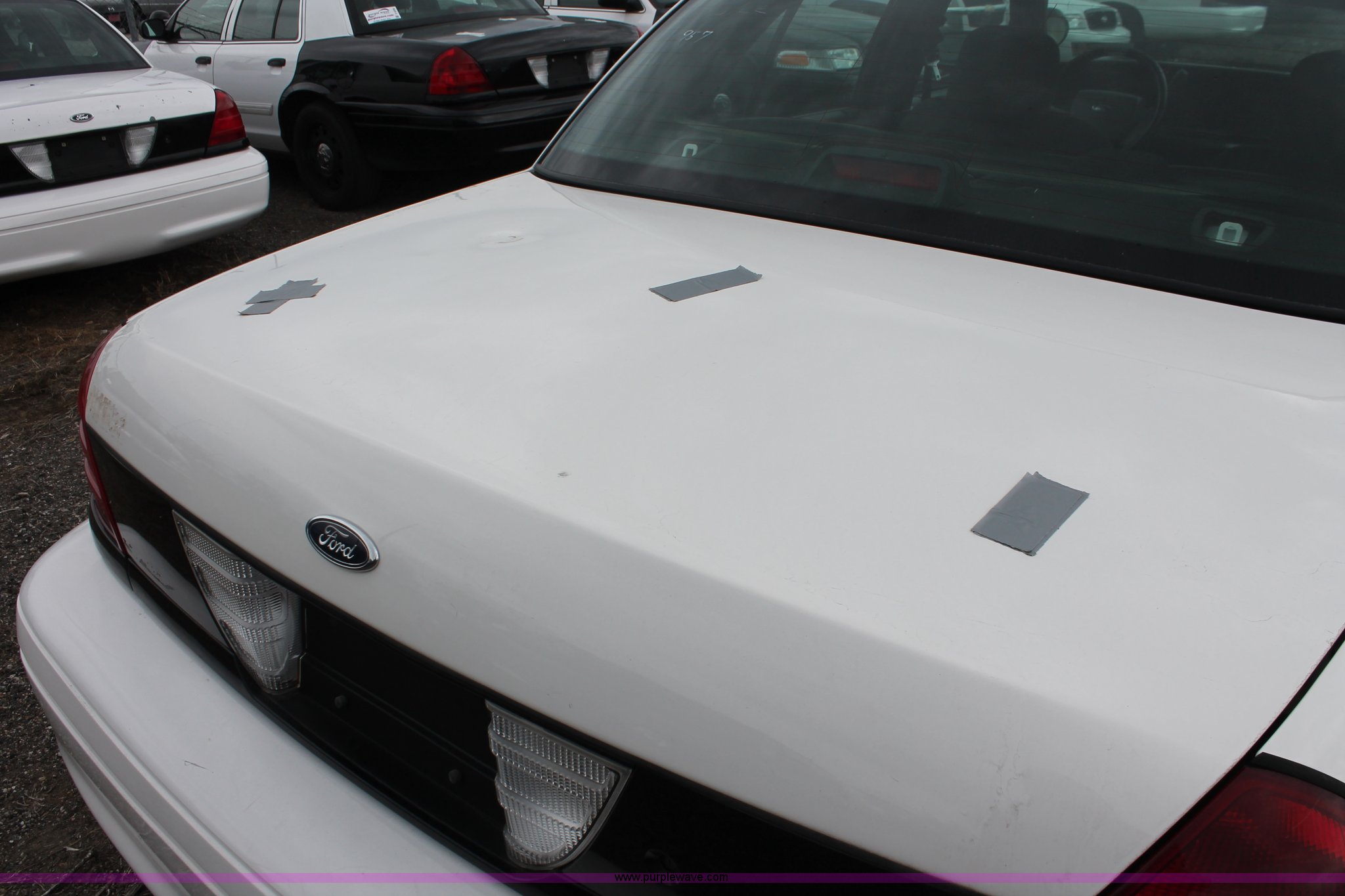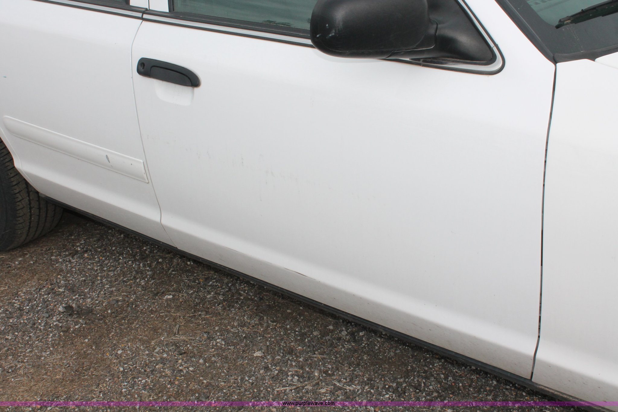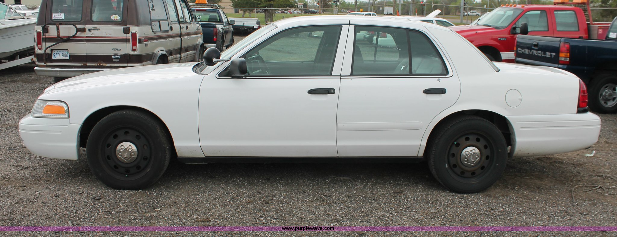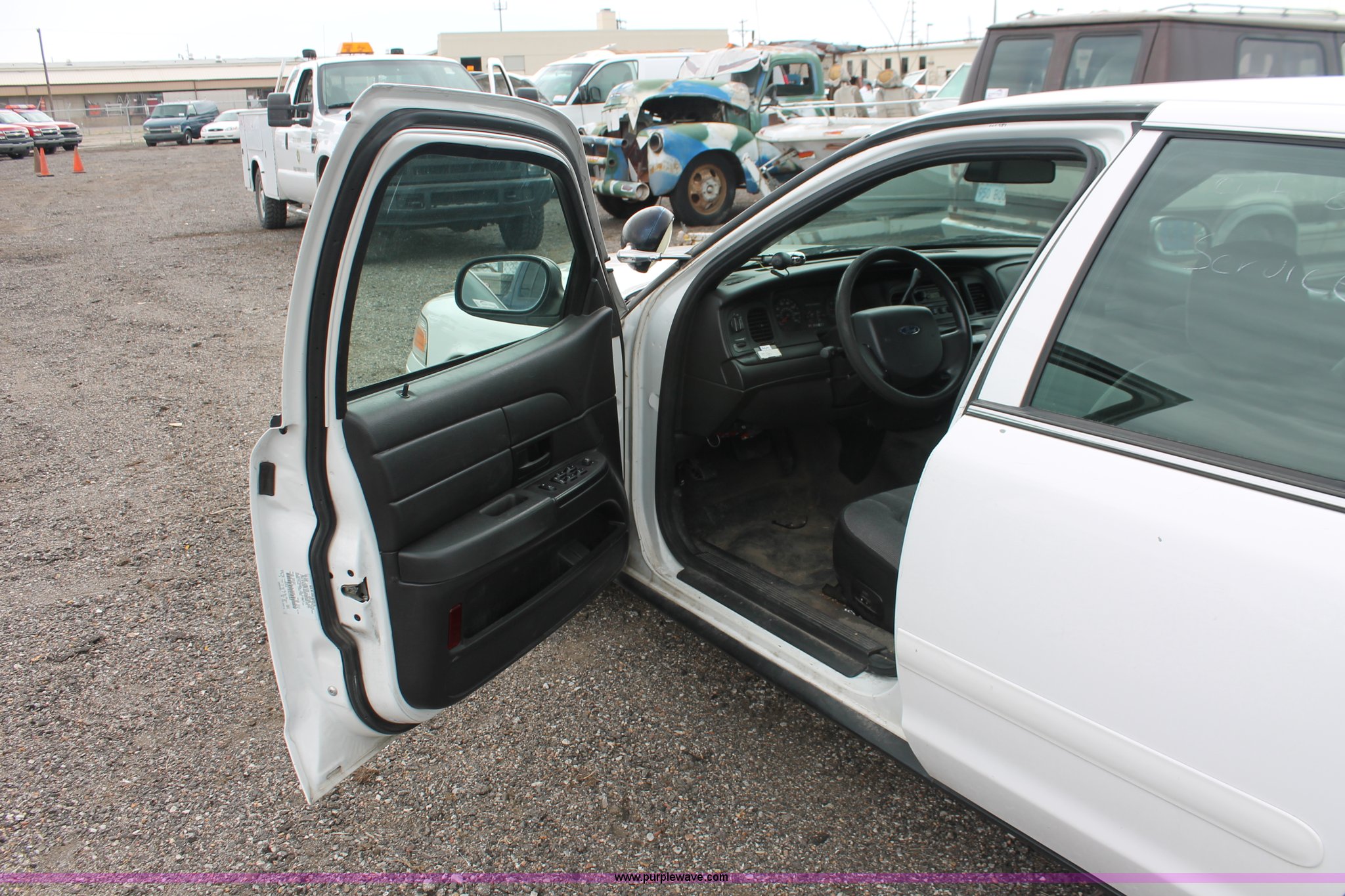 Purple Wave is selling a used Passenger Vehicle in Kansas. This item is a 2006 Ford Crown Victoria Police Interceptor with the following: 93,822 miles on odometer, 4.6L V8 SOHC 16V gas engine, Automatic transmission, AC and heat, Tilt, AM/FM, Power windows, locks, mirrors, and seats, Cloth front interior, Vinyl rear interior, P235/55R17 tires, Hail damage, Paint peeling, Passenger seat bolts broken, Holes in trunk, Unit# 000957