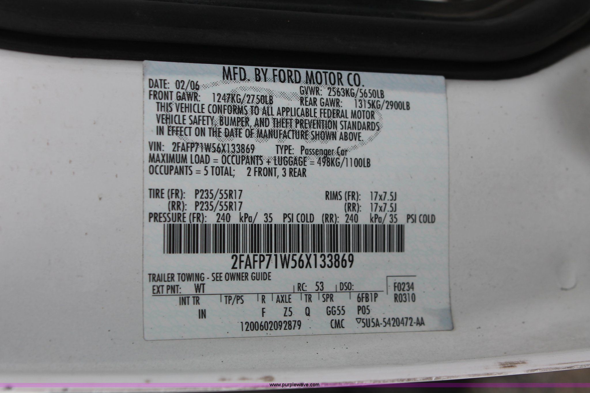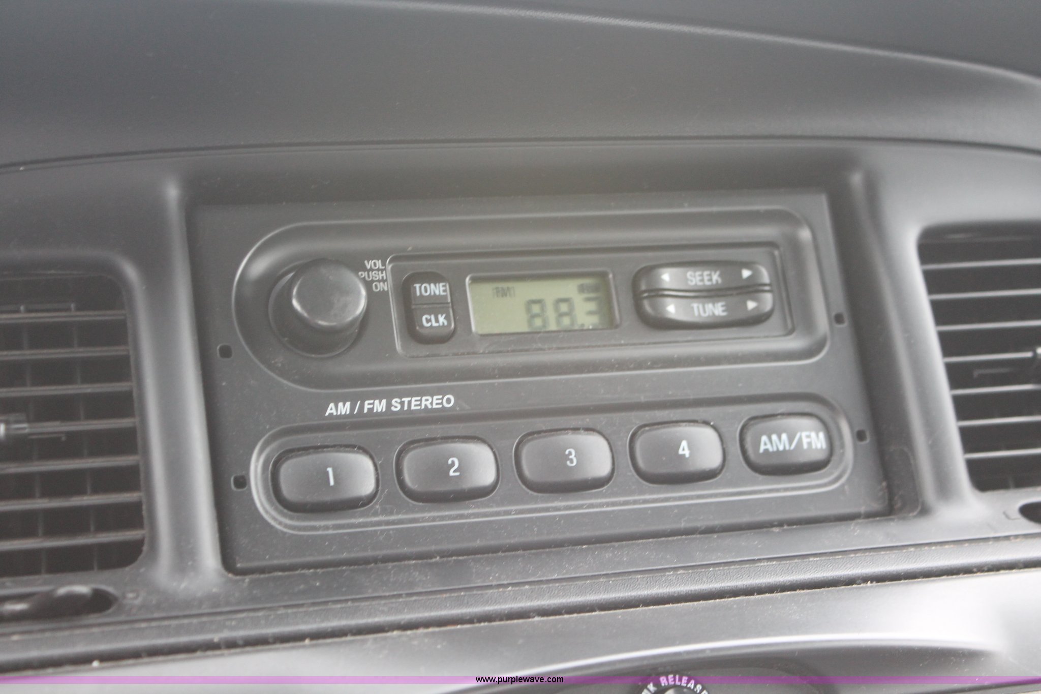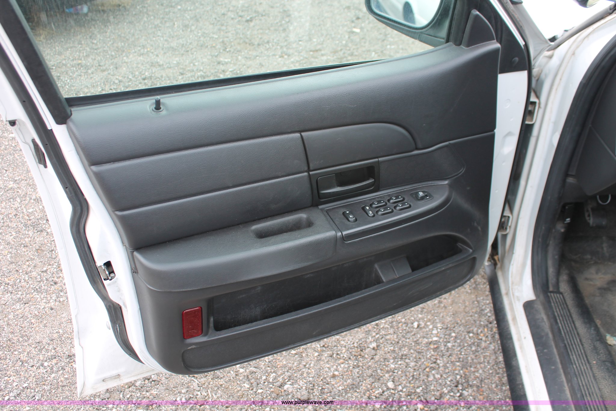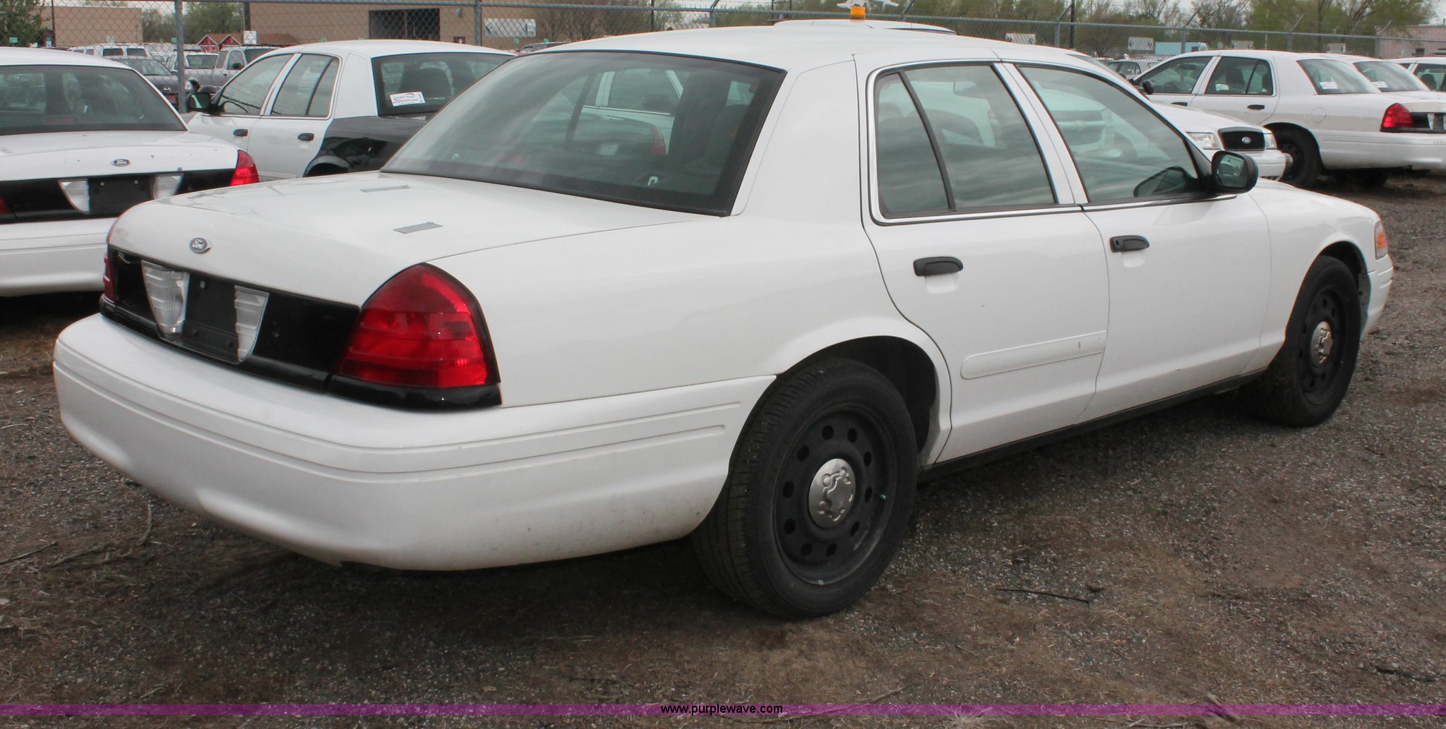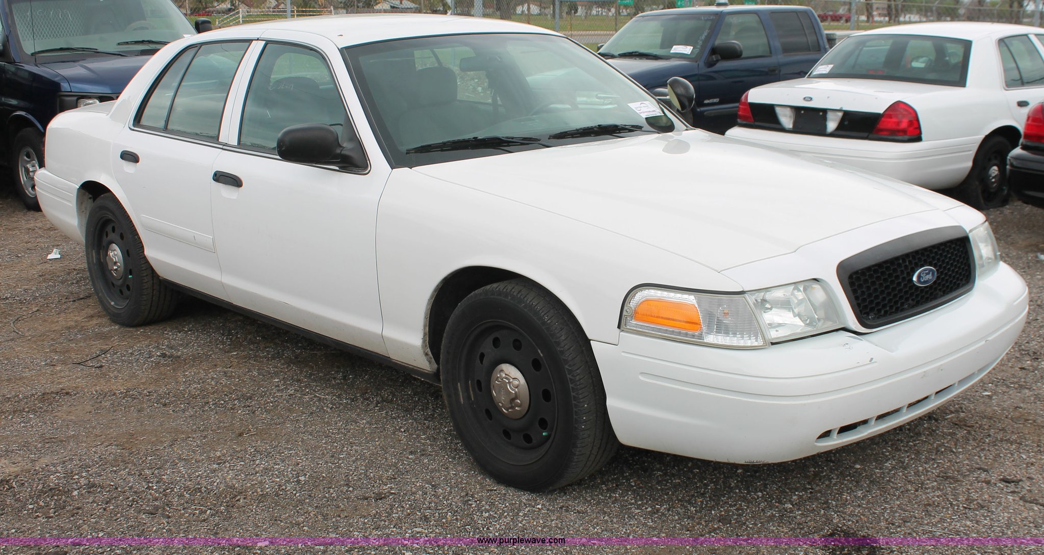 Purple Wave is selling a used Passenger Vehicle in Kansas. This item is a 2006 Ford Crown Victoria Police Interceptor with the following: 93,822 miles on odometer, 4.6L V8 SOHC 16V gas engine, Automatic transmission, AC and heat, Tilt, AM/FM, Power windows, locks, mirrors, and seats, Cloth front interior, Vinyl rear interior, P235/55R17 tires, Hail damage, Paint peeling, Passenger seat bolts broken, Holes in trunk, Unit# 000957