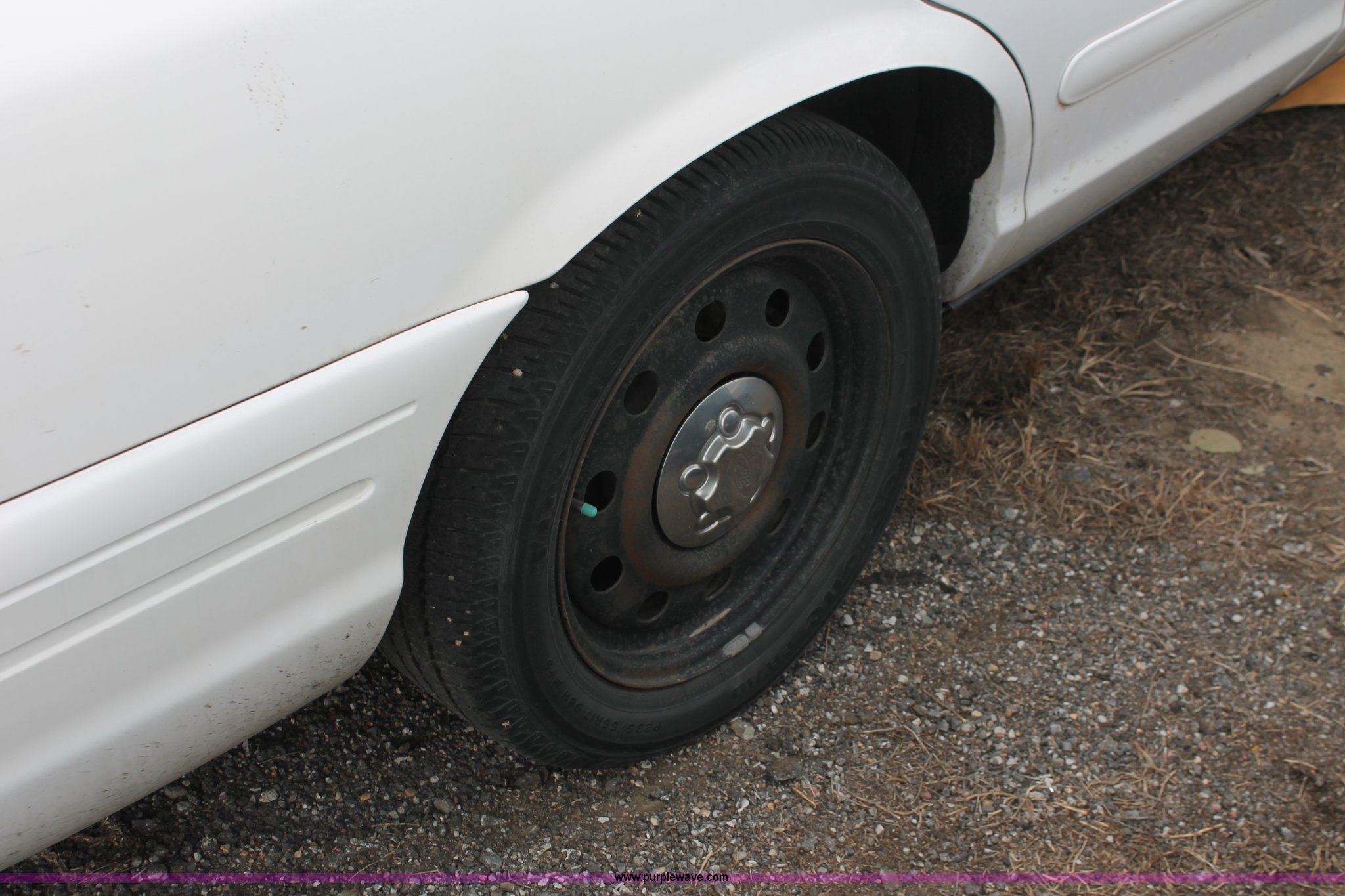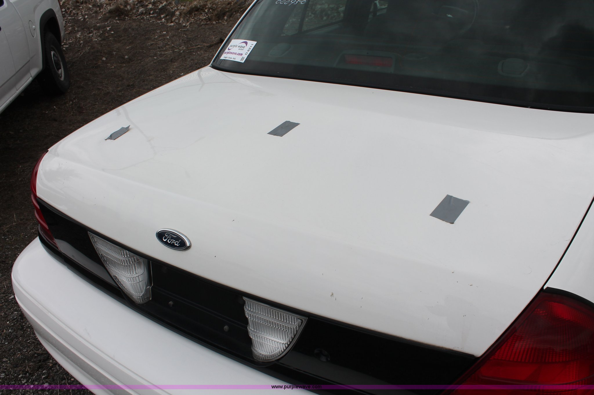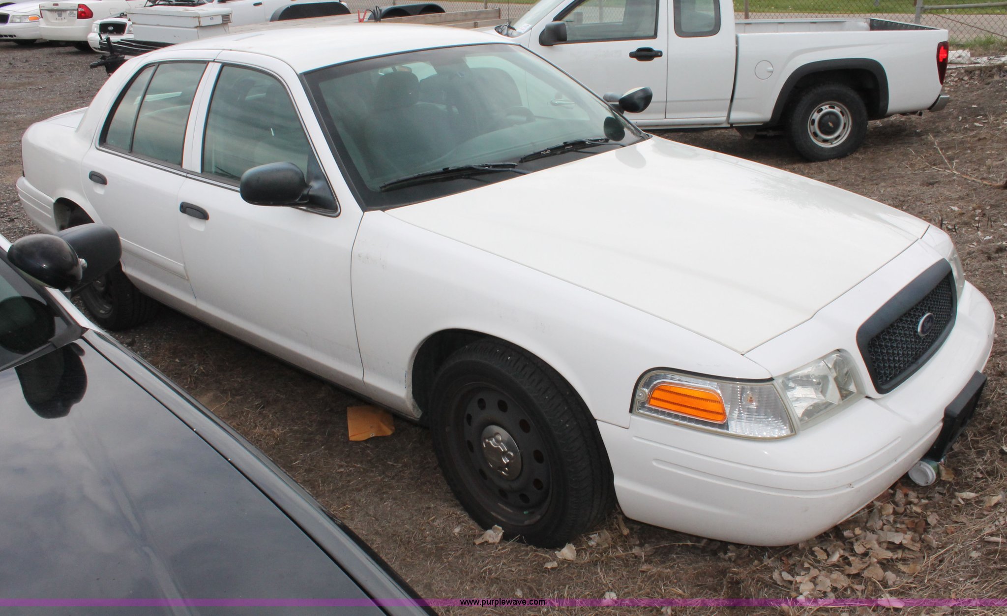 Purple Wave is selling a used Passenger Vehicle in Kansas. This item is a 2006 Ford Crown Victoria Police Interceptor with the following: 83,946 miles on odometer, 4.6L V8 SOHC 16V gas engine, Automatic transmission, AC and heat, Tilt, AM/FM, Power windows, locks, mirrors, and seats, Cloth front interior, Vinyl rear interior, P235/55R17 tires, Battery dead, Holes in roof and trunk, Unit# 000950