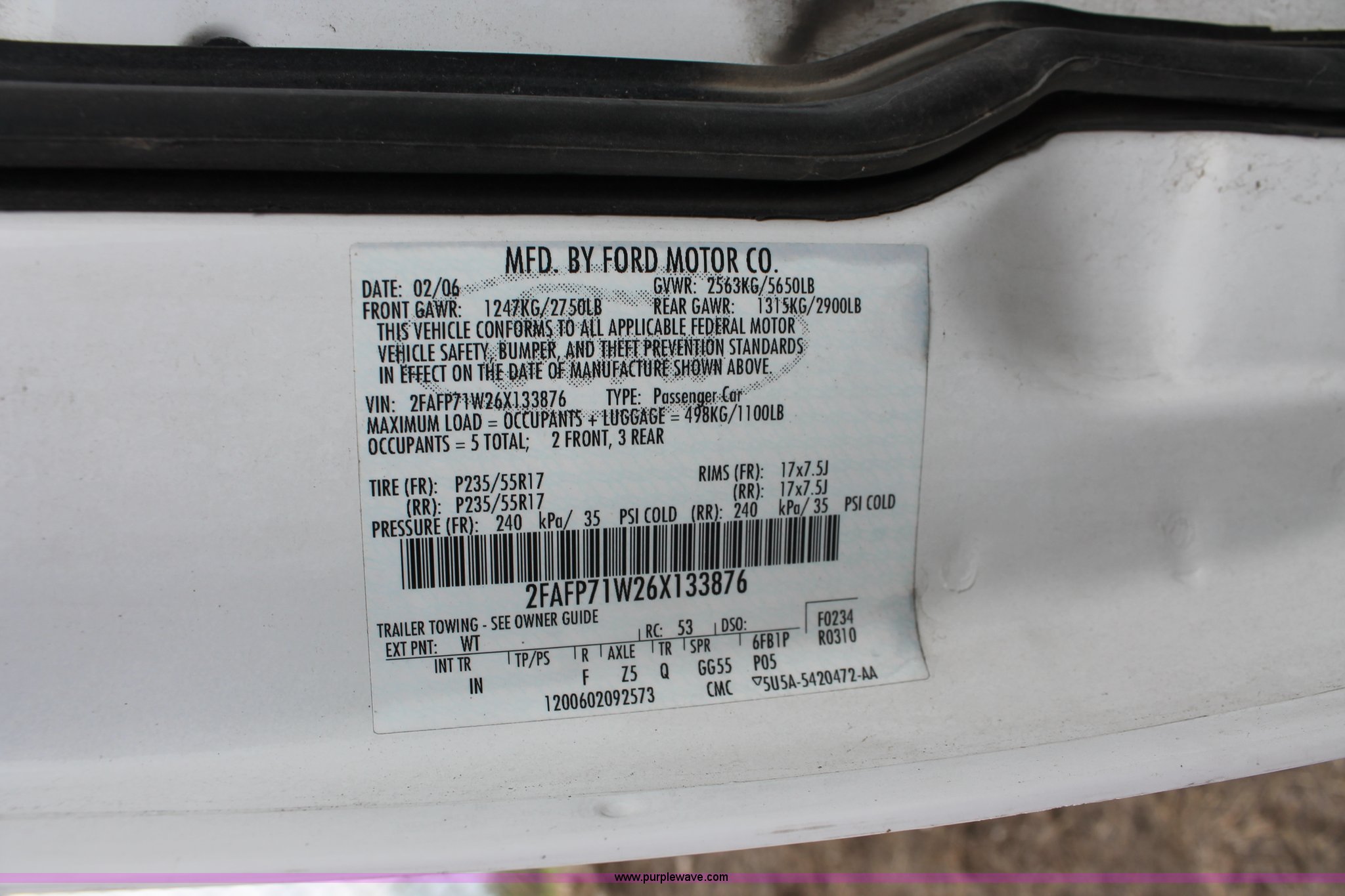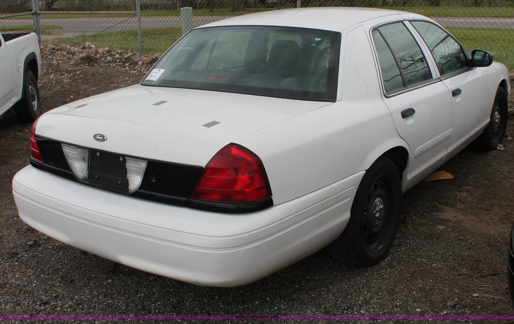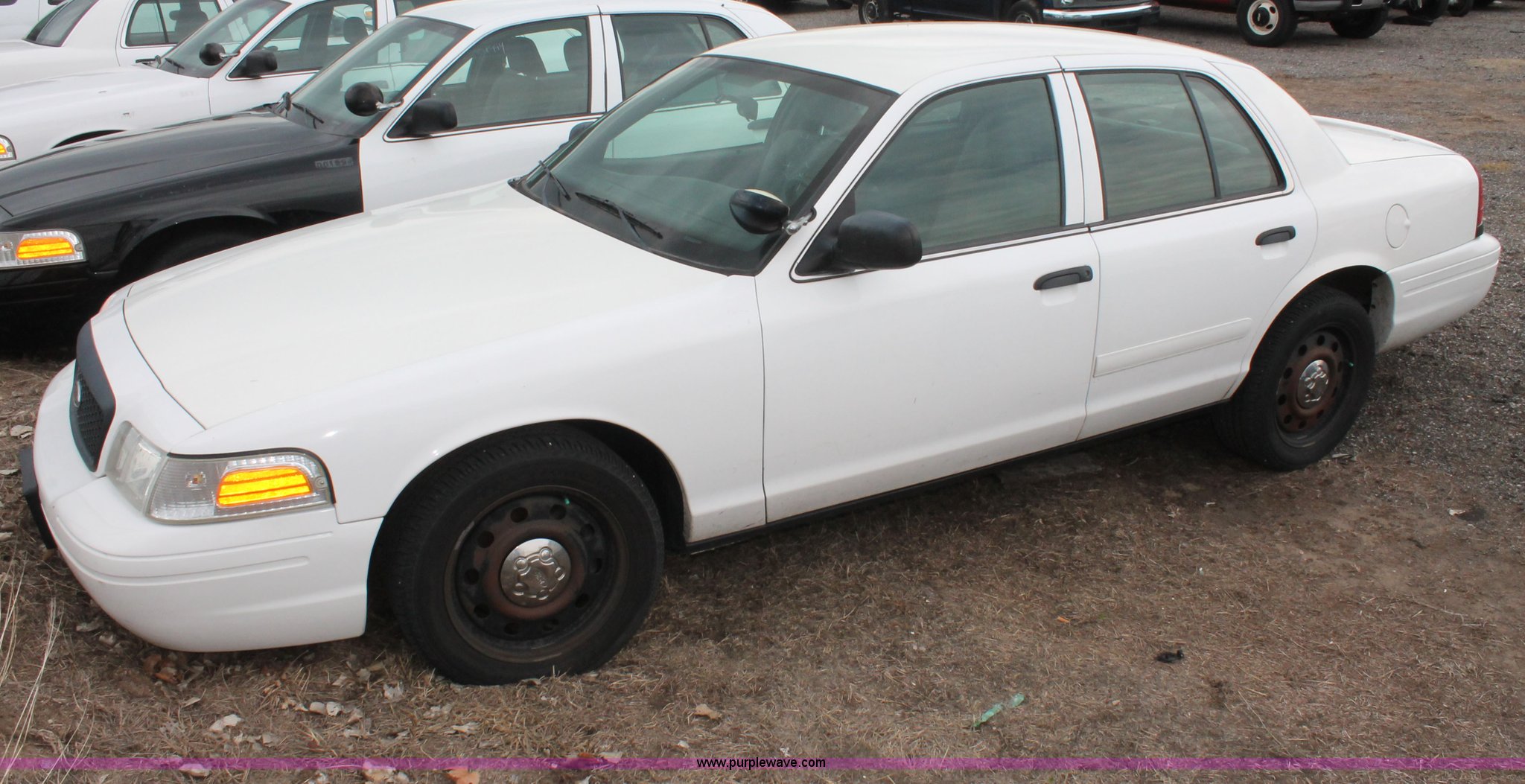 Purple Wave is selling a used Passenger Vehicle in Kansas. This item is a 2006 Ford Crown Victoria Police Interceptor with the following: 83,946 miles on odometer, 4.6L V8 SOHC 16V gas engine, Automatic transmission, AC and heat, Tilt, AM/FM, Power windows, locks, mirrors, and seats, Cloth front interior, Vinyl rear interior, P235/55R17 tires, Battery dead, Holes in roof and trunk, Unit# 000950