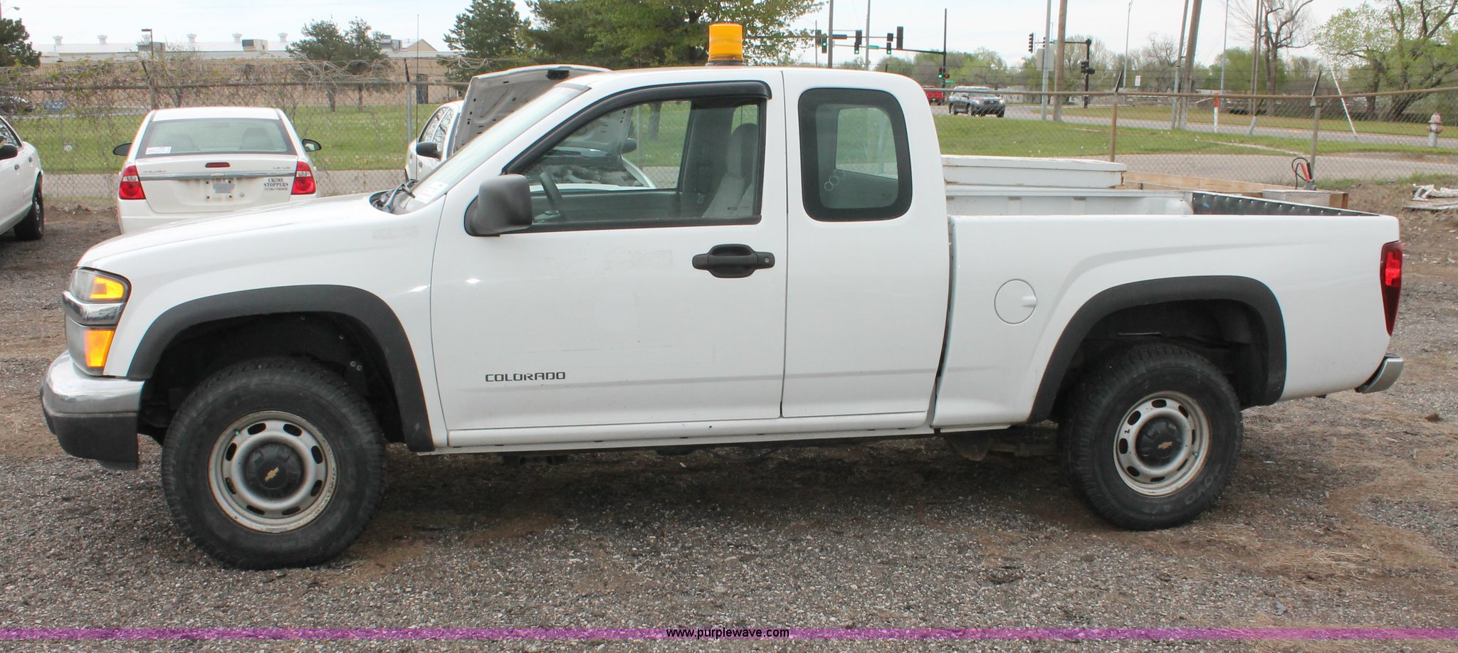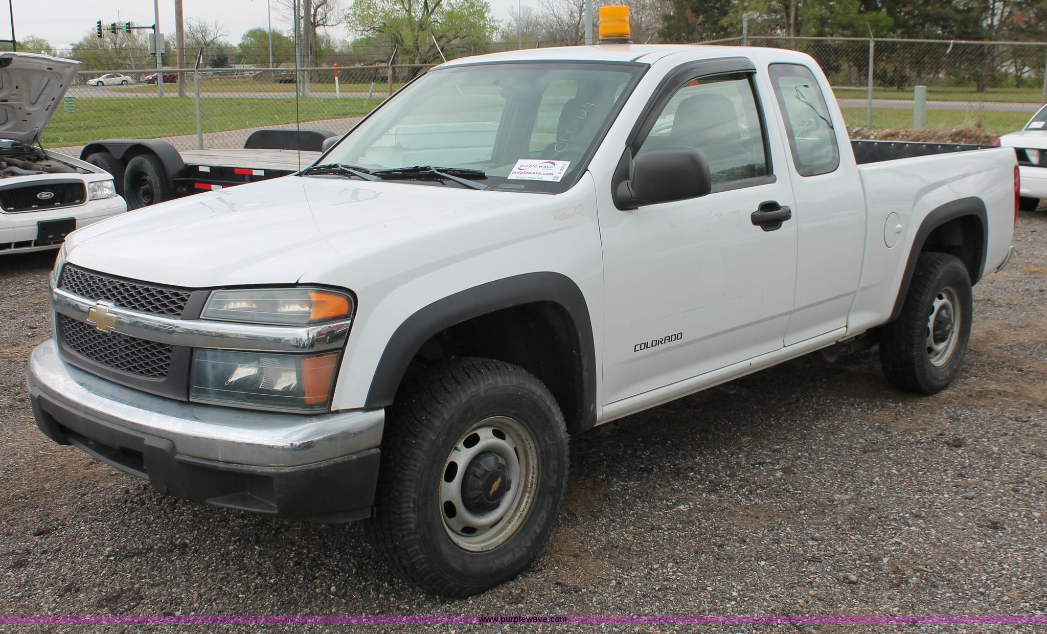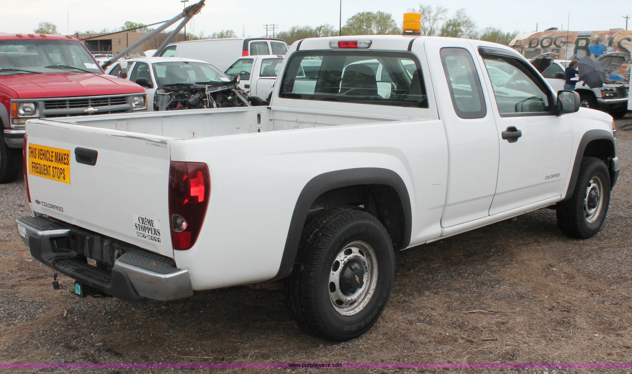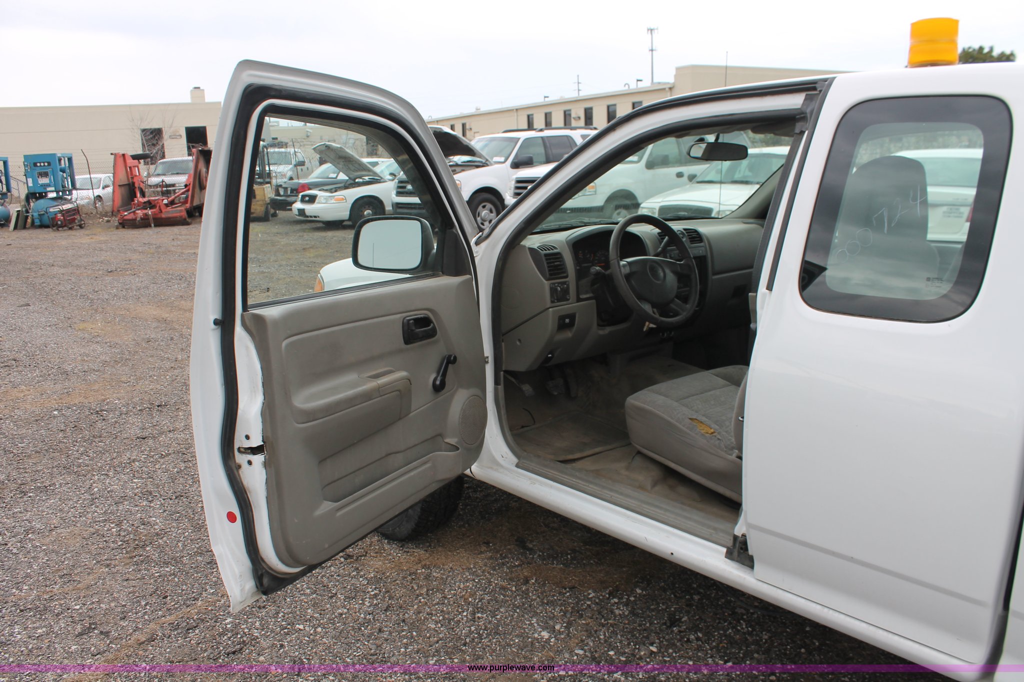Purple Wave is selling a used 1/2 Ton Pickup or Van in Kansas. This item is a 2005 Chevrolet Colorado extended cab pickup truck with the following: 89,478 miles on odometer, 3.5L L5 DOHC 20V gas engine, Automatic transmission, Four wheel drive, AC and heat, Tilt, Cruise, AM/FM, Manual windows and locks, Cloth interior, Amber warning beacon, Rubber bed mat, Receiver hitch, Trailer wiring, LT235/75R15 tires, Hail damage, Spare tire, Unit# 000724