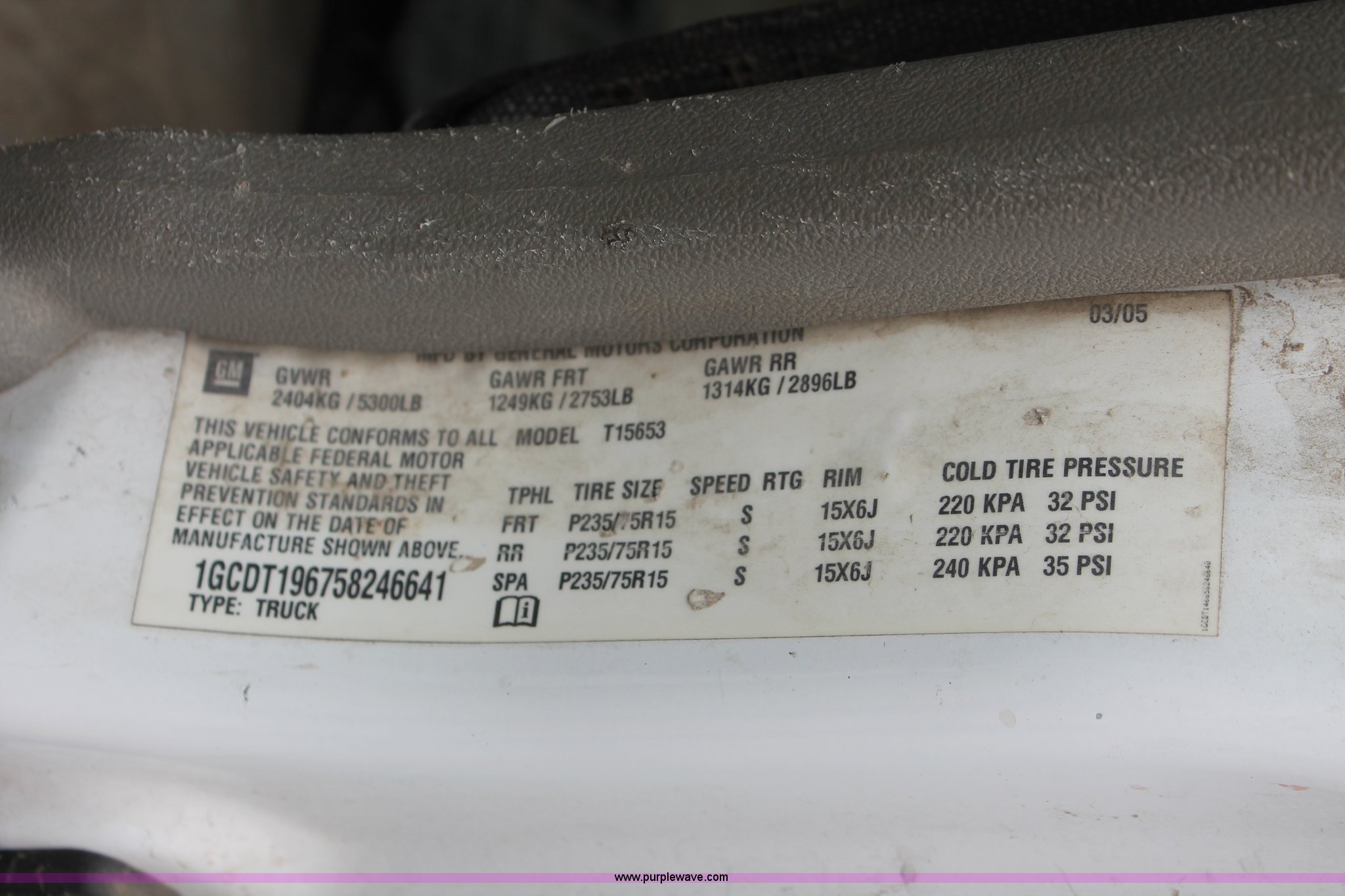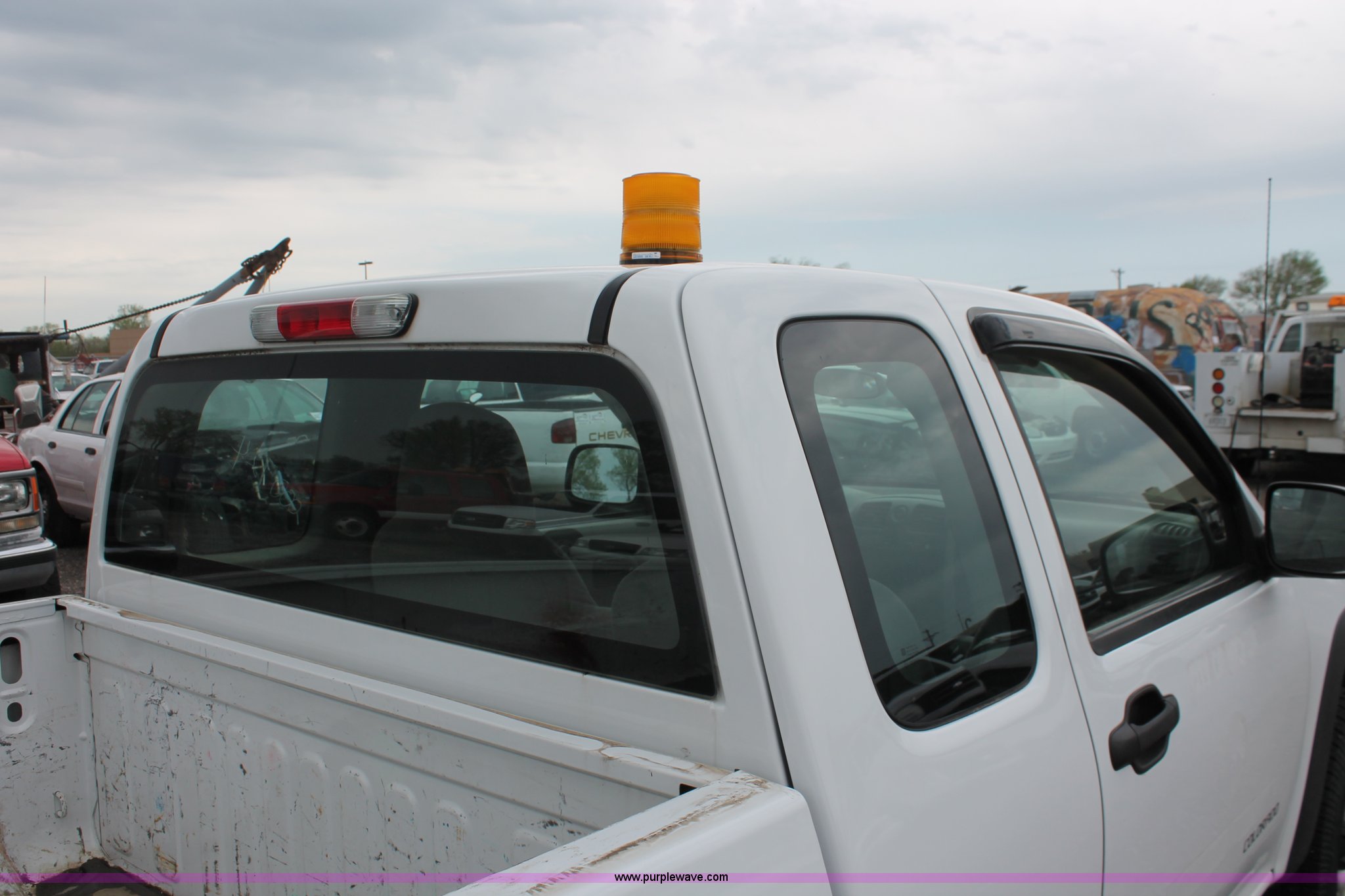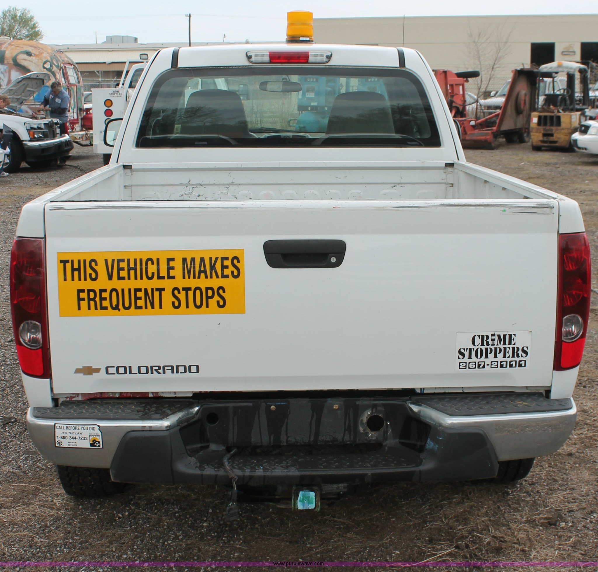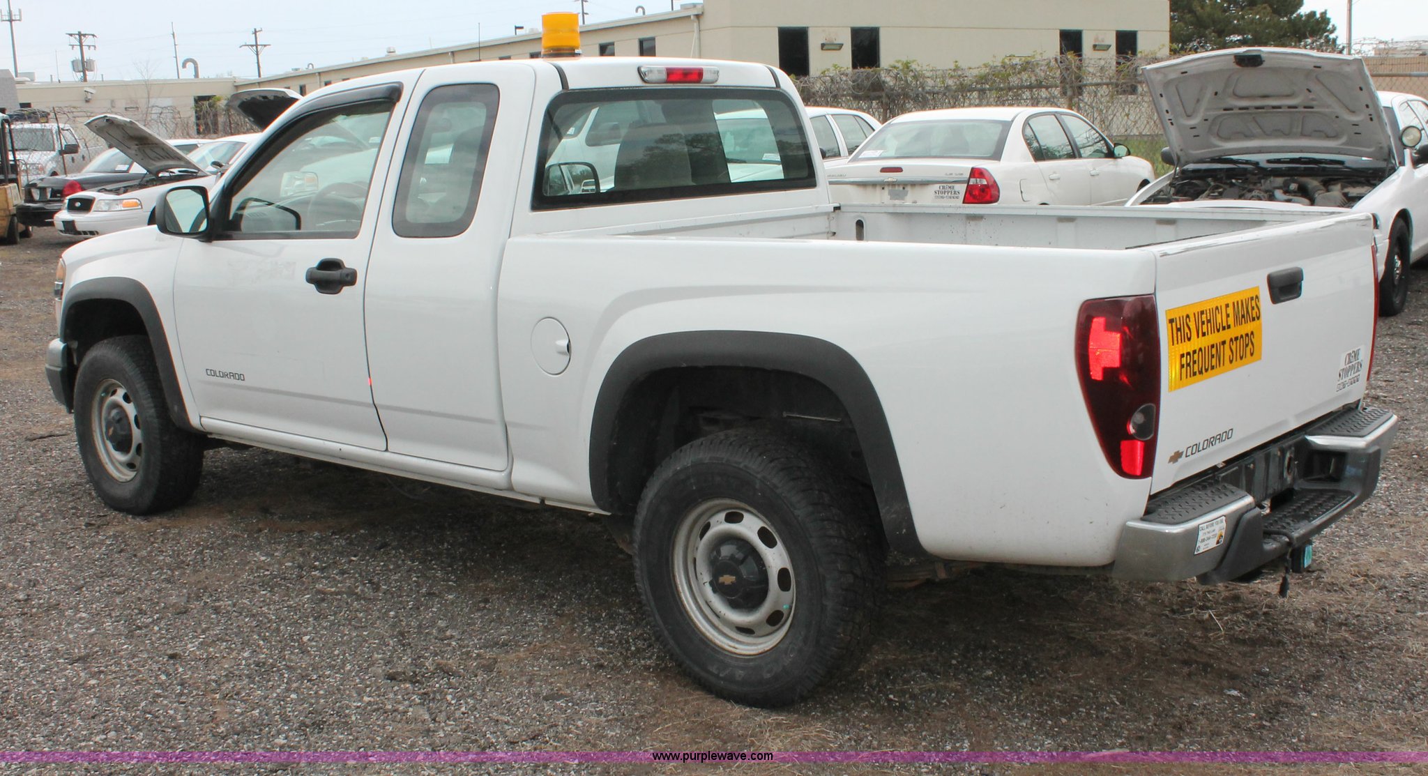 Purple Wave is selling a used 1/2 Ton Pickup or Van in Kansas. This item is a 2005 Chevrolet Colorado extended cab pickup truck with the following: 89,478 miles on odometer, 3.5L L5 DOHC 20V gas engine, Automatic transmission, Four wheel drive, AC and heat, Tilt, Cruise, AM/FM, Manual windows and locks, Cloth interior, Amber warning beacon, Rubber bed mat, Receiver hitch, Trailer wiring, LT235/75R15 tires, Hail damage, Spare tire, Unit# 000724