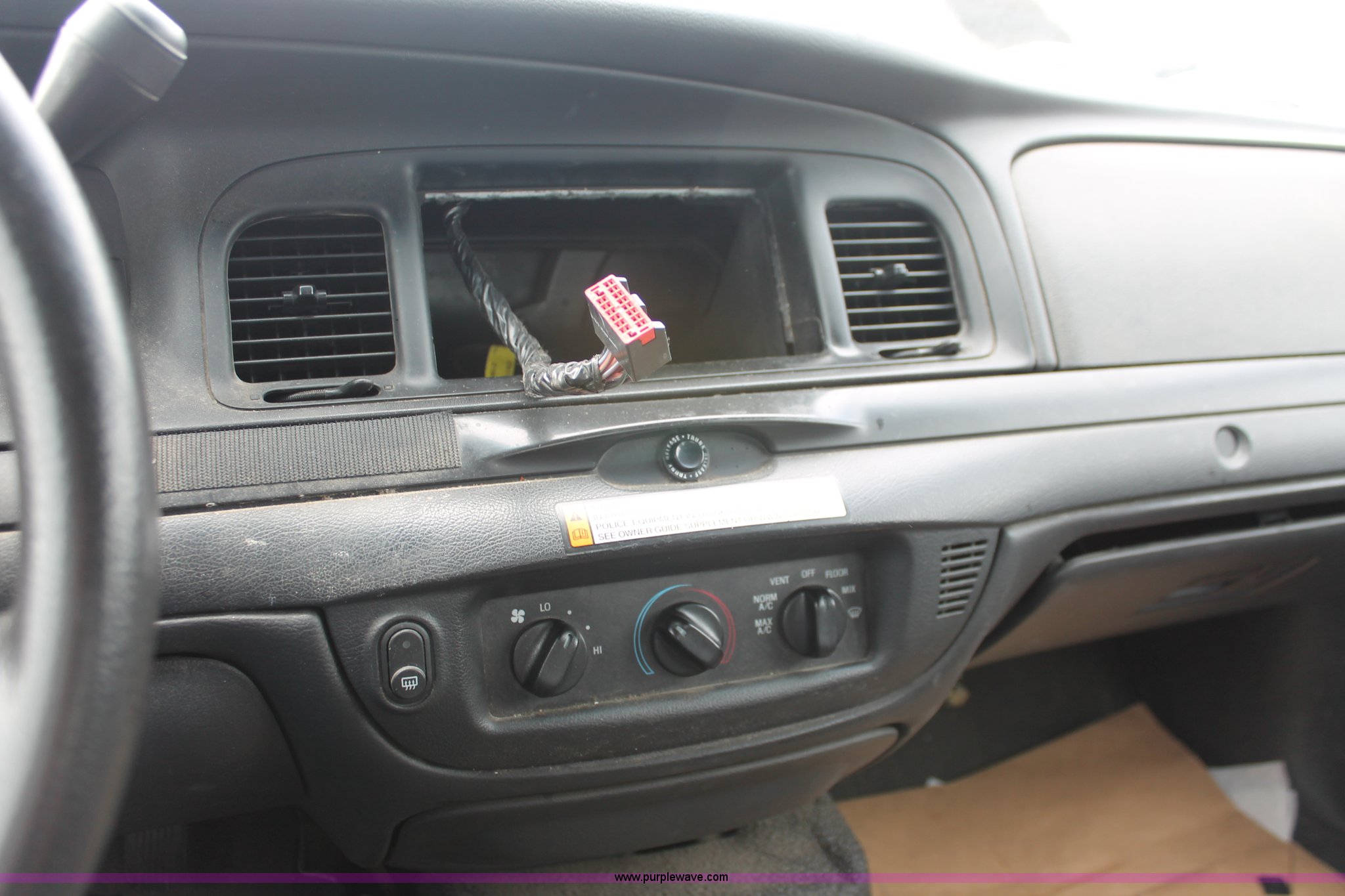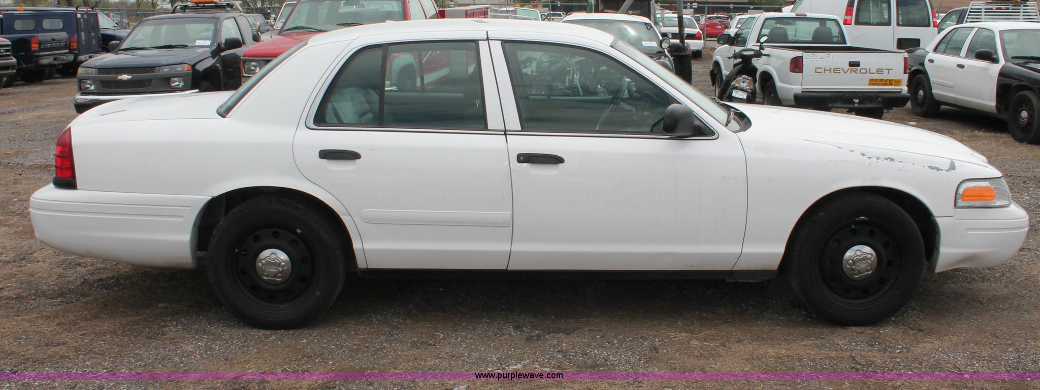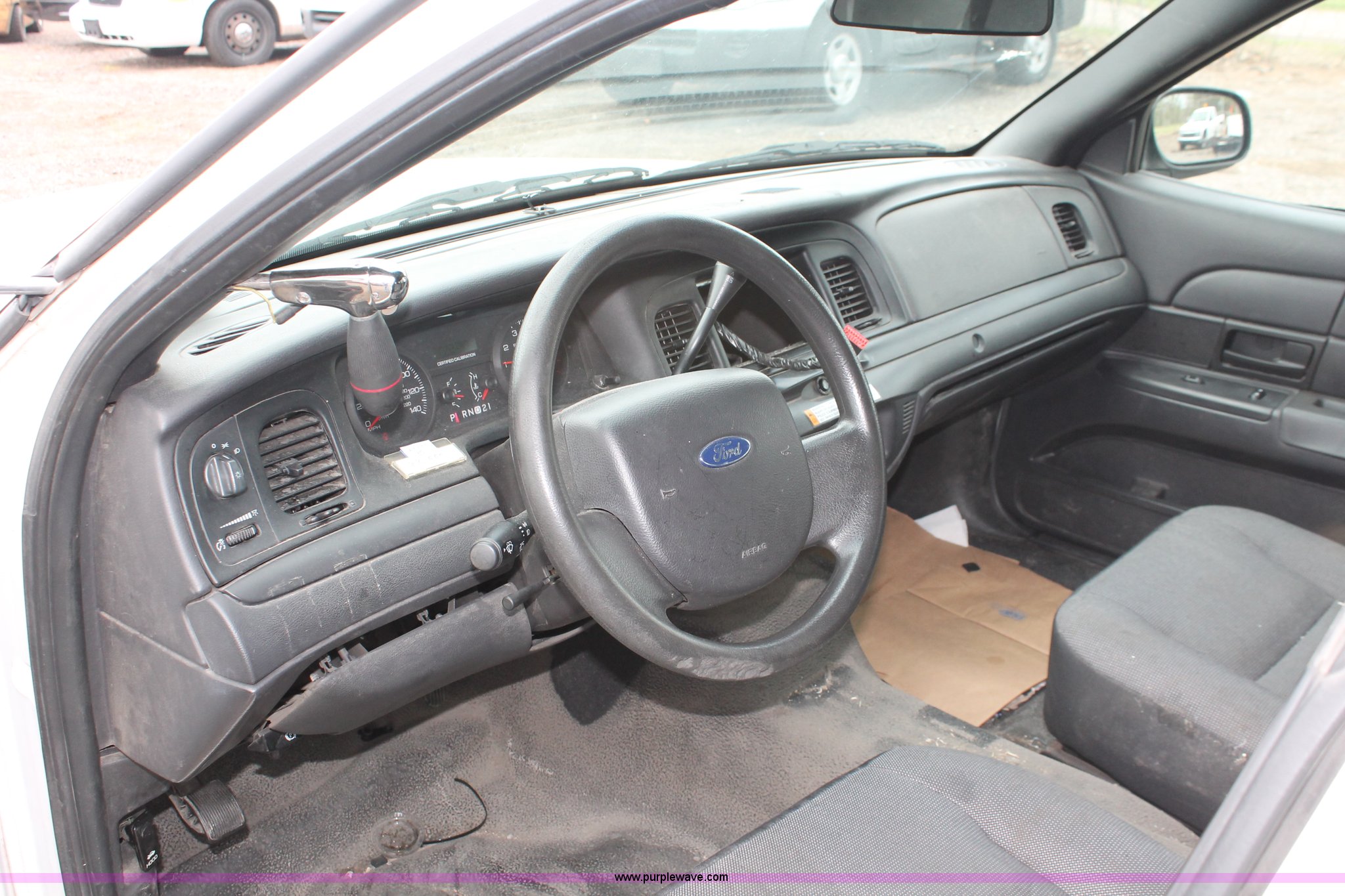 Purple Wave is selling a used Passenger Vehicle in Kansas. This item is a 2006 Ford Crown Victoria Police Interceptor with the following: 86,572 miles on odometer, 4.6L V8 SOHC 16V gas engine, Automatic transmission, Transmission inoperable, AC and heat, Tilt, Power windows, locks, mirrors, and seats, Cloth front interior, Vinyl rear interior, P235/55R17 tires, Driver's seat bolts broken, Paint peeling, Holes in roof and trunk, Unit# 01281