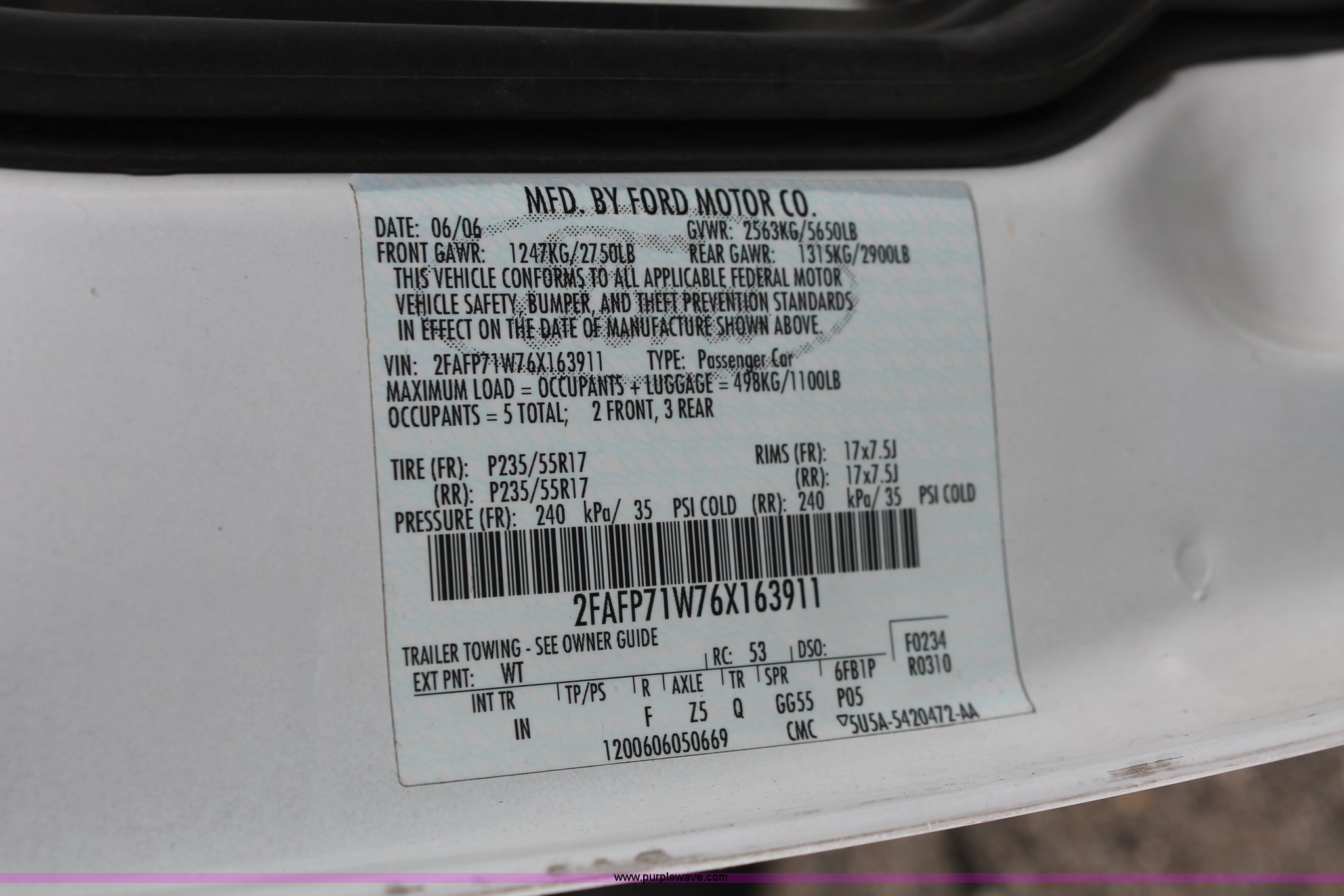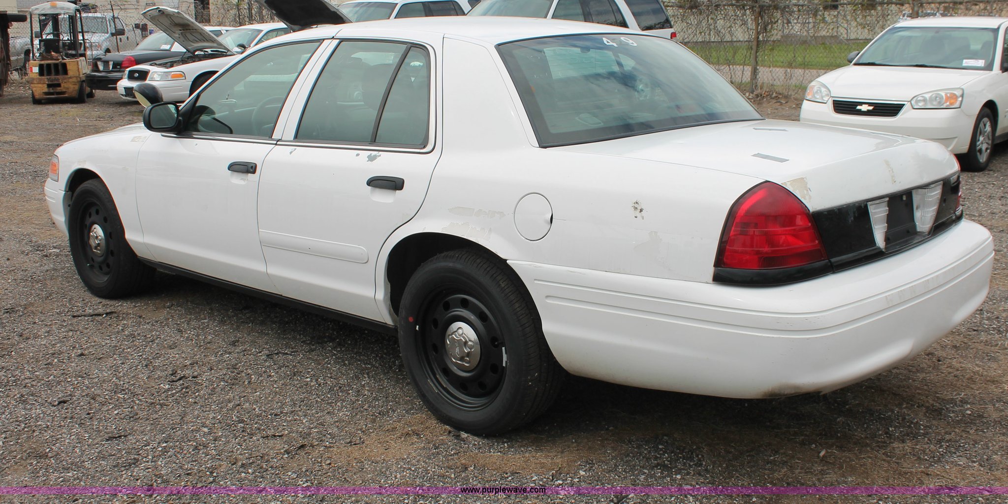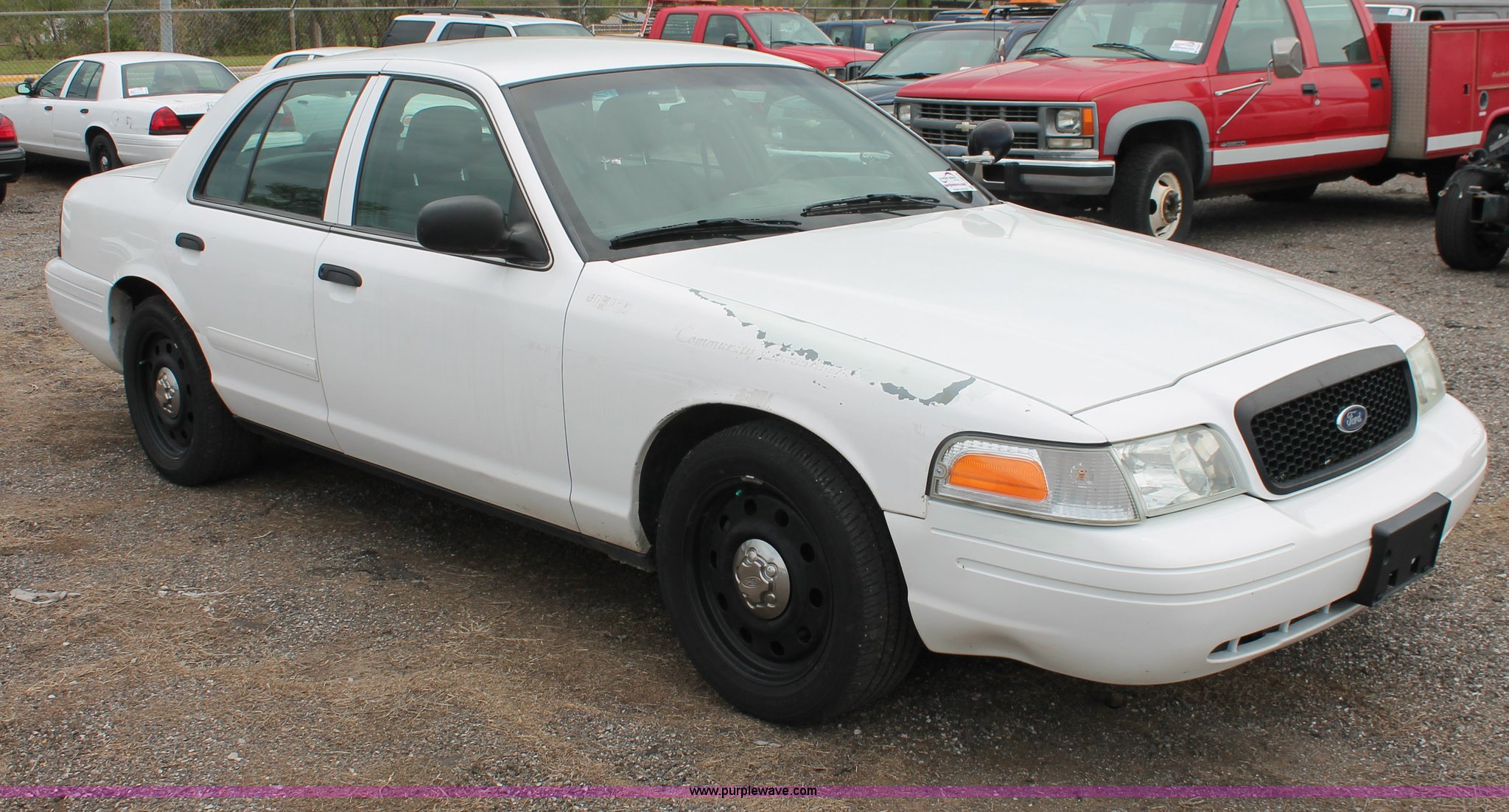 Purple Wave is selling a used Passenger Vehicle in Kansas. This item is a 2006 Ford Crown Victoria Police Interceptor with the following: 86,572 miles on odometer, 4.6L V8 SOHC 16V gas engine, Automatic transmission, Transmission inoperable, AC and heat, Tilt, Power windows, locks, mirrors, and seats, Cloth front interior, Vinyl rear interior, P235/55R17 tires, Driver's seat bolts broken, Paint peeling, Holes in roof and trunk, Unit# 01281