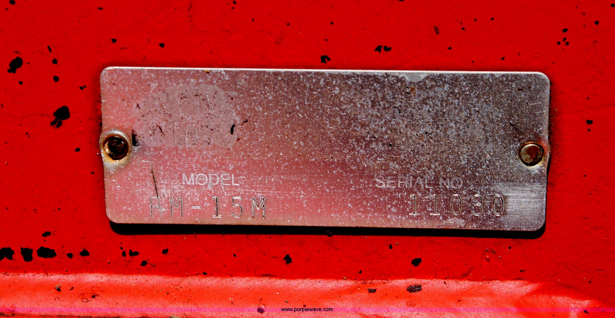 Purple Wave is selling a used Mower, Cutter, Shredder in Kansas. This item is a Rhino FM-15M batwing rotary mower with the following: 540 PTO, Hydraulic lift and fold, Approximately 15' cut, (6) dolly wheels, 7.60-15 tires, Serial 11030