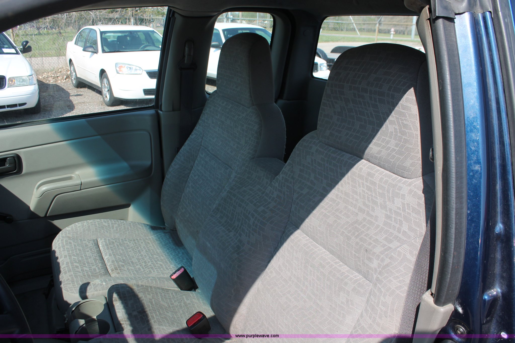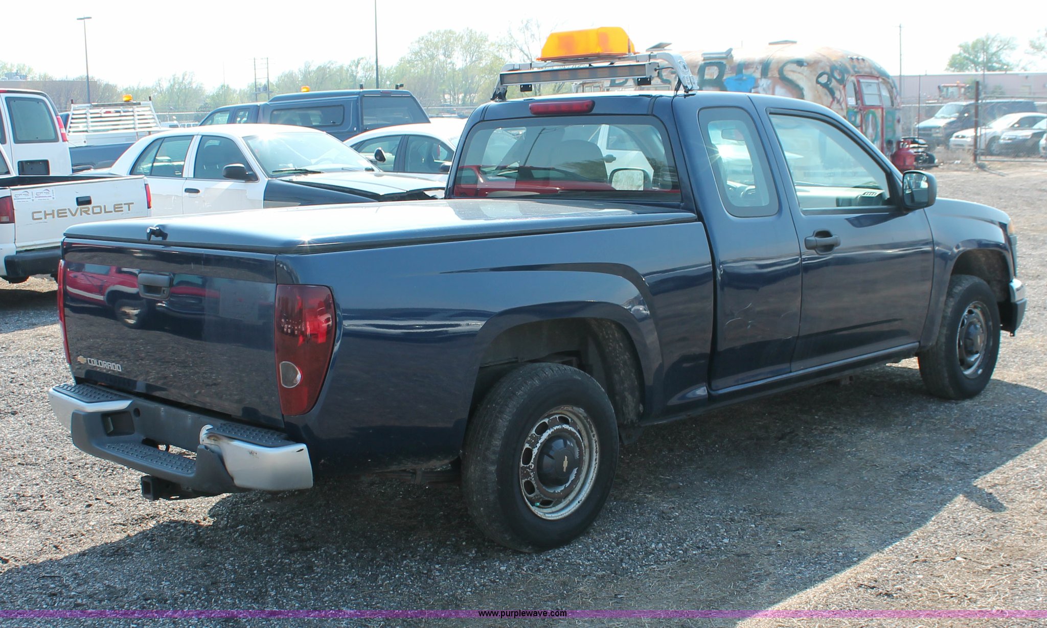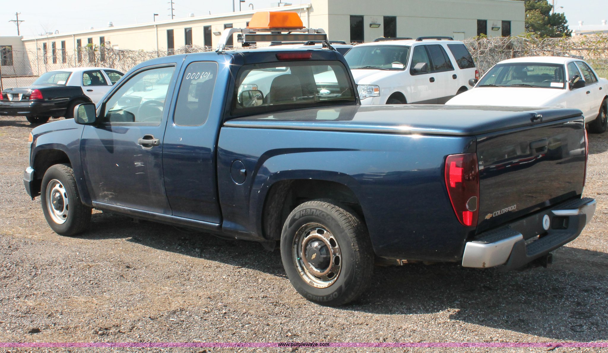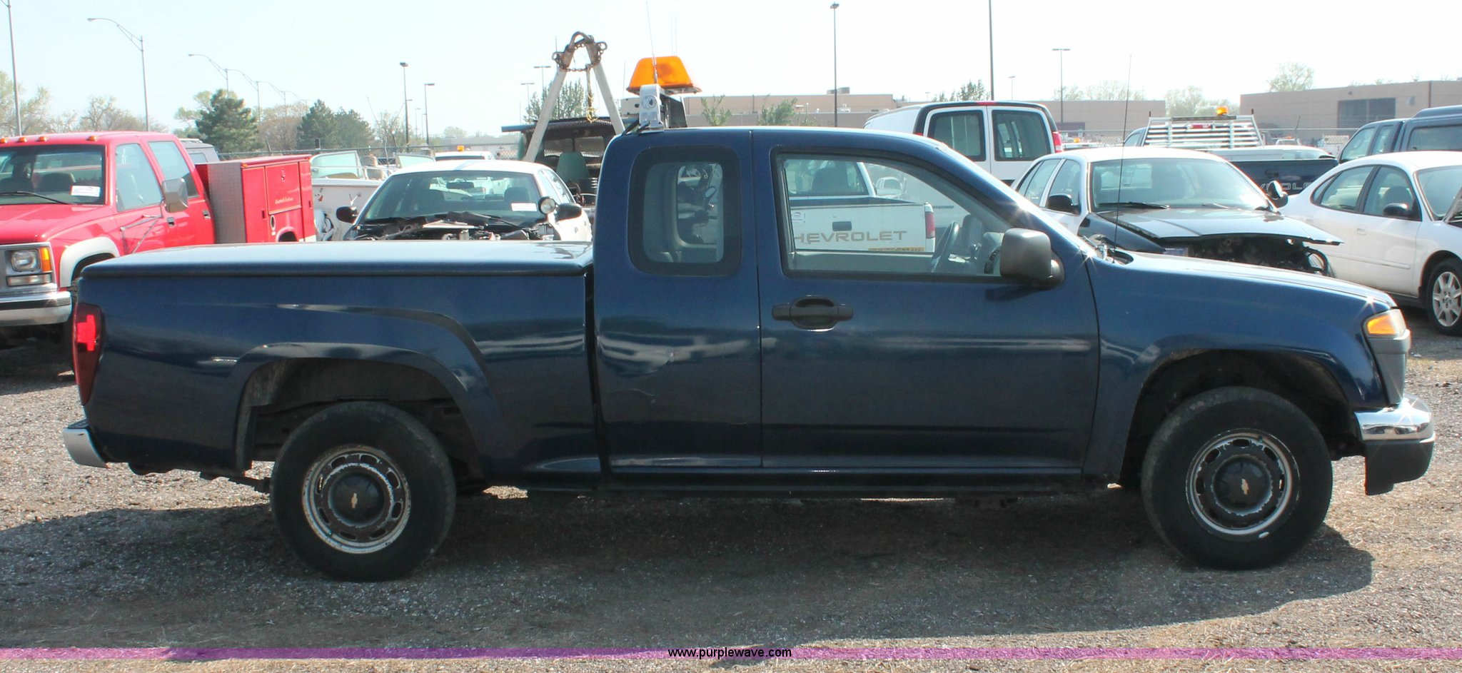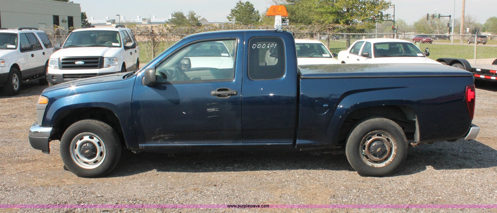 Purple Wave is selling a used Passenger Vehicle in Kansas. This item is a 2004 Chevrolet Colorado extended cab pickup truck with the following: 97,748 miles on odometer, 3.5L L5 DOHC 20V gas engine, Automatic transmission, AC and heat, AM/FM, Manual windows and locks, Cloth interior, Fiberglass bed cover, KC amber warning beacon, Receiver hitch, Trailer wiring, Interior damage, Body damage, Spare tire, Unit# 000601