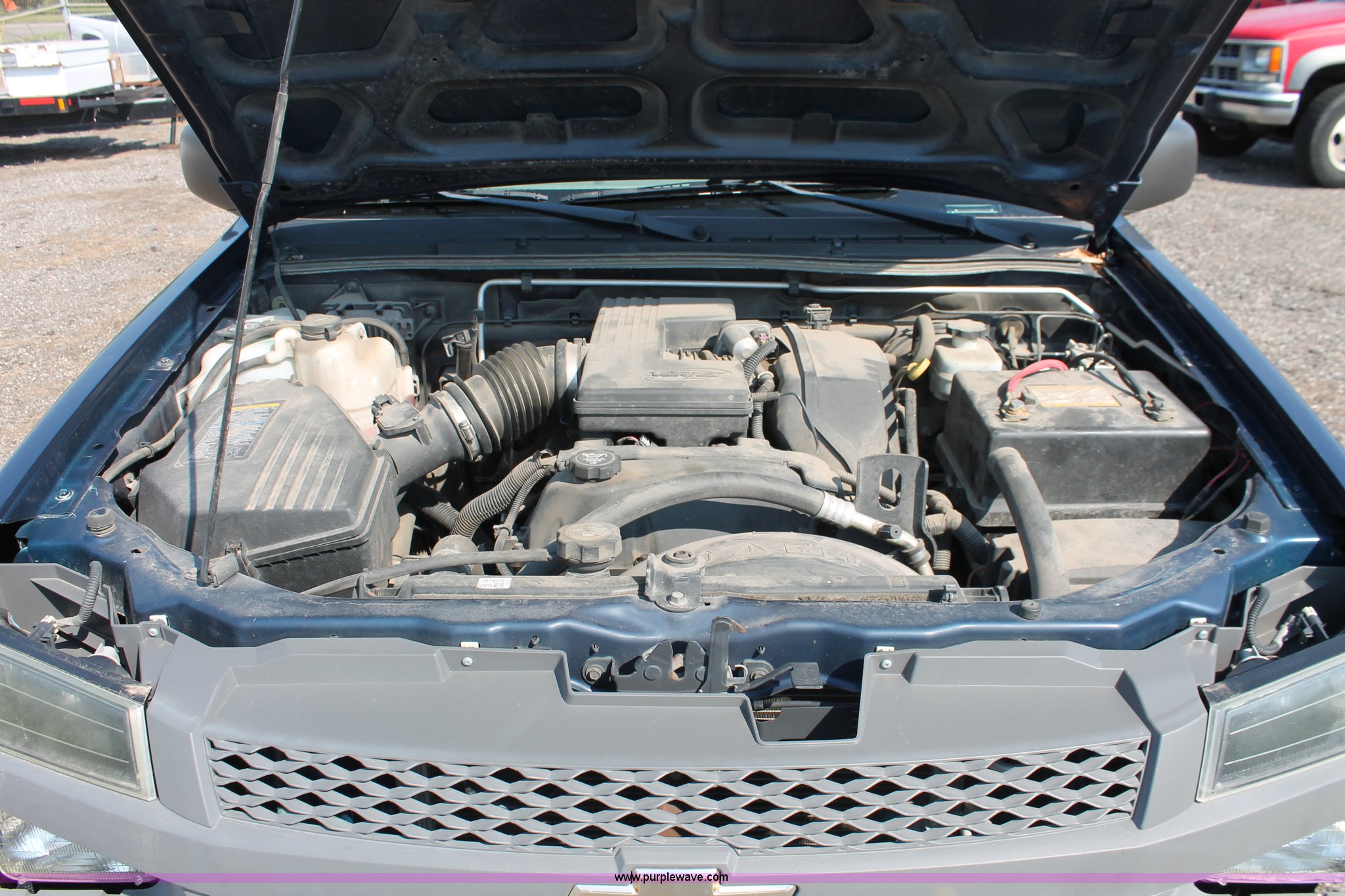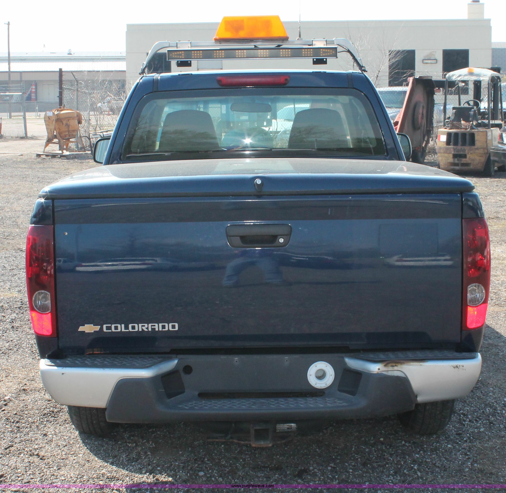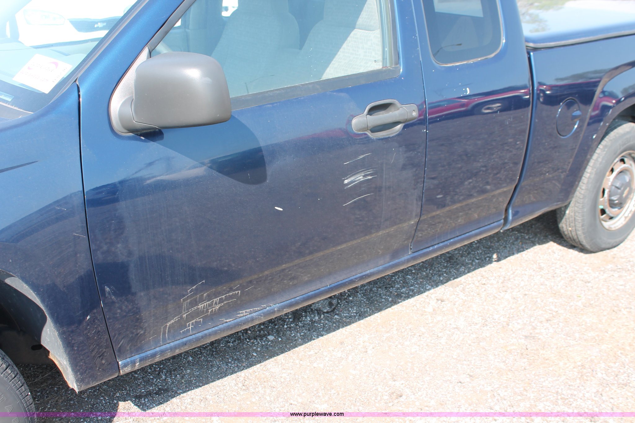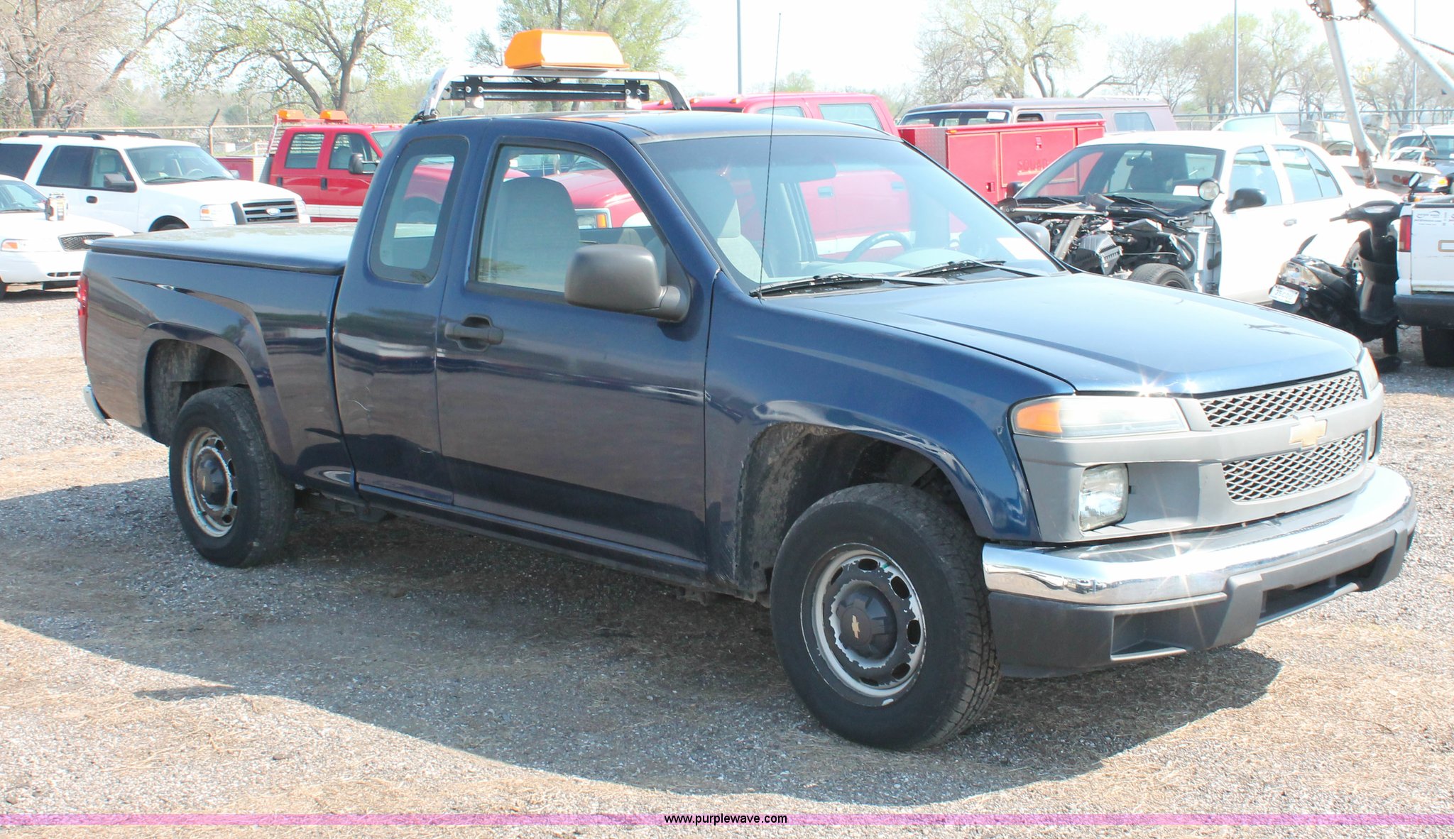 Purple Wave is selling a used Passenger Vehicle in Kansas. This item is a 2004 Chevrolet Colorado extended cab pickup truck with the following: 97,748 miles on odometer, 3.5L L5 DOHC 20V gas engine, Automatic transmission, AC and heat, AM/FM, Manual windows and locks, Cloth interior, Fiberglass bed cover, KC amber warning beacon, Receiver hitch, Trailer wiring, Interior damage, Body damage, Spare tire, Unit# 000601