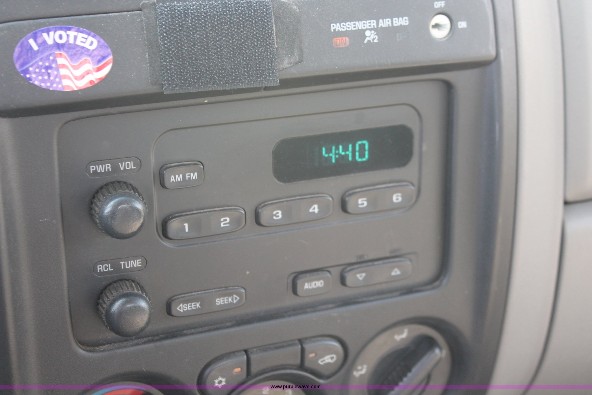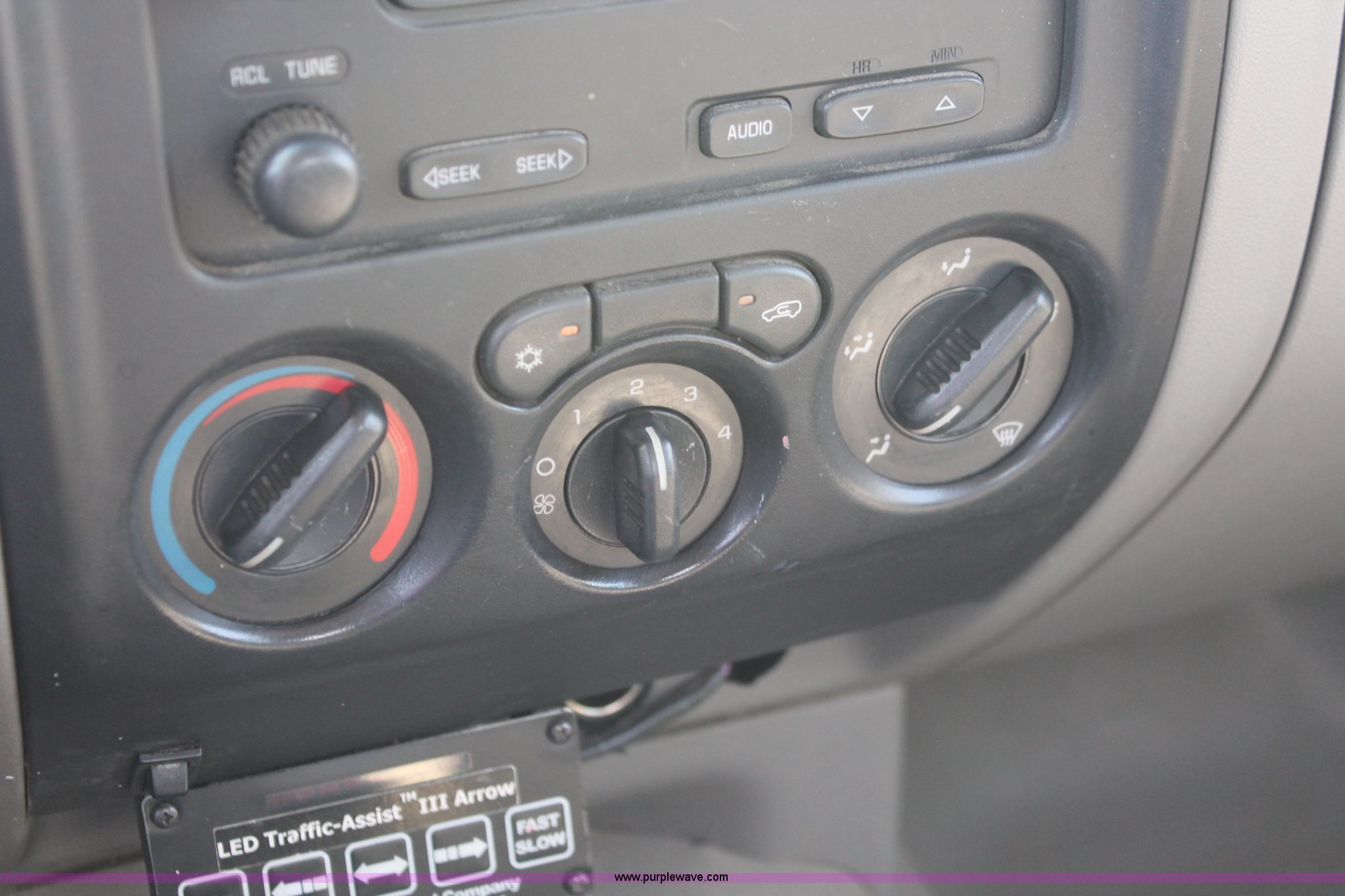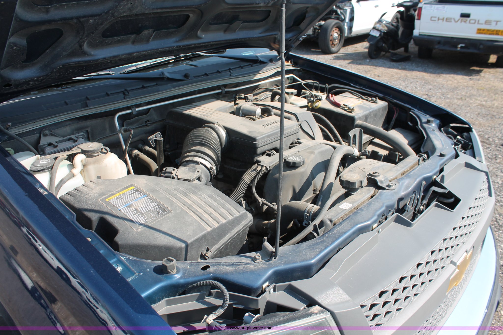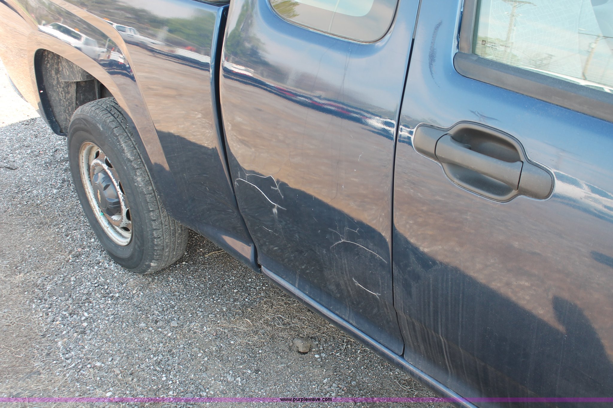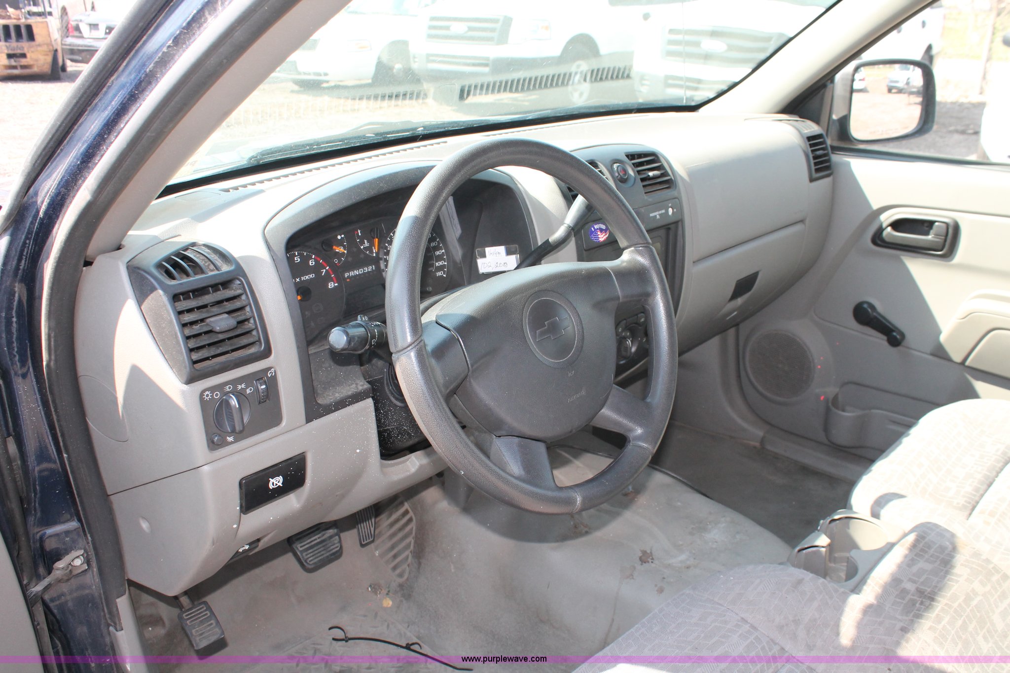 Purple Wave is selling a used Passenger Vehicle in Kansas. This item is a 2004 Chevrolet Colorado extended cab pickup truck with the following: 97,748 miles on odometer, 3.5L L5 DOHC 20V gas engine, Automatic transmission, AC and heat, AM/FM, Manual windows and locks, Cloth interior, Fiberglass bed cover, KC amber warning beacon, Receiver hitch, Trailer wiring, Interior damage, Body damage, Spare tire, Unit# 000601