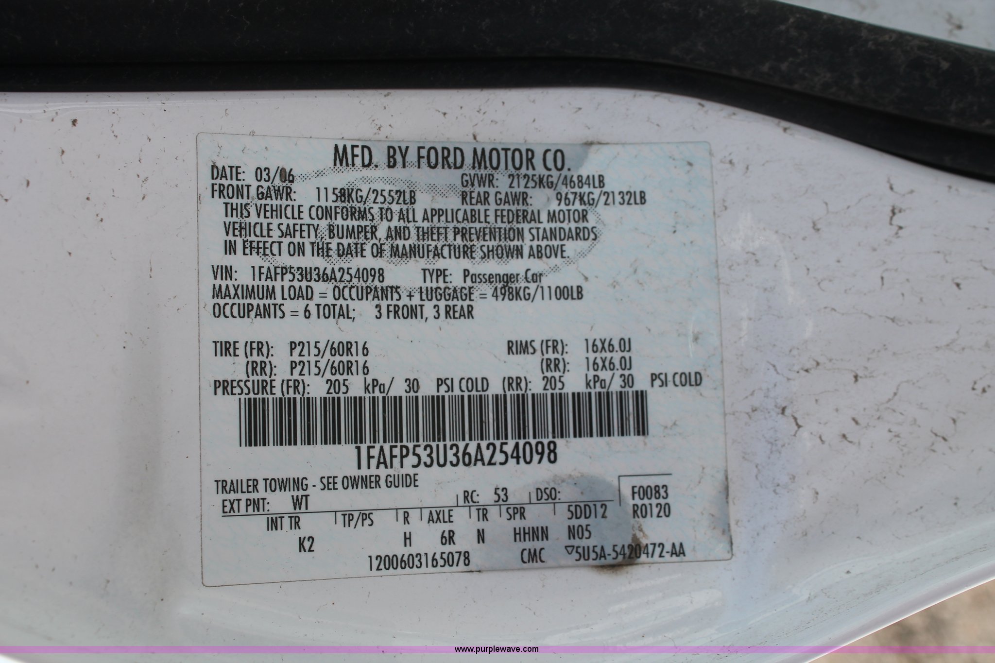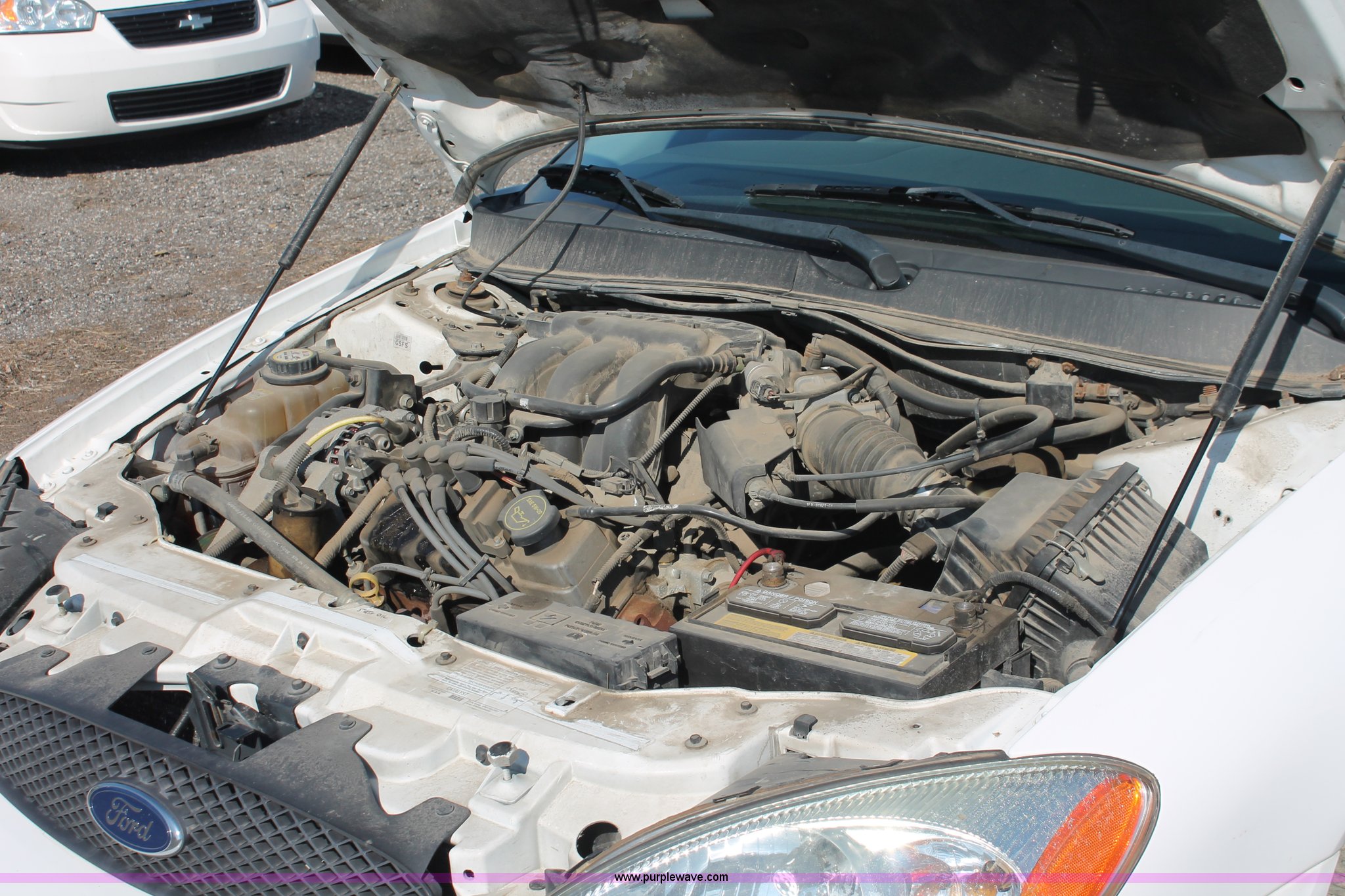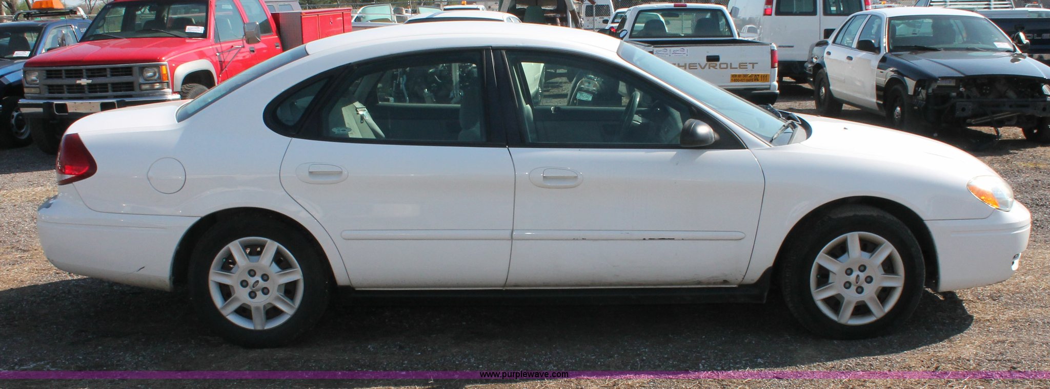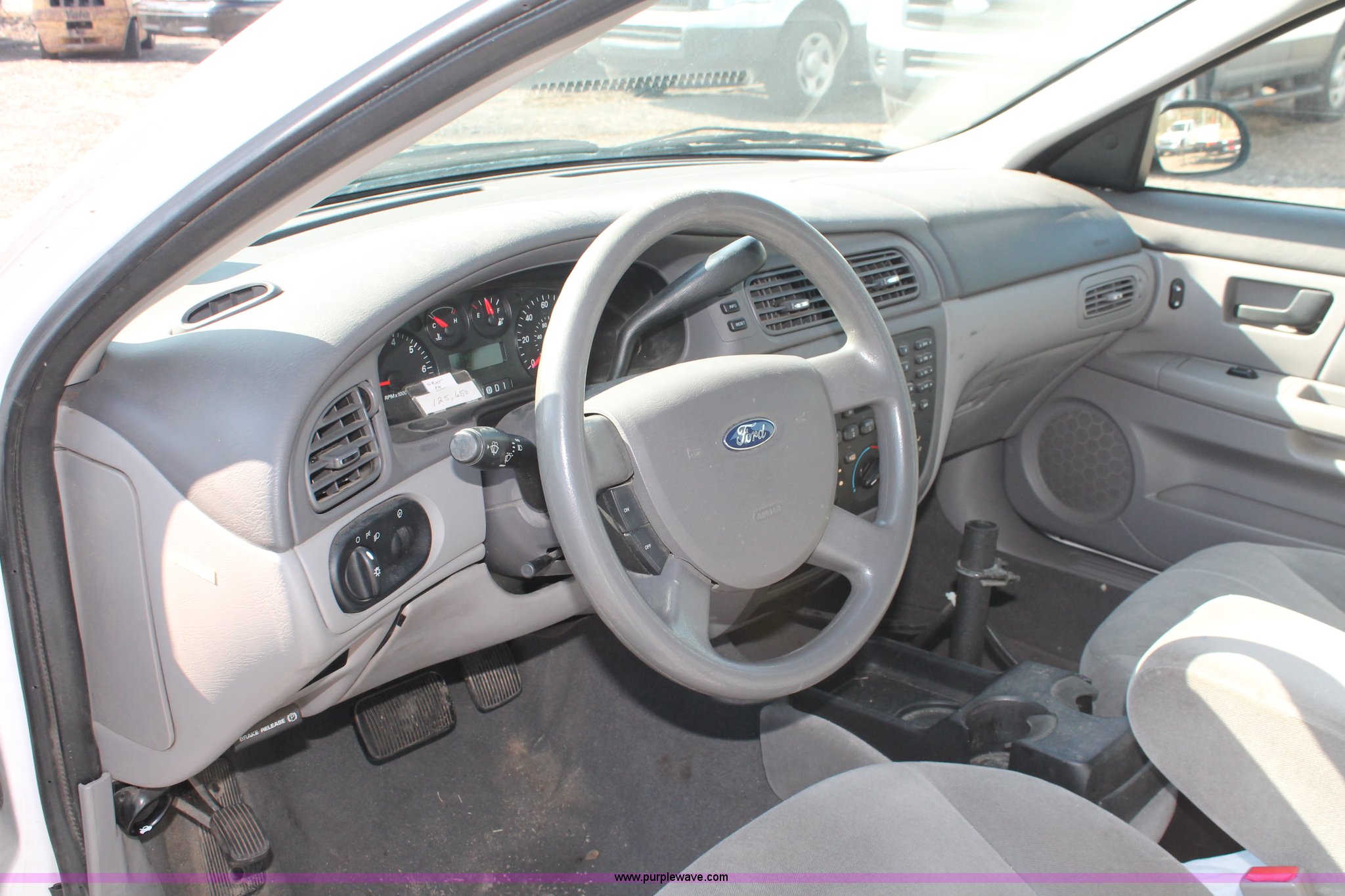 Purple Wave is selling a used Passenger Vehicle in Kansas. This item is a 2006 Ford Taurus SE with the following: 125,907 miles on odometer, 3.0L V6 OHV 12V gas engine, Automatic transmission, AC and heat, Tilt, Cruise, AM/FM/cassette, Power windows, locks, and mirrors, Cloth interior, P215/60R16 tires, Battery dead, Paint peeling, Unit# 001168