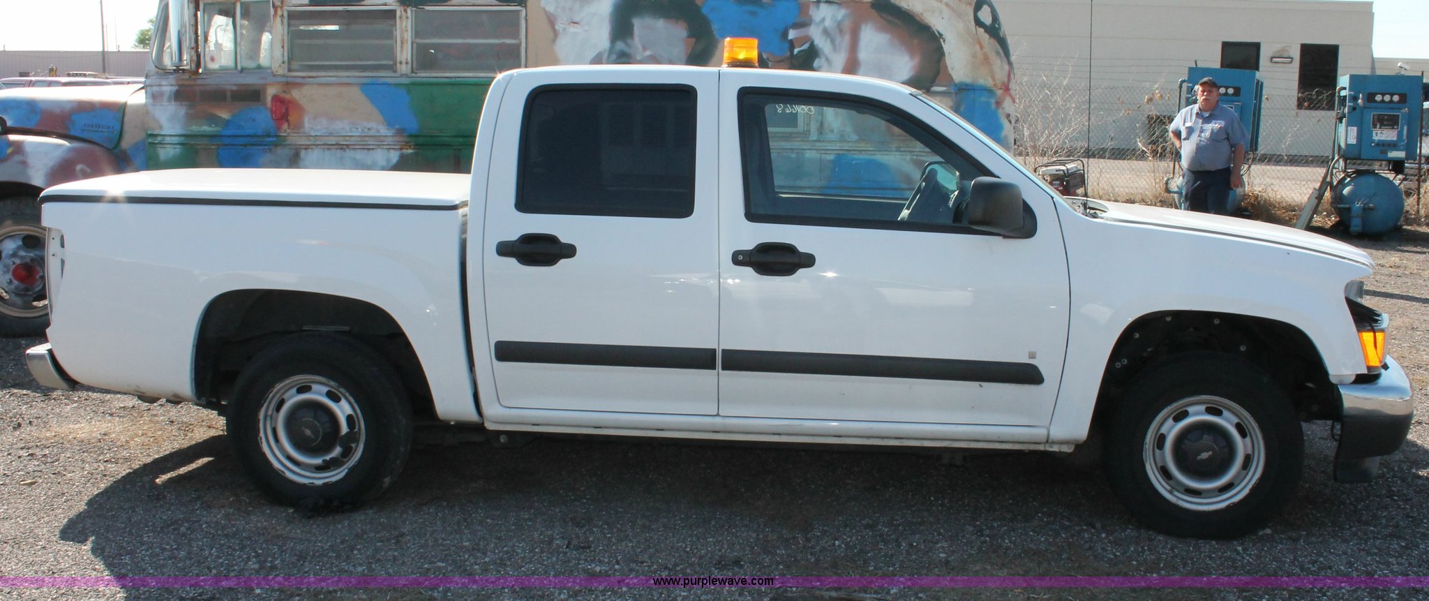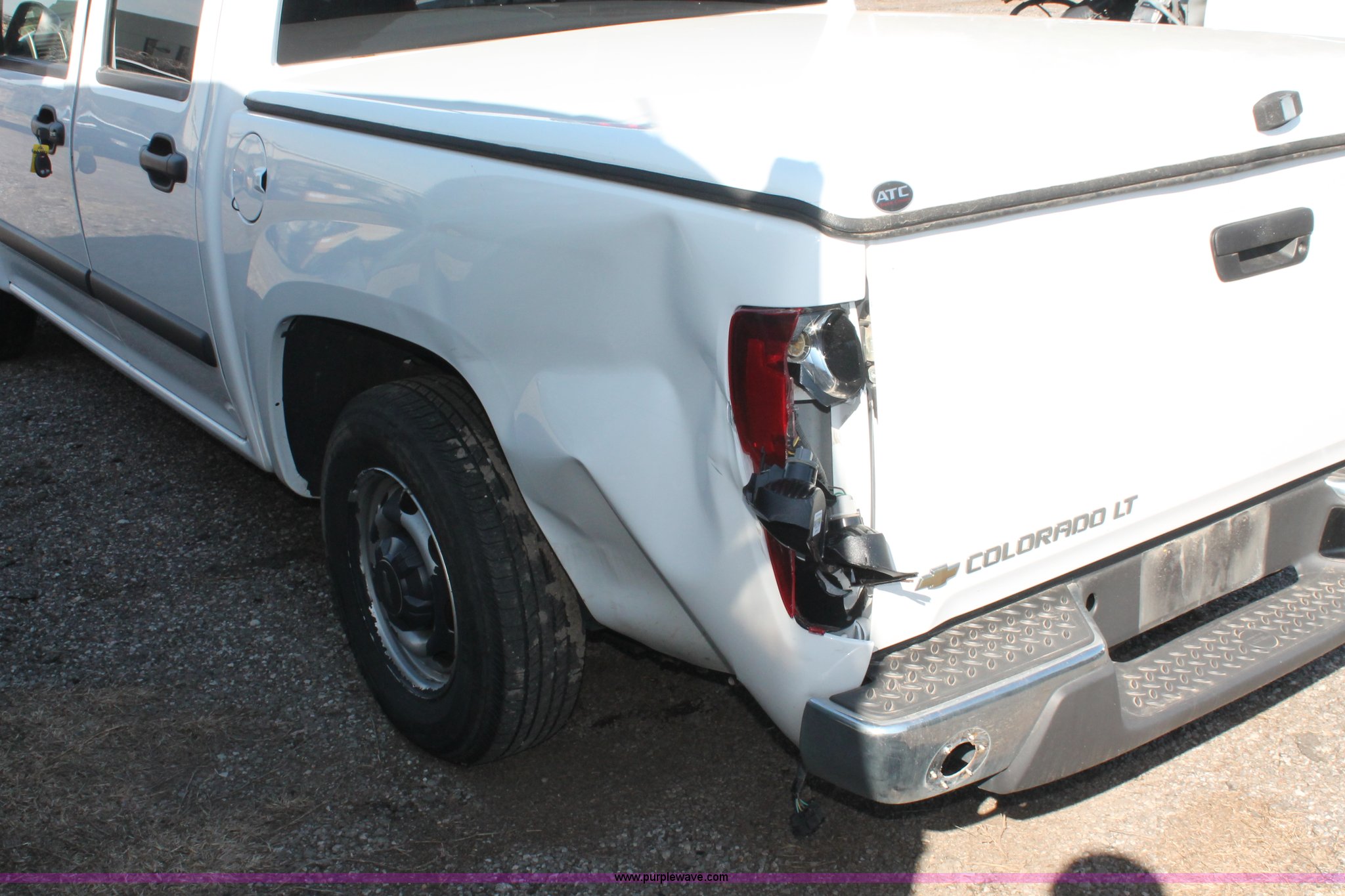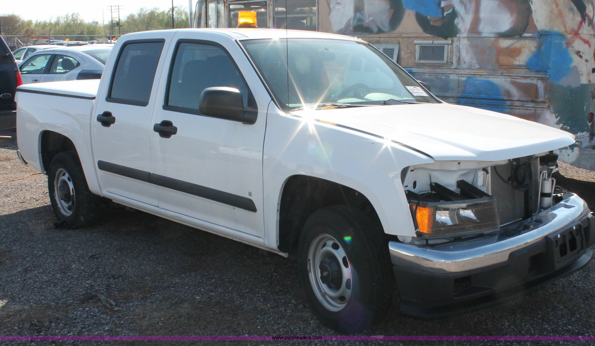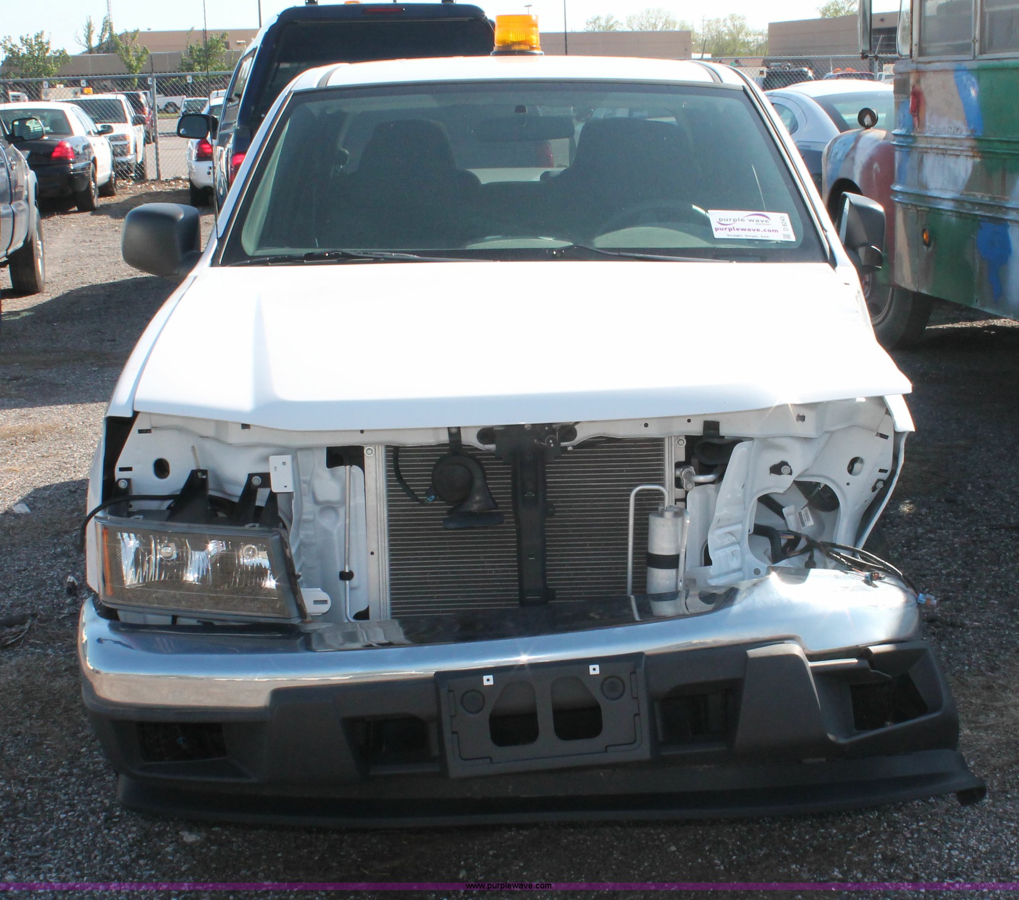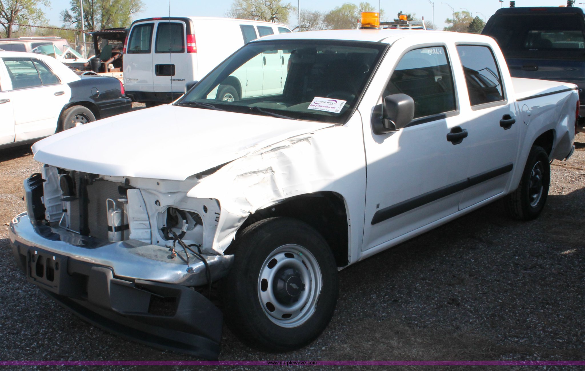 Purple Wave is selling a used Compact Pickup or Van in Kansas. This item is a 2008 Chevrolet Colorado LT extended cab pickup truck with the following: 21,876 miles on odometer, 3.7L L5 DOHC 20V gas engine, Automatic transmission, AC and heat, Tilt, Cruise, AM/FM, Power windows, locks, and mirrors, Cloth interior, Fiberglass bed cover, Amber warning beacon, P205/75R15 tires, Body damage, Front end damage, Rear end damage, Steering damage, Spare tire, Unit# 001668