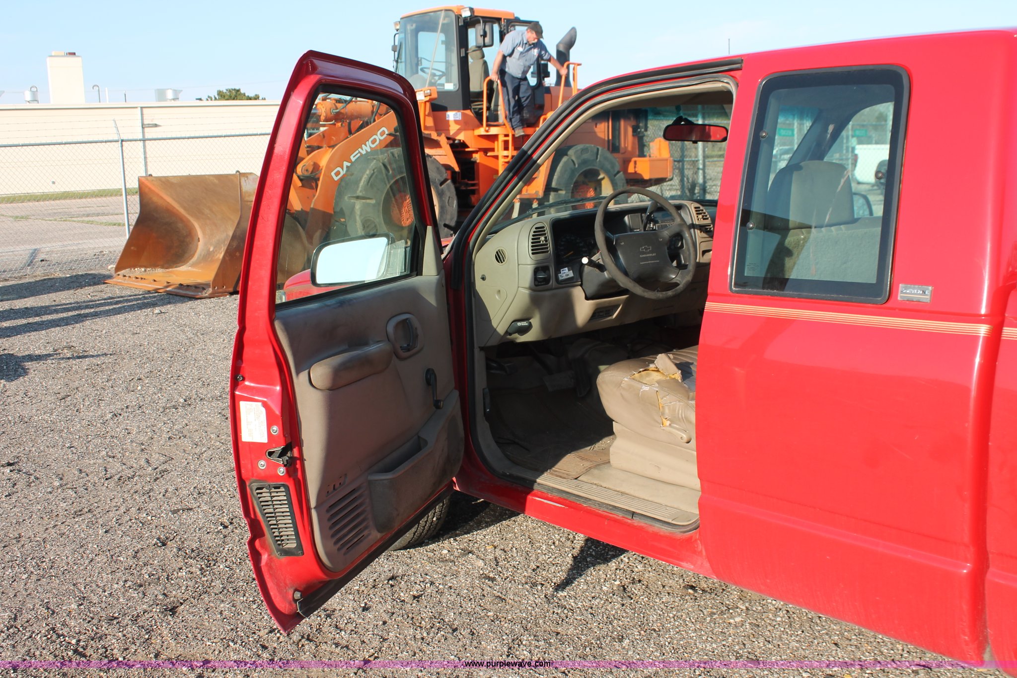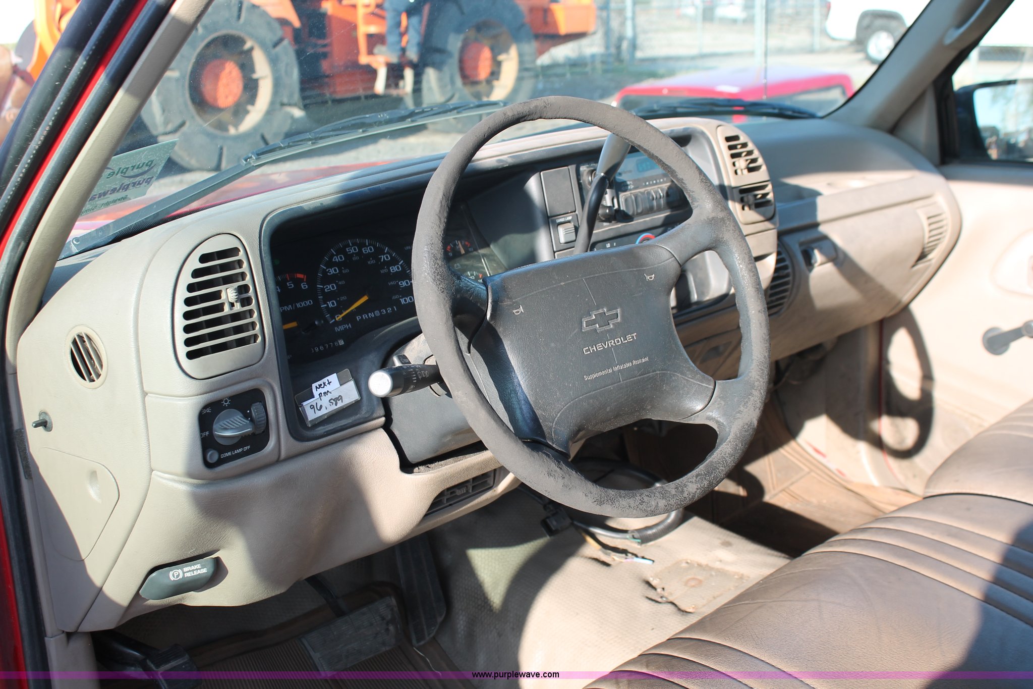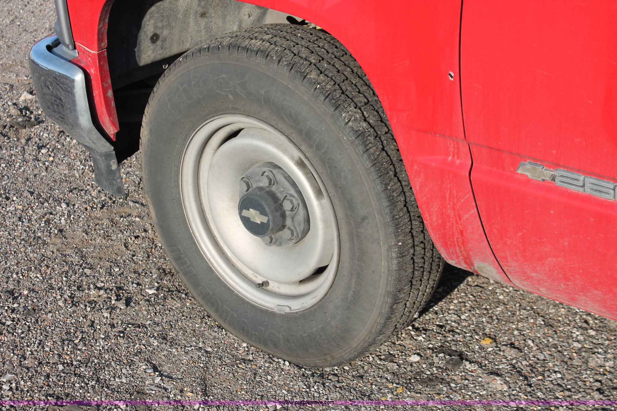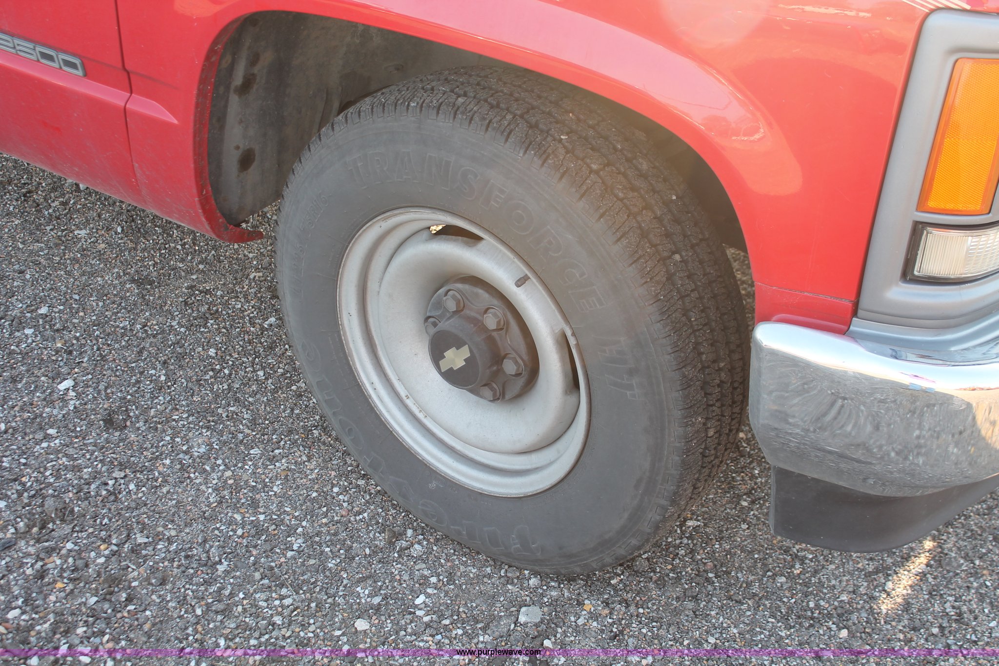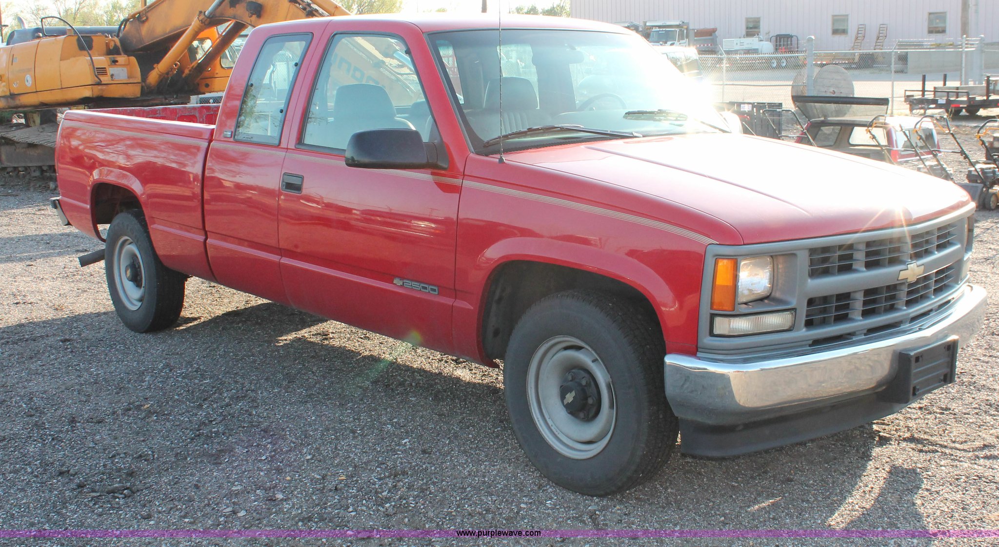 Purple Wave is selling a used Passenger Vehicle in Kansas. This item is a 1996 Chevrolet Cheyenne 2500 extended cab pickup truck with the following: 96,776 miles on odometer, 5.7L V8 OHV 16V gas engine, Automatic transmission, AC and heat, AM/FM, Manual windows and locks, Vinyl interior, LT225/75R16 tires, Bed rails damaged, Tailgate damaged, Spare tire, Unit# 8-2065