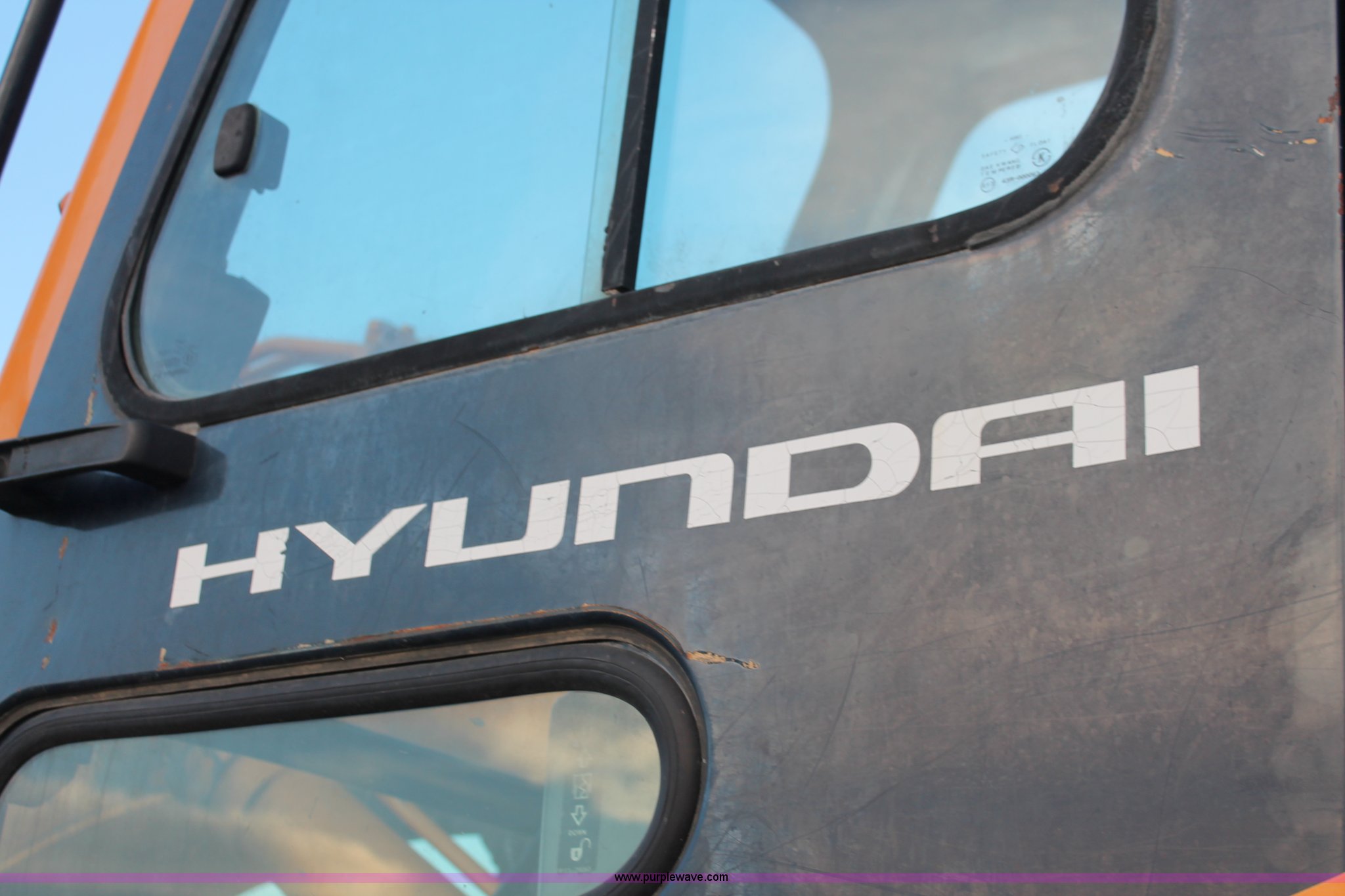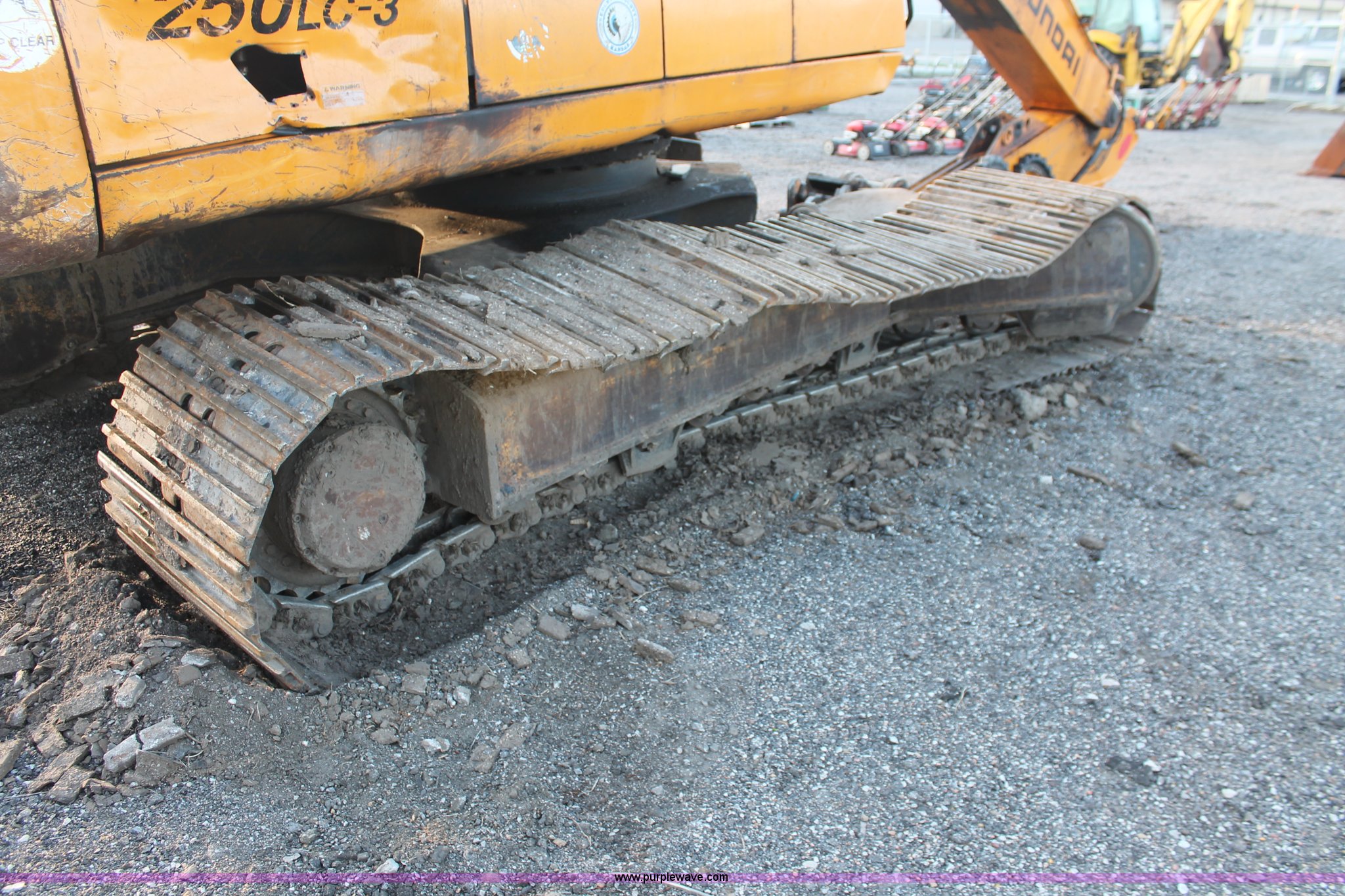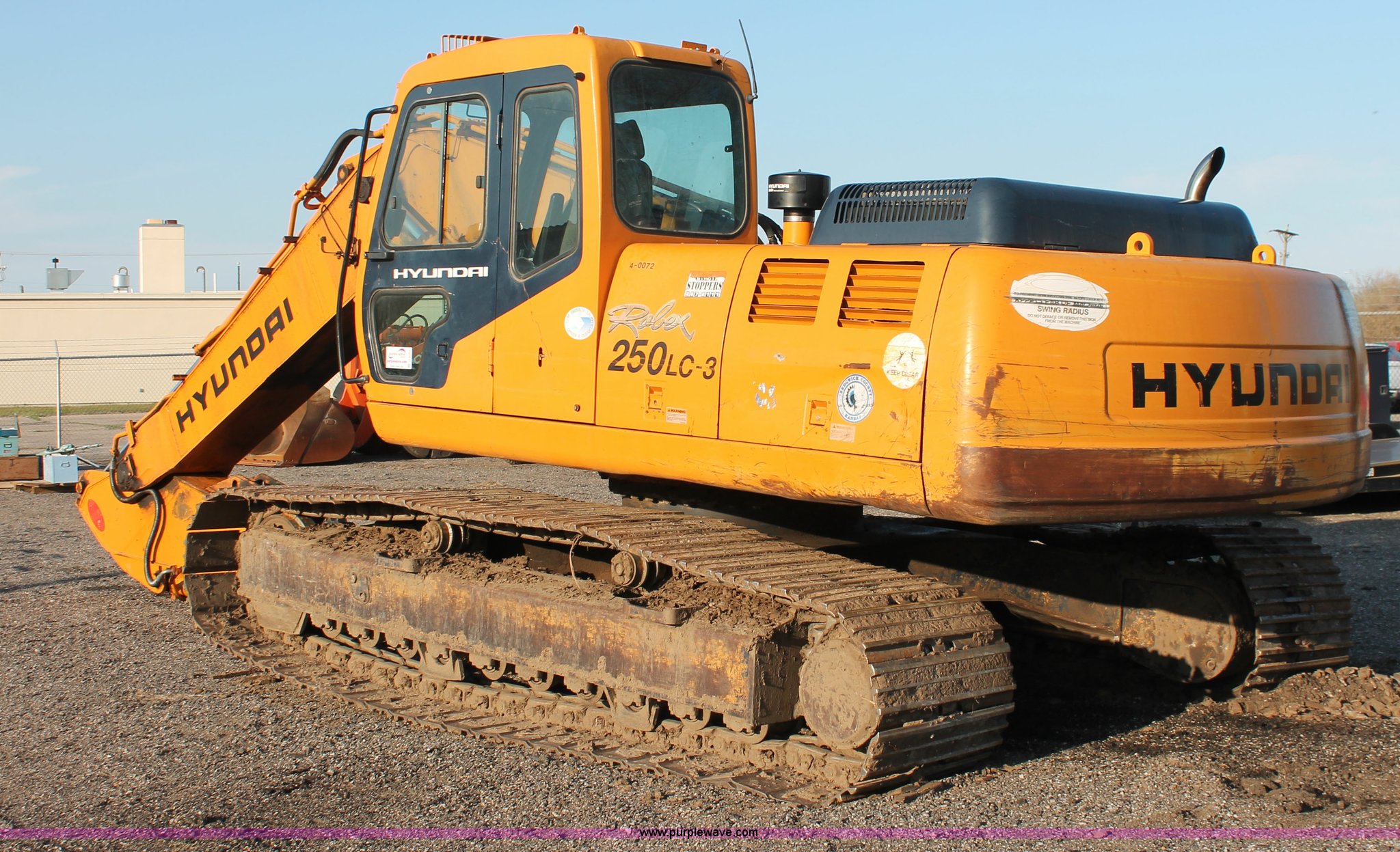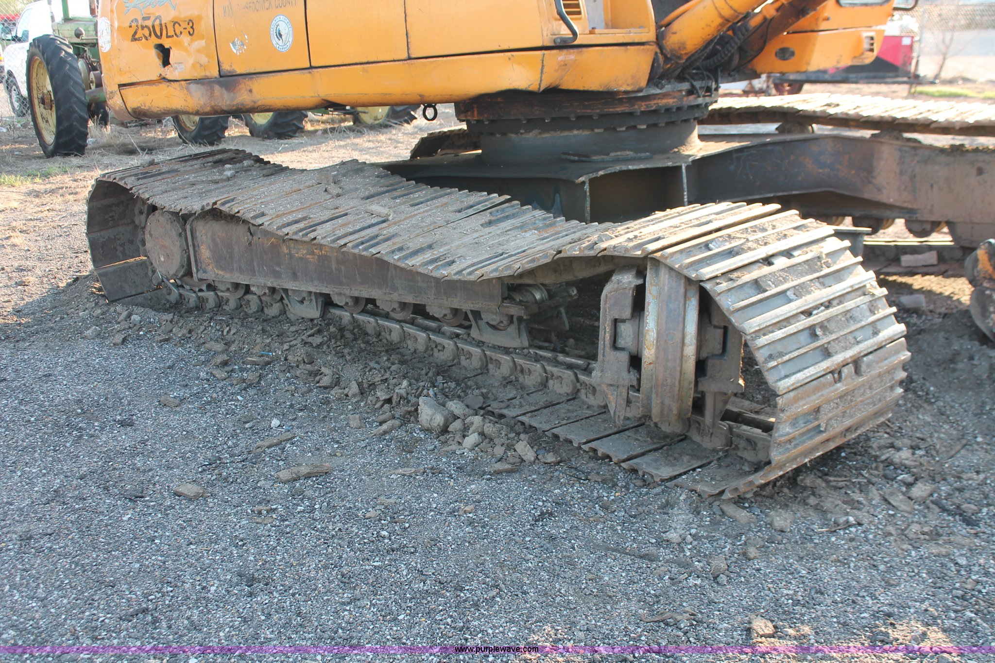 Purple Wave is selling a used Hydraulic Excavator in Kansas. This item is a 1999 Hyundai Robex 250LC-3 excavator with the following: 6,025 hours on meter, Six cylinder diesel engine, Holes in block, Enclosed cab, AC and heat, Suspension seat, Digital systems monitor, Quick coupler toggle, Sun shade, Roll up front windshield, 10' stick, 31.5"W triple grouser track pads, Body damage, Parts only, Unit inoperable, Frame leg cut from undercarriage, (2) undercarriage sprockets, Unused, JRB quick attach coupler is not included, Serial EN01EK10150