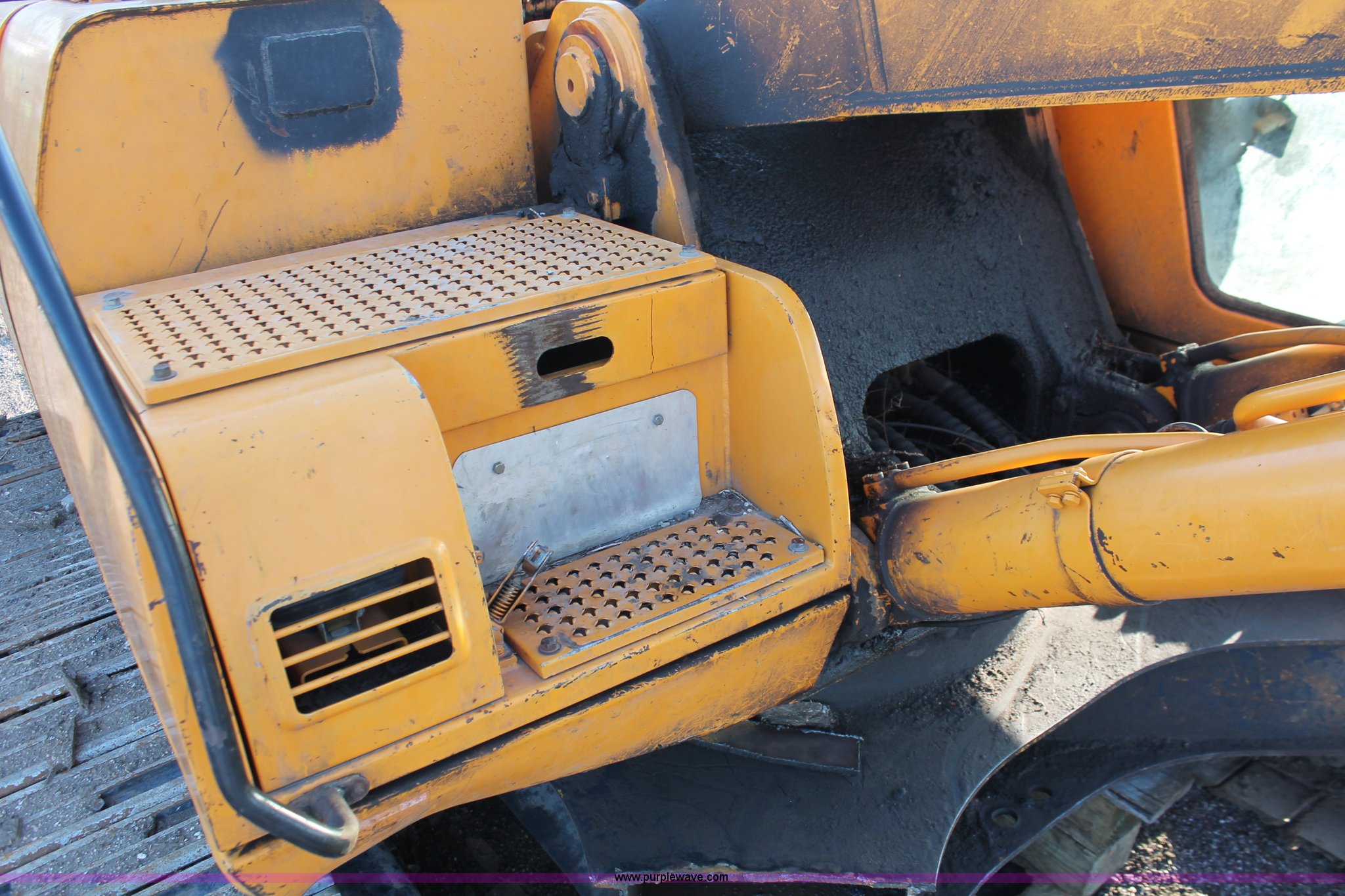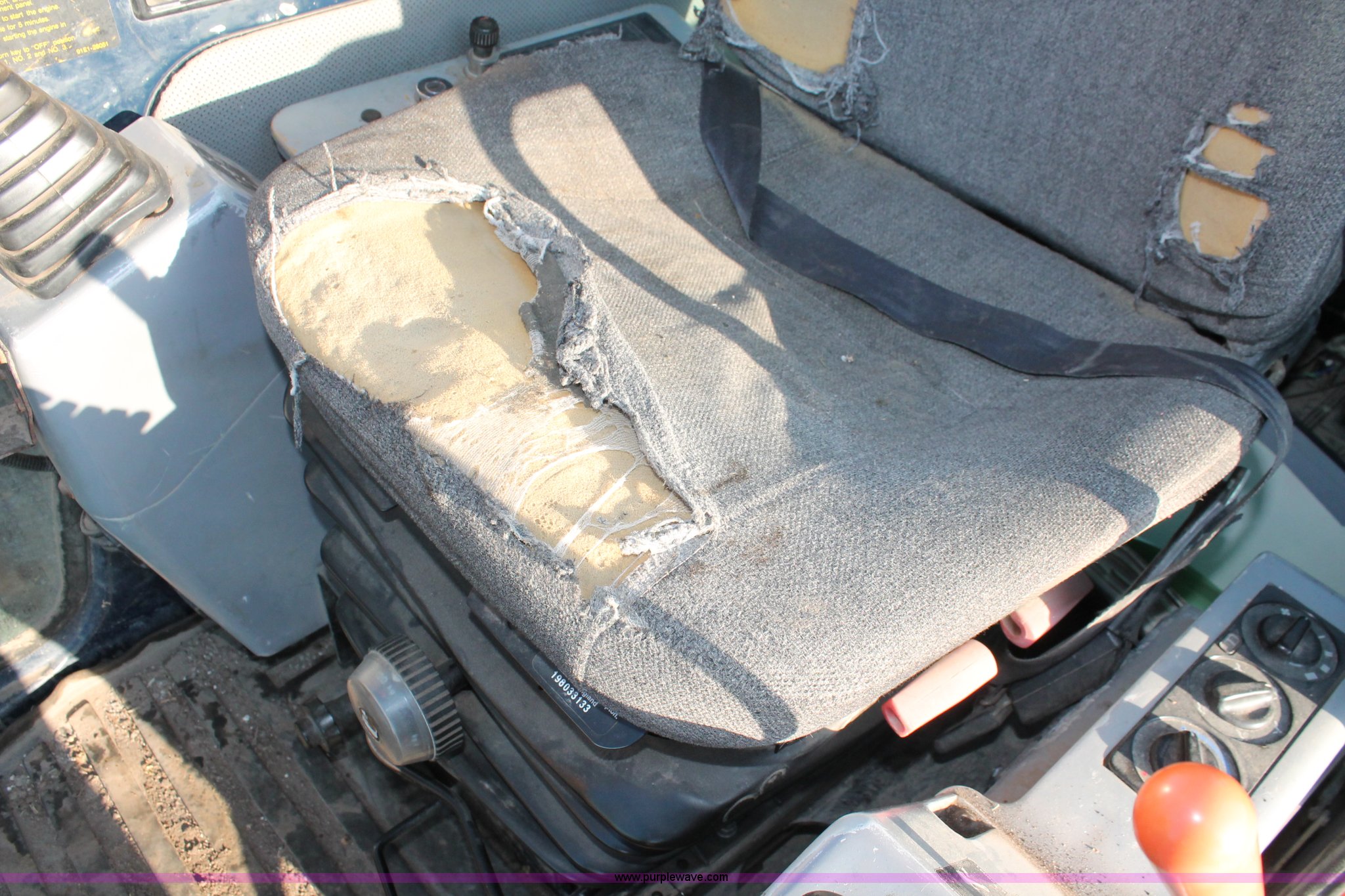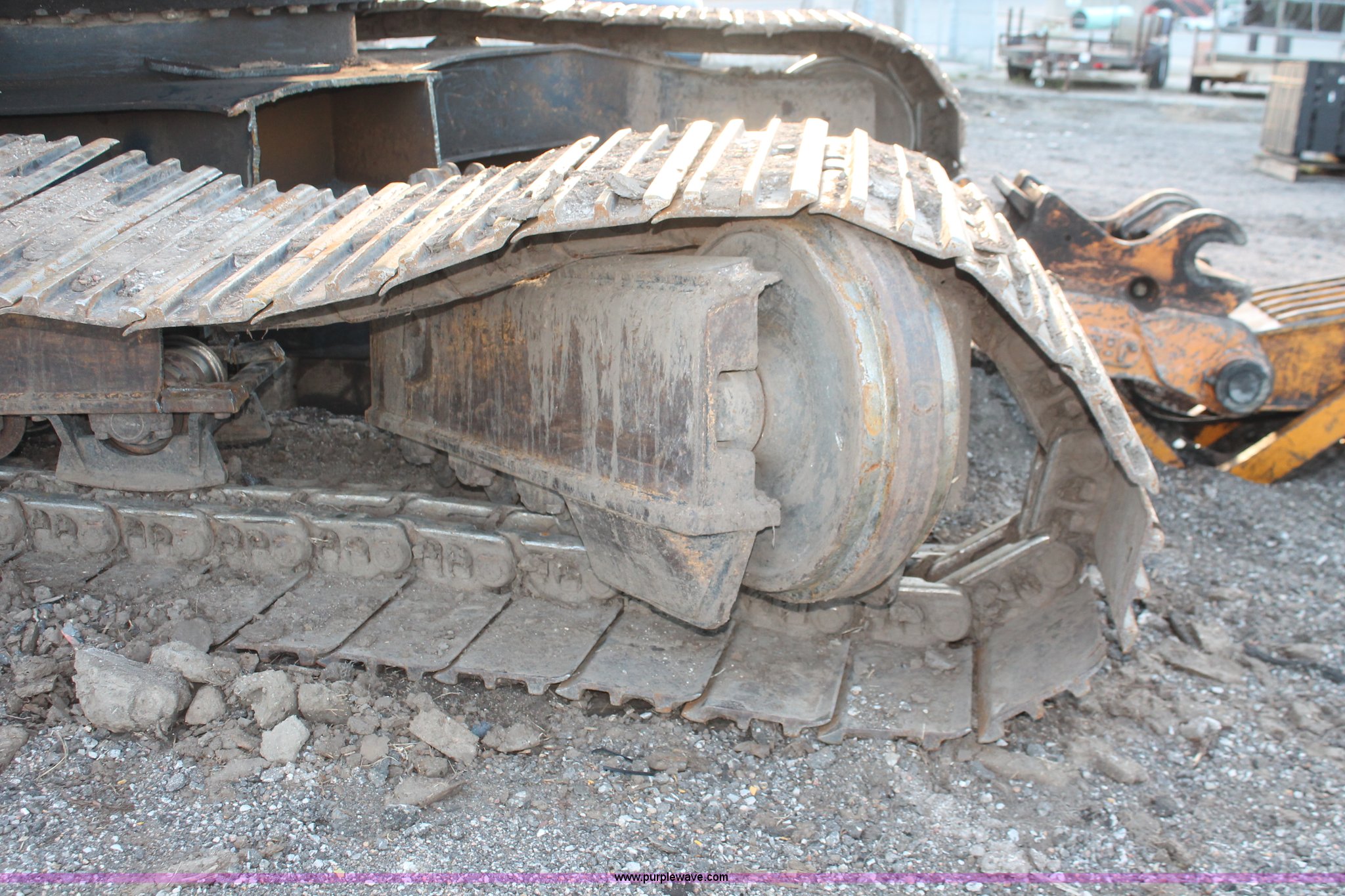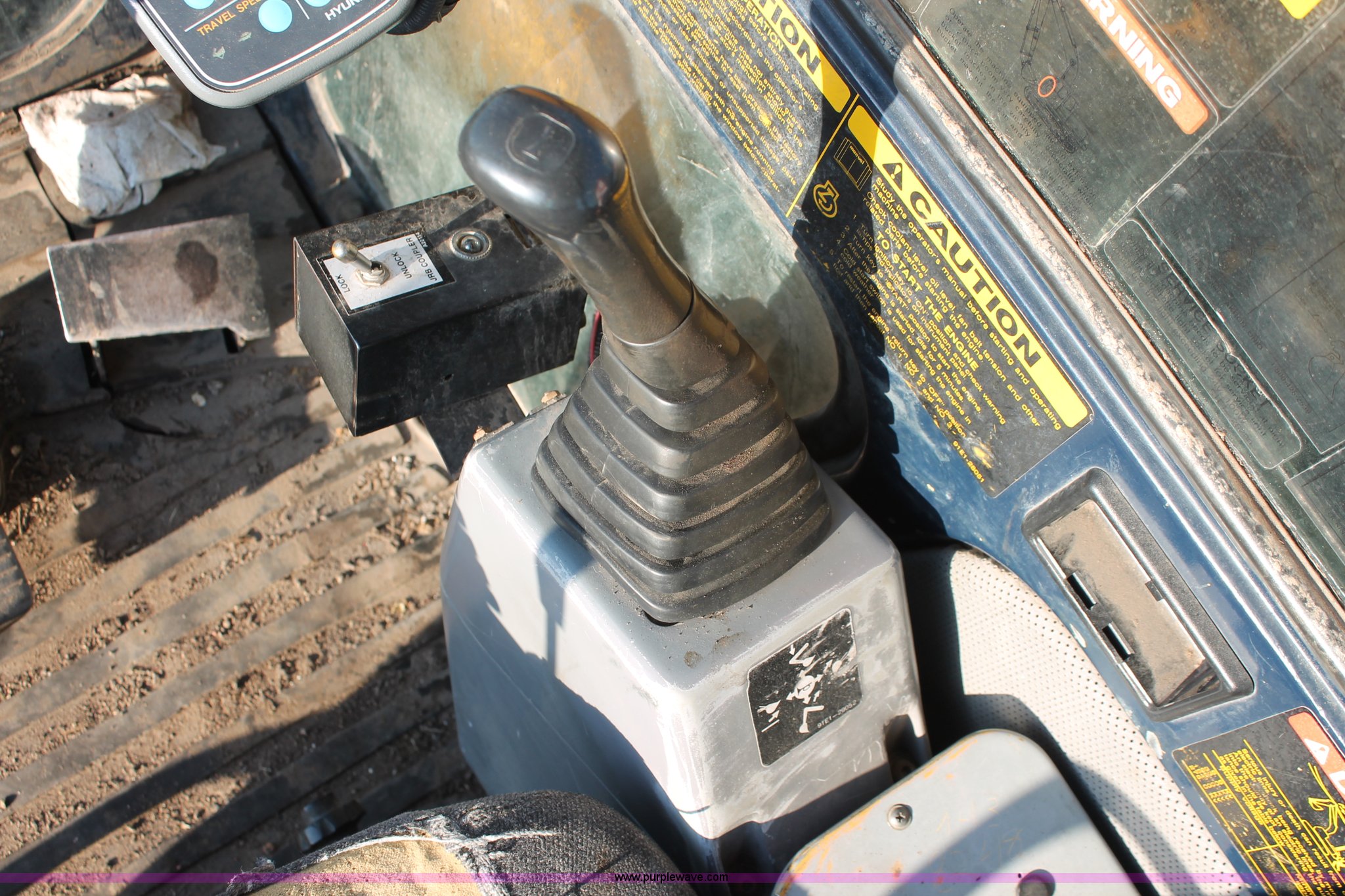 Purple Wave is selling a used Hydraulic Excavator in Kansas. This item is a 1999 Hyundai Robex 250LC-3 excavator with the following: 6,025 hours on meter, Six cylinder diesel engine, Holes in block, Enclosed cab, AC and heat, Suspension seat, Digital systems monitor, Quick coupler toggle, Sun shade, Roll up front windshield, 10' stick, 31.5"W triple grouser track pads, Body damage, Parts only, Unit inoperable, Frame leg cut from undercarriage, (2) undercarriage sprockets, Unused, JRB quick attach coupler is not included, Serial EN01EK10150