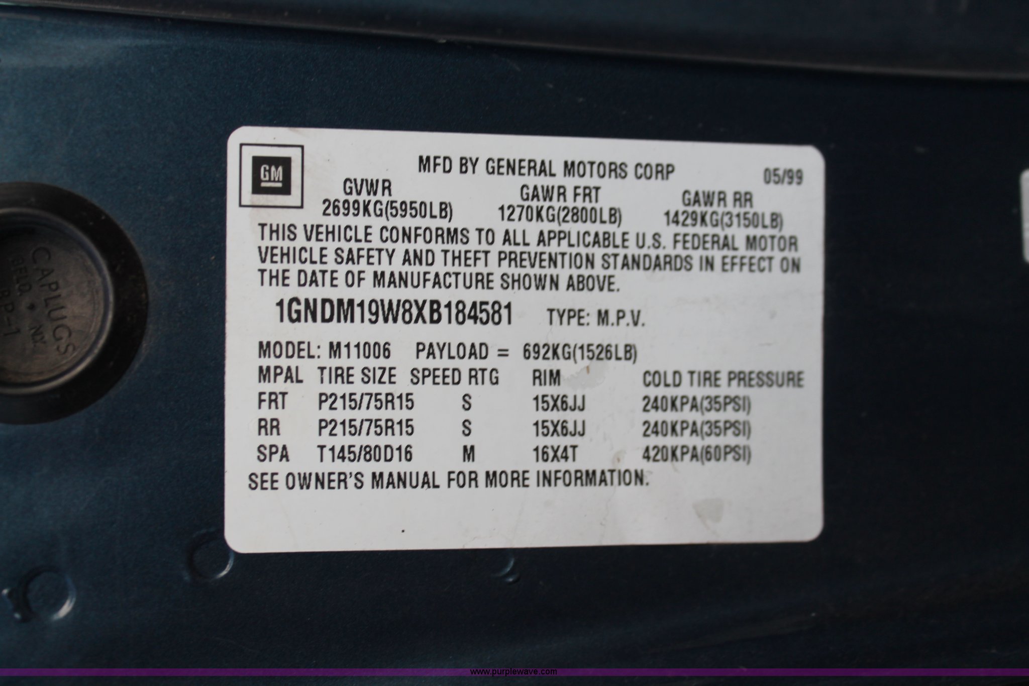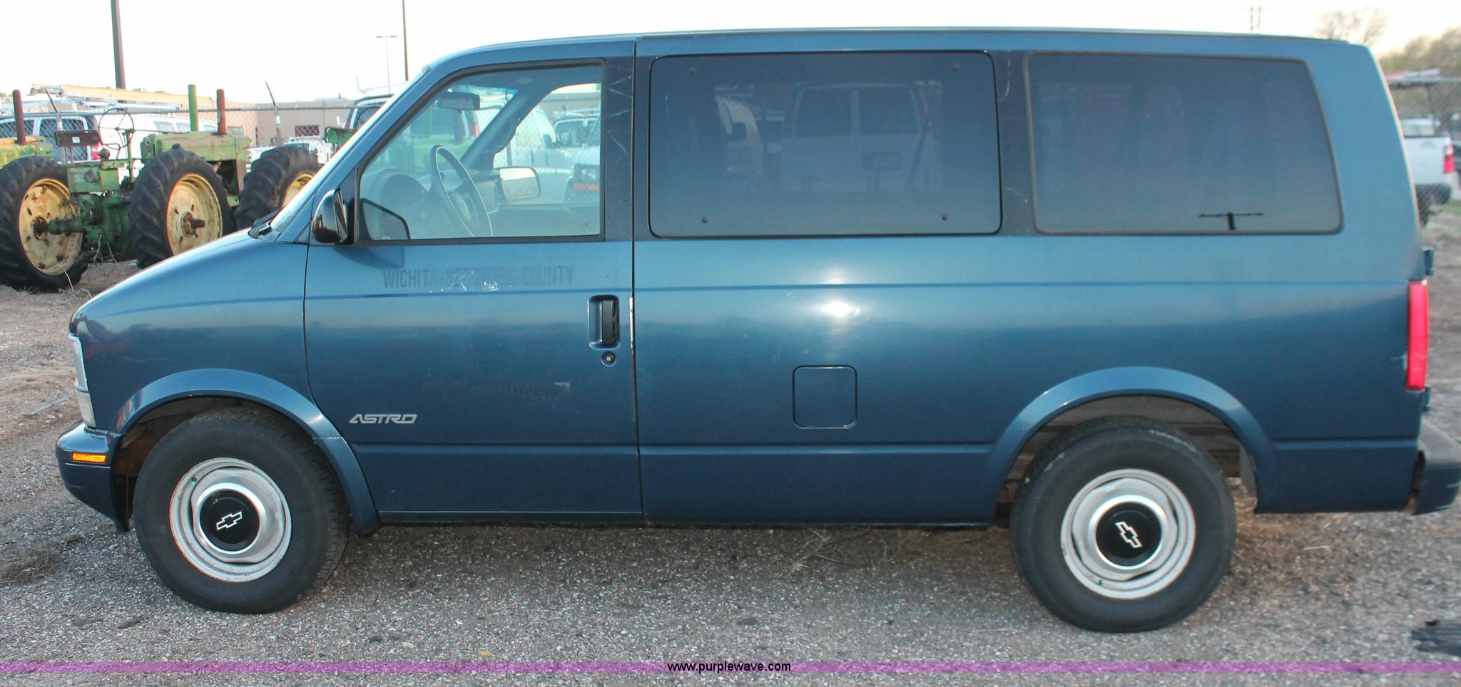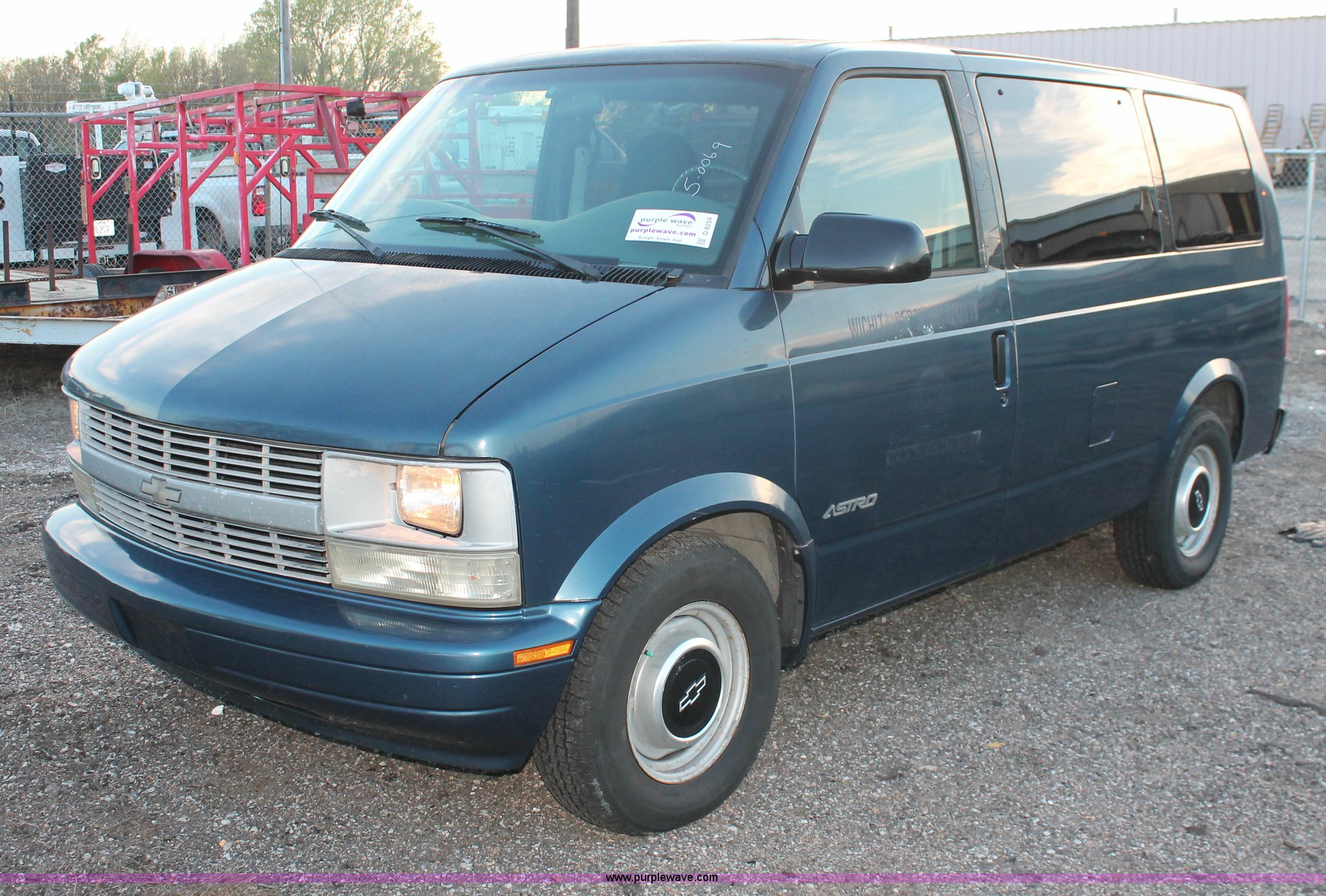 Purple Wave is selling a used Passenger Vehicle in Kansas. This item is a 1999 Chevrolet Astro van with the following: 64,599 miles on odometer, 4.3L V6 OHV 12V gas engine, Automatic transmission, AC and heat, Tilt, Cruise, AM/FM, Manual windows and locks,, Cloth interior, (2) rear bench seats, Receiver hitch, Trailer wiring, P215/75R15 tires, Windshield pitted, Exterior scratched, Unit# 5-0069