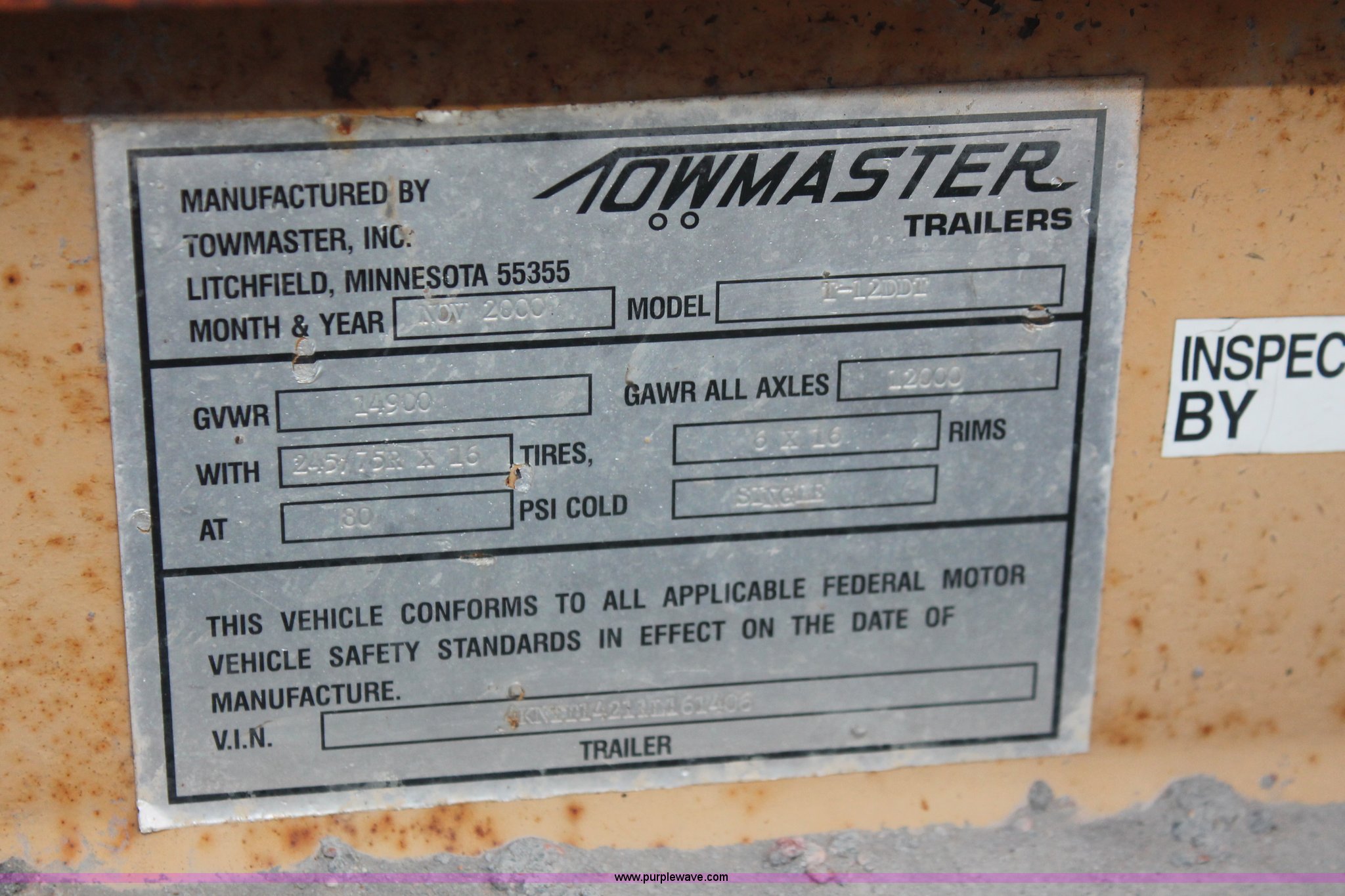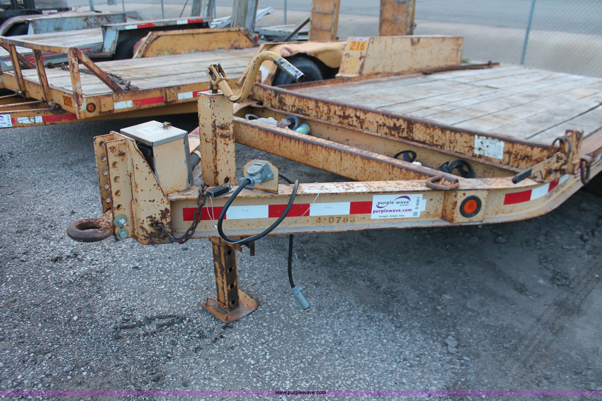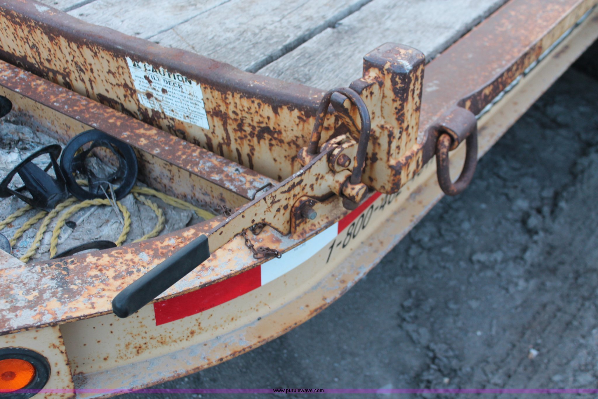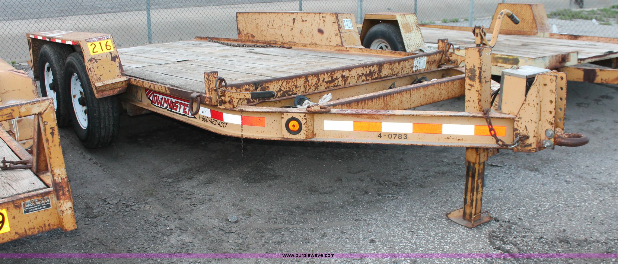 Purple Wave is selling a used Equip. Trailer in Kansas. This item is a 2001 Towmaster T-12DDT tilt deck trailer with the following: 15'L x 82"W, Wood deck, Diamond plate ramp, Tandem axle, D-ring tie downs, Adjustable height pintle hitch, LT245/75R16 tires, Unit# 4-0783