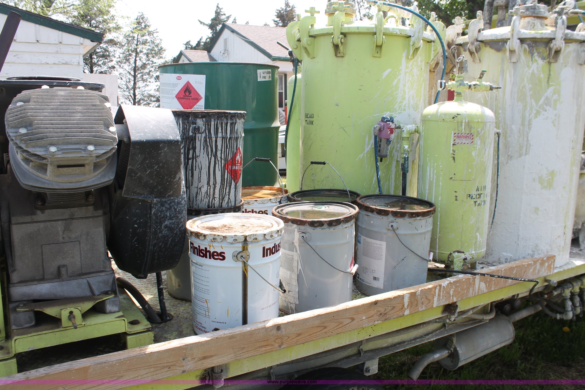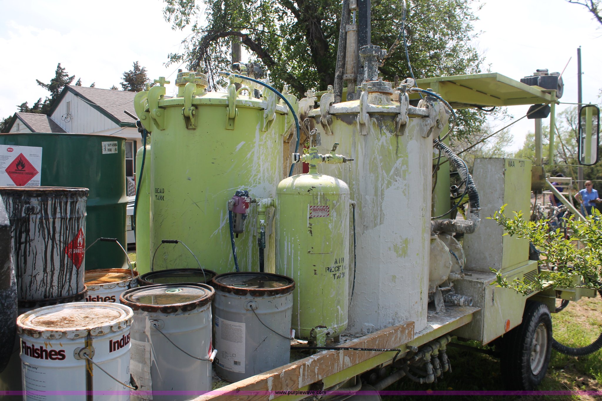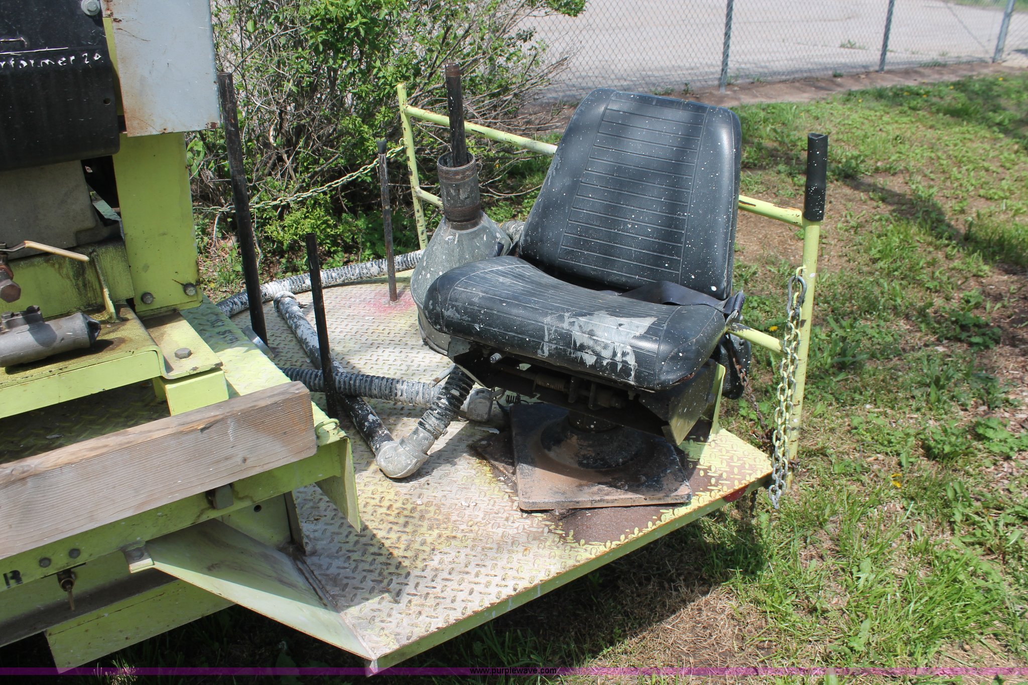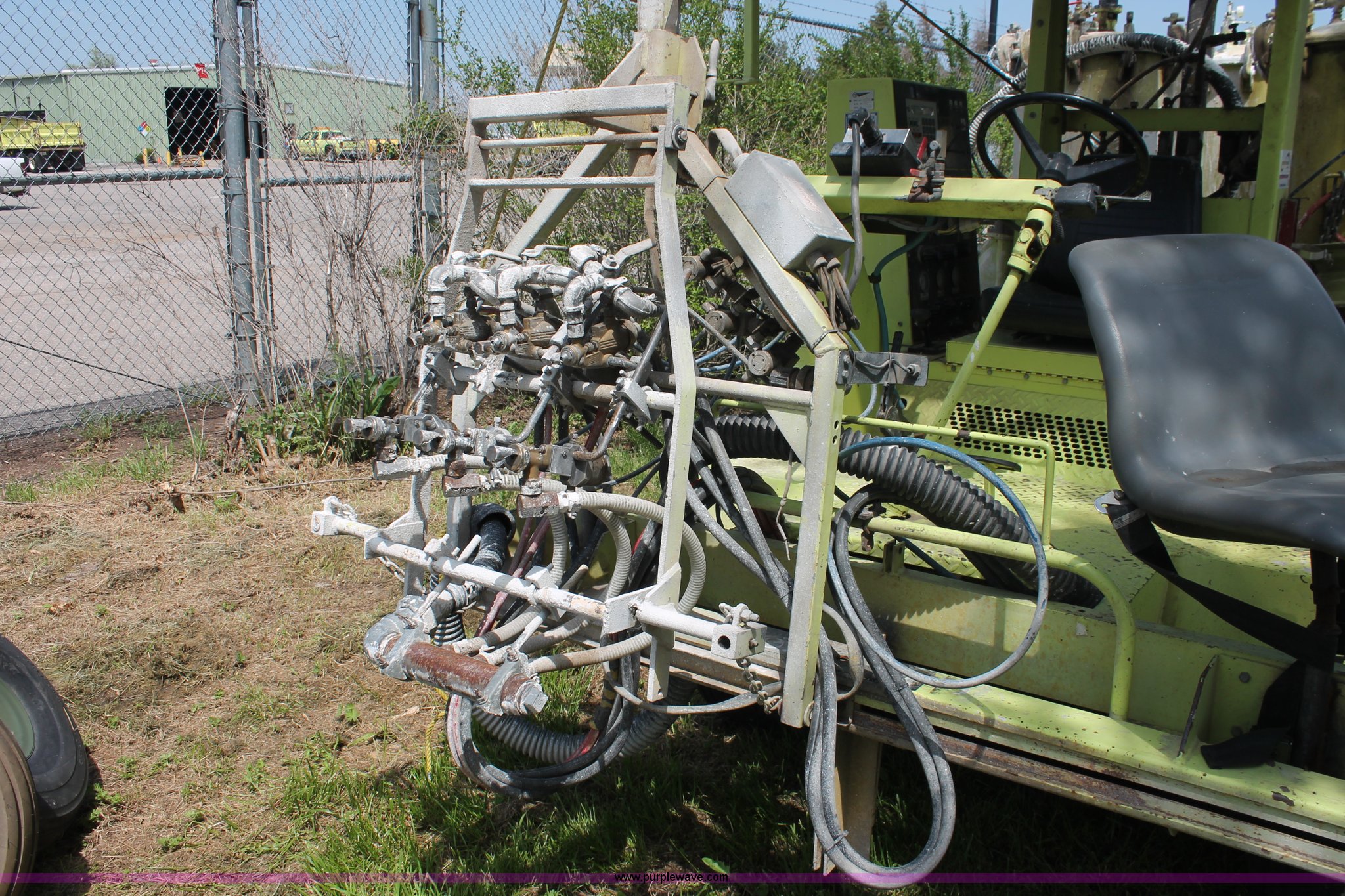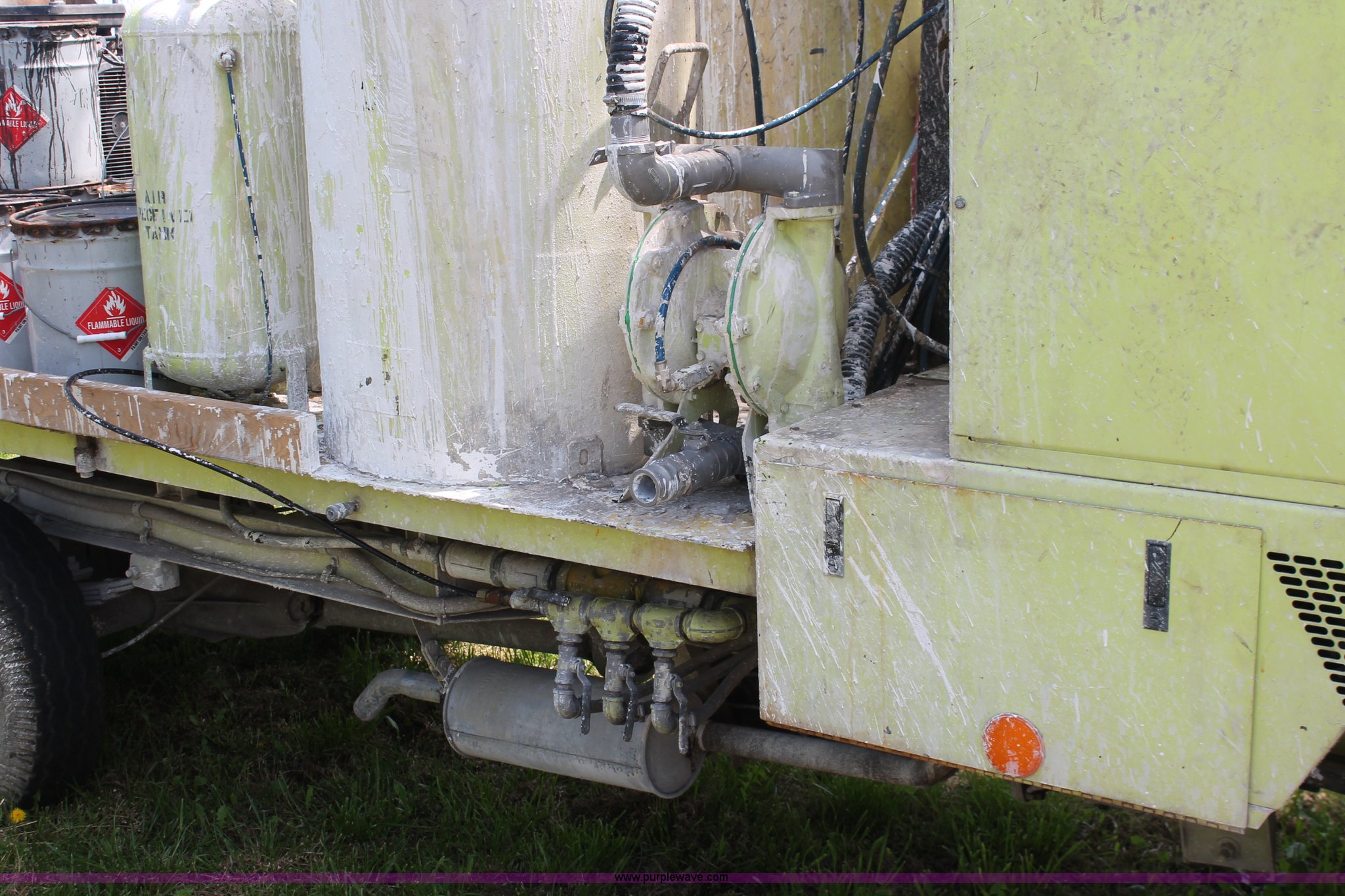 Purple Wave is selling a used Road Safety Equip. in Kansas. This item is a 1996 MB ride-on paint striper with the following: 855 hours on meter, Model MB245, Spec No. BM-3476, Four cylinder gas engine, Automatic transmission, Canopy, Paint control monitor, Operator assistant seat, Three gun system, Fold up guide wheels, Onan Performer 24 gas engine, Atlas Copco twin cylinder compressor, (3) Approx. 55 gallon paint drums, (2) pressure tanks, Rear platform, Observation seat, Work lights, 8-14.5 tires, Serial 5-0177