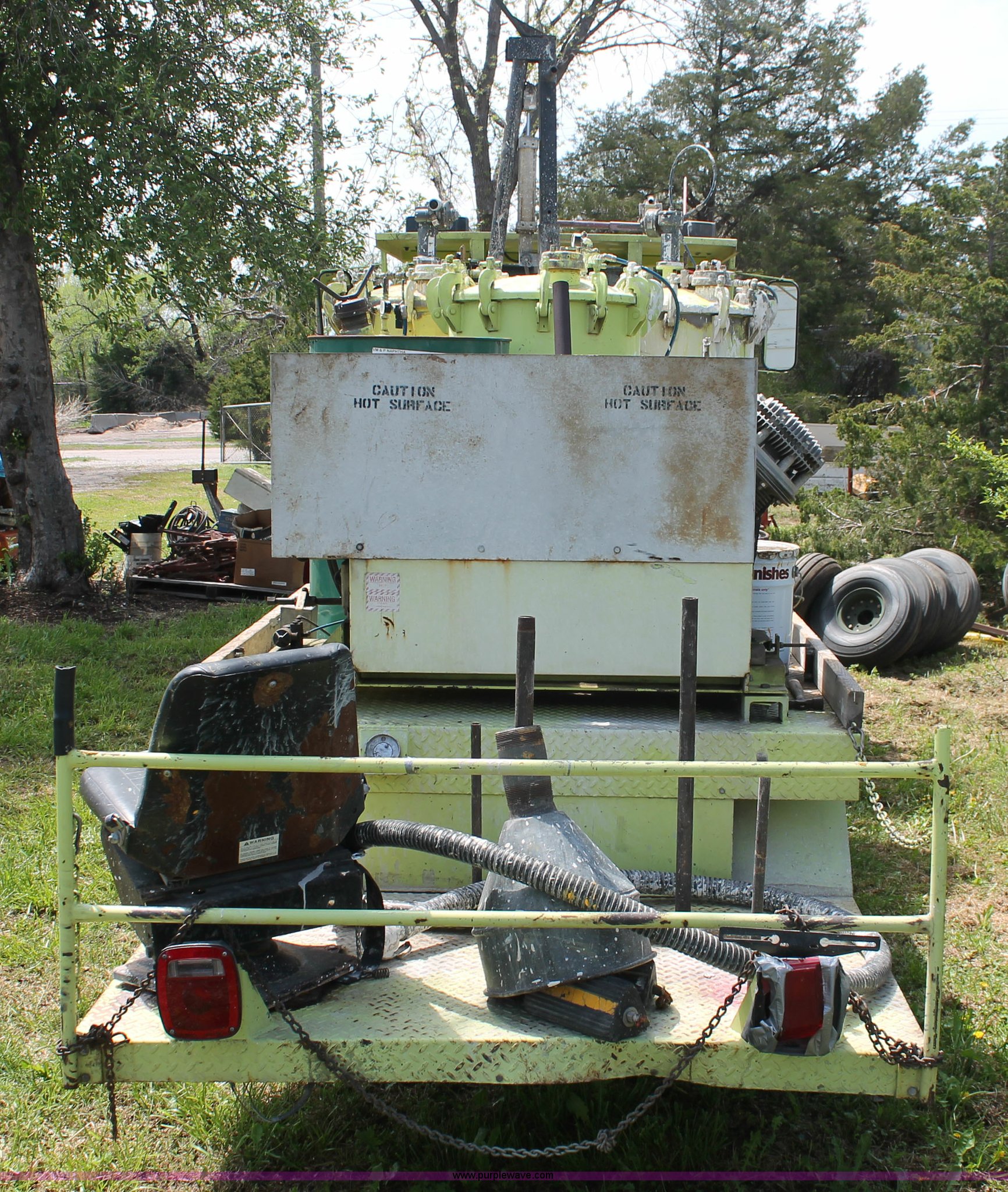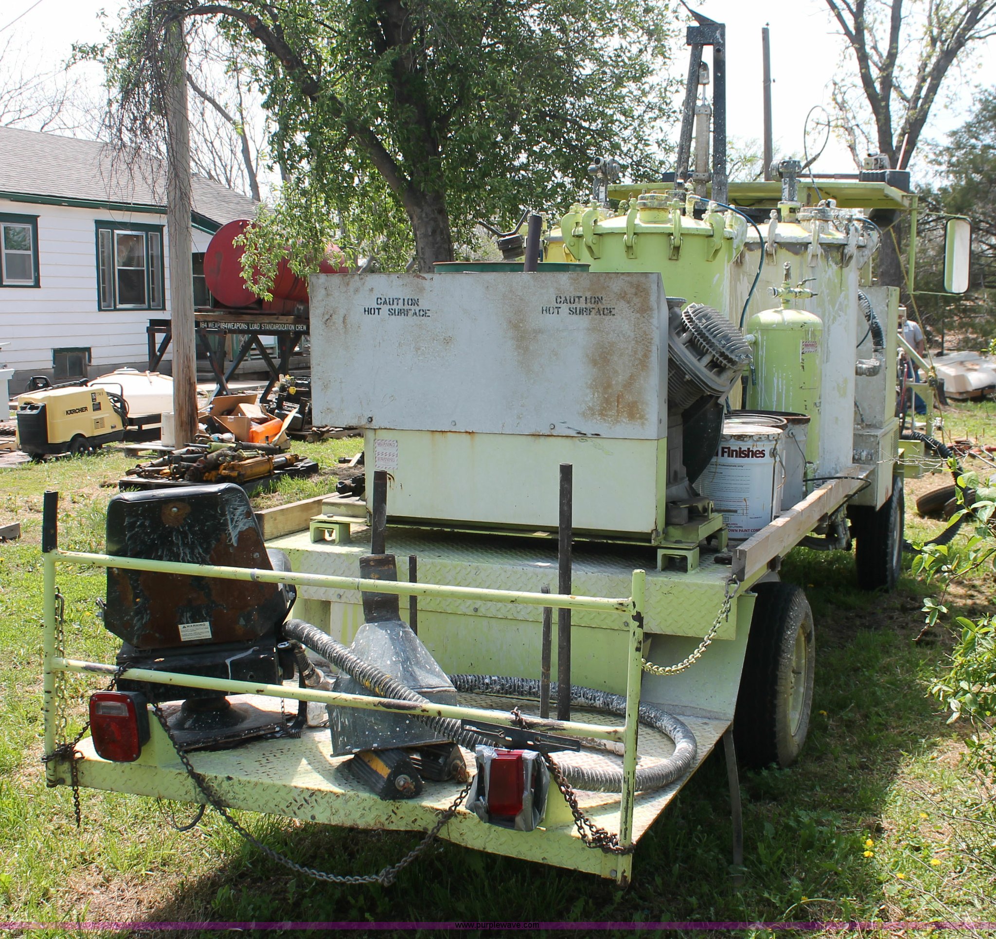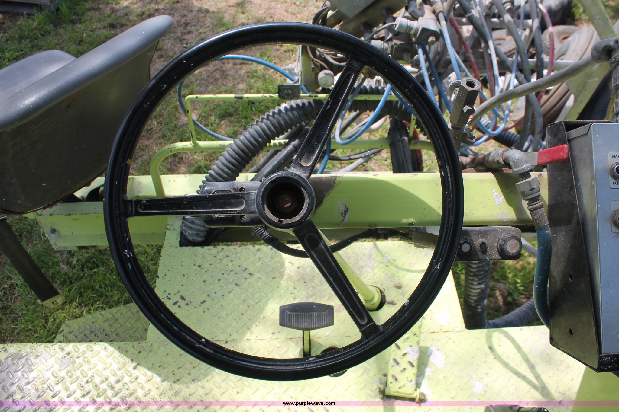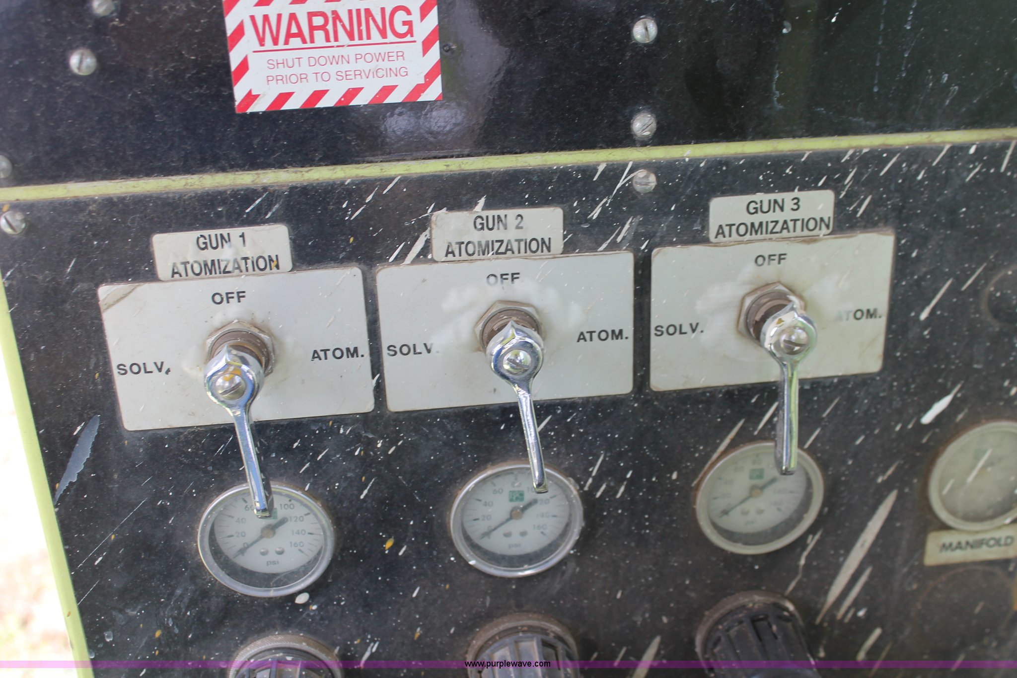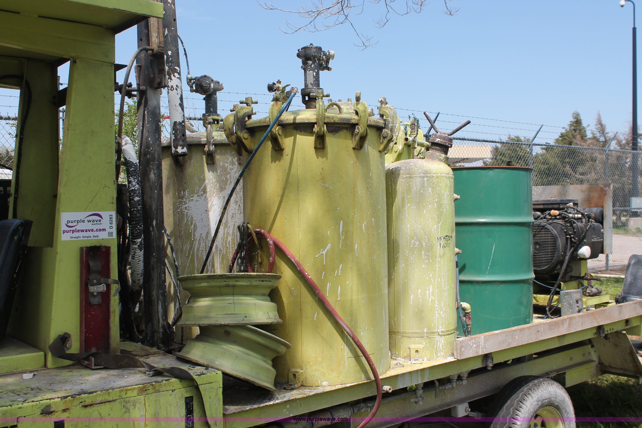Purple Wave is selling a used Road Safety Equip. in Kansas. This item is a 1996 MB ride-on paint striper with the following: 855 hours on meter, Model MB245, Spec No. BM-3476, Four cylinder gas engine, Automatic transmission, Canopy, Paint control monitor, Operator assistant seat, Three gun system, Fold up guide wheels, Onan Performer 24 gas engine, Atlas Copco twin cylinder compressor, (3) Approx. 55 gallon paint drums, (2) pressure tanks, Rear platform, Observation seat, Work lights, 8-14.5 tires, Serial 5-0177