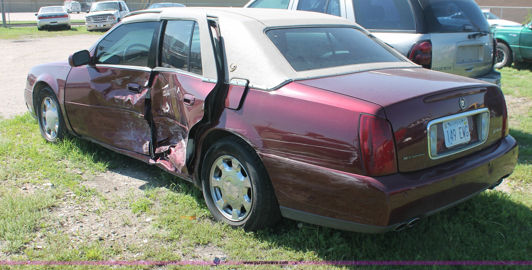 Purple Wave is selling a used Wrecked and Abandoned in Kansas. This item is a 2001 Cadillac DeVille with the following: Unknown miles on odometer, 4.6L V8 DOHC 32V gas engine, Automatic transmission, AM/FM/CD, Power and heated seats, Leather interior, 225/60R16 tires, Driver's side collision damage, Cracked windshield, Case# 13C20114