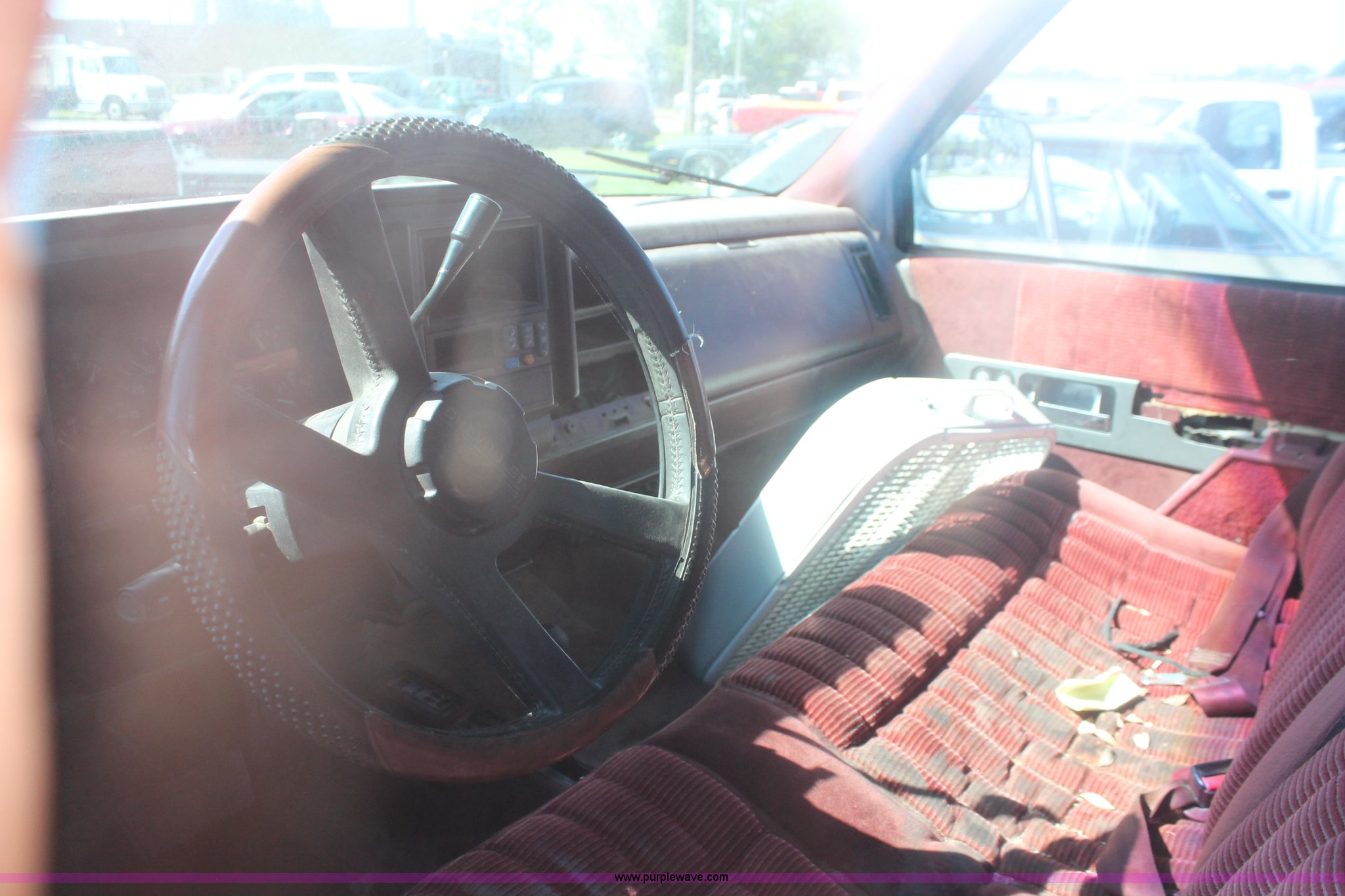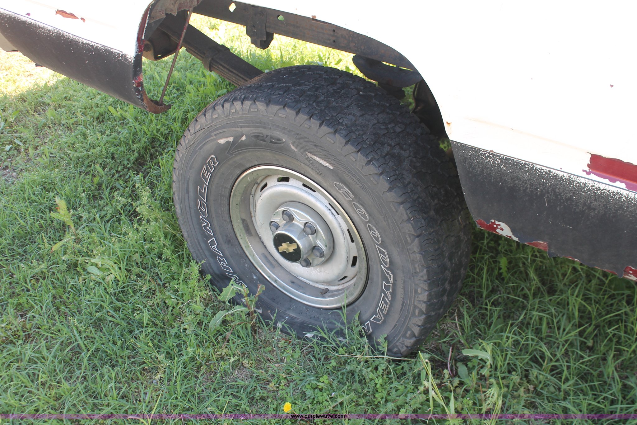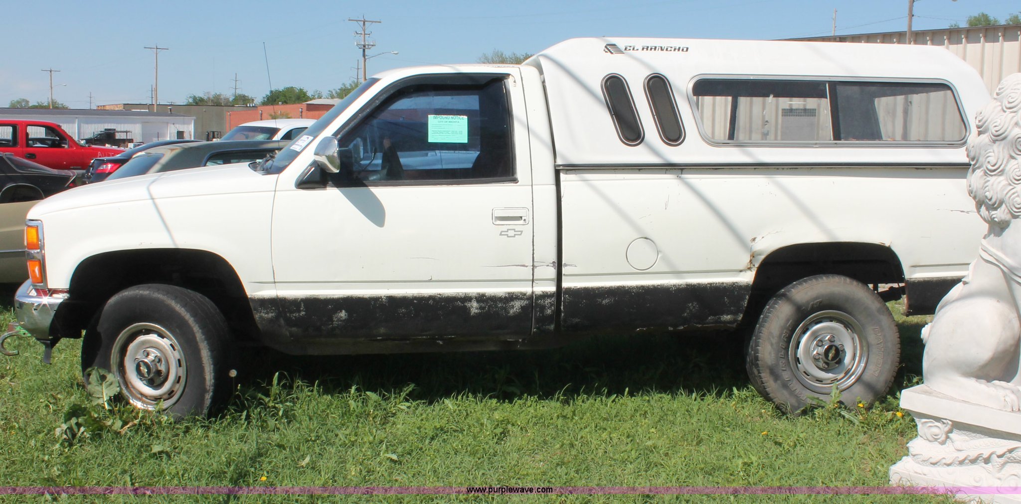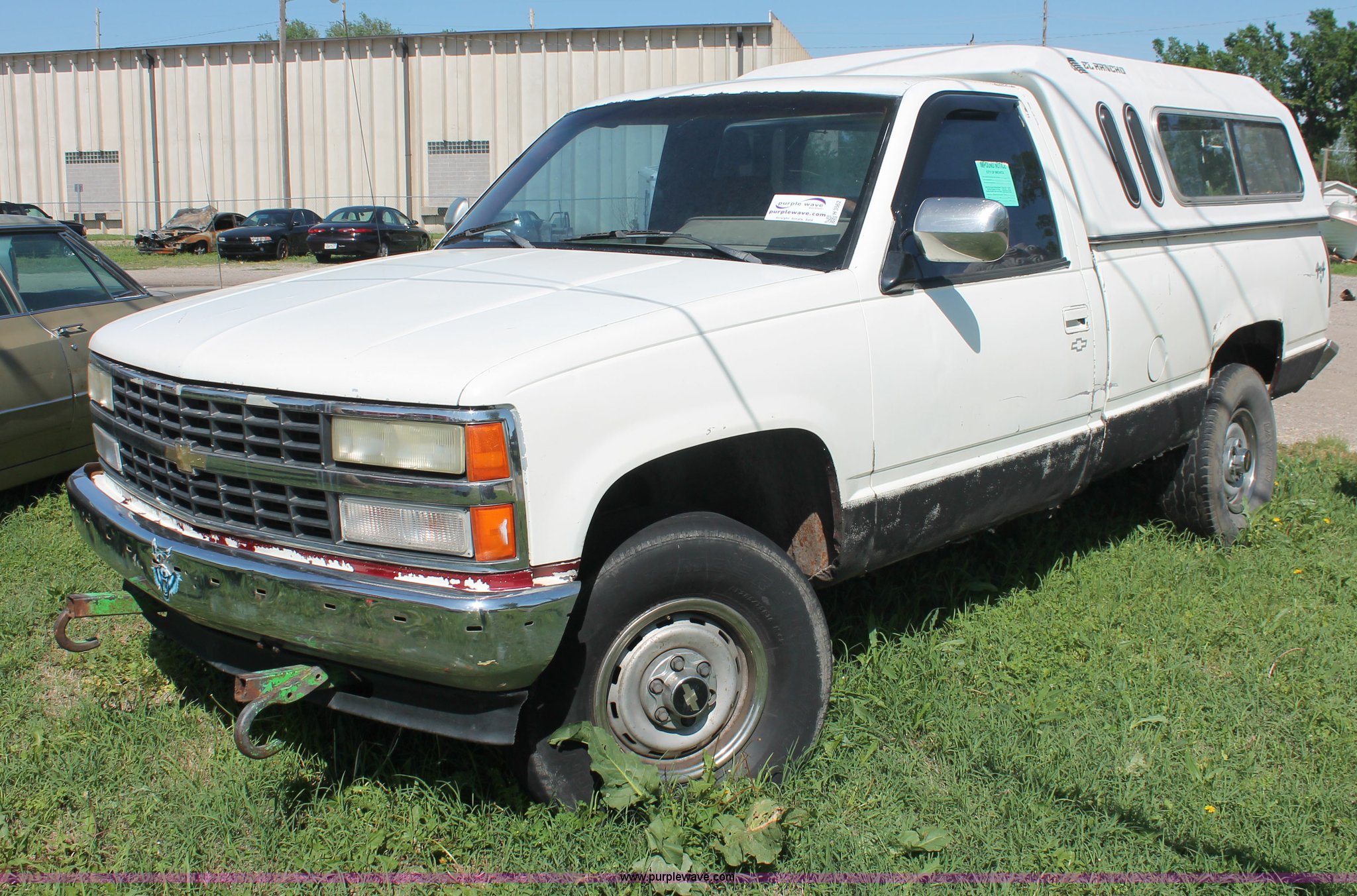 Purple Wave is selling a used Wrecked and Abandoned in Kansas. This item is a 1992 Chevrolet 1500 pickup truck with the following: Unknown miles on odometer, 5.0L V8 VIH 16V gas engine, Automatic transmission, Four wheel drive, 2" ball hitch, El Ranco topper, LT285/75R16 tires, Doors locked, Flat tire, Paint faded and chipped, Case# 13C17539
