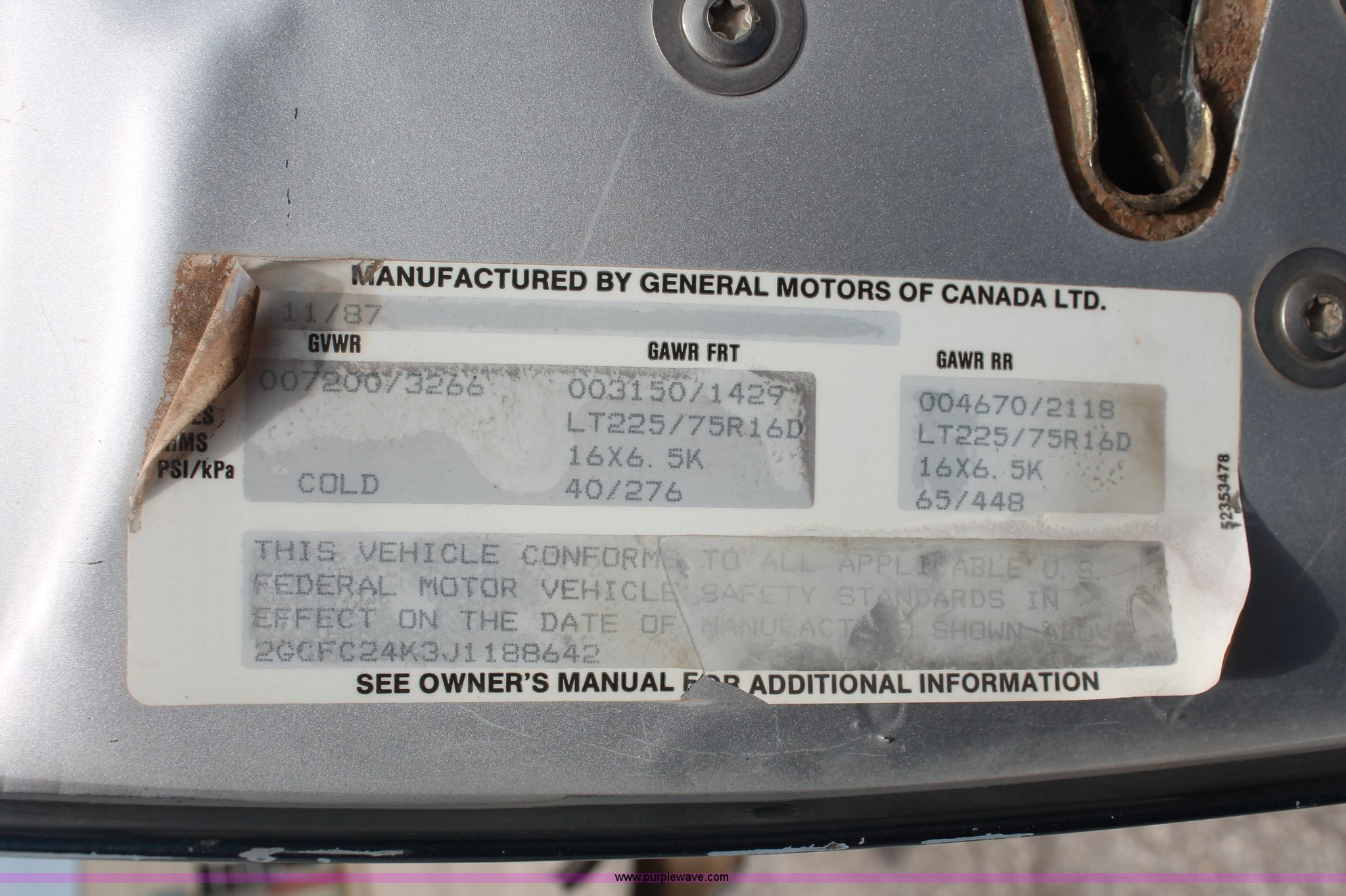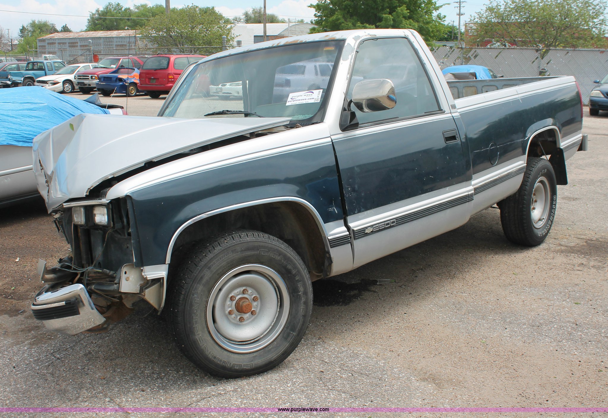 Purple Wave is selling a used Wrecked and Abandoned in Kansas. This item is a 1988 Chevrolet 2500 pickup truck with the following: 108,747 miles on odometer, 5.7L V8 OHV 16V gas engine, Automatic transmission, AM/FM, Keys, Stuck in ignition, 2" ball hitch, Receiver hitch, Trailer wiring, P255/70R16 tires, Interior/exterior cosmetic damage, Front end damage, Missing/cracked glass, Case# 13C21838