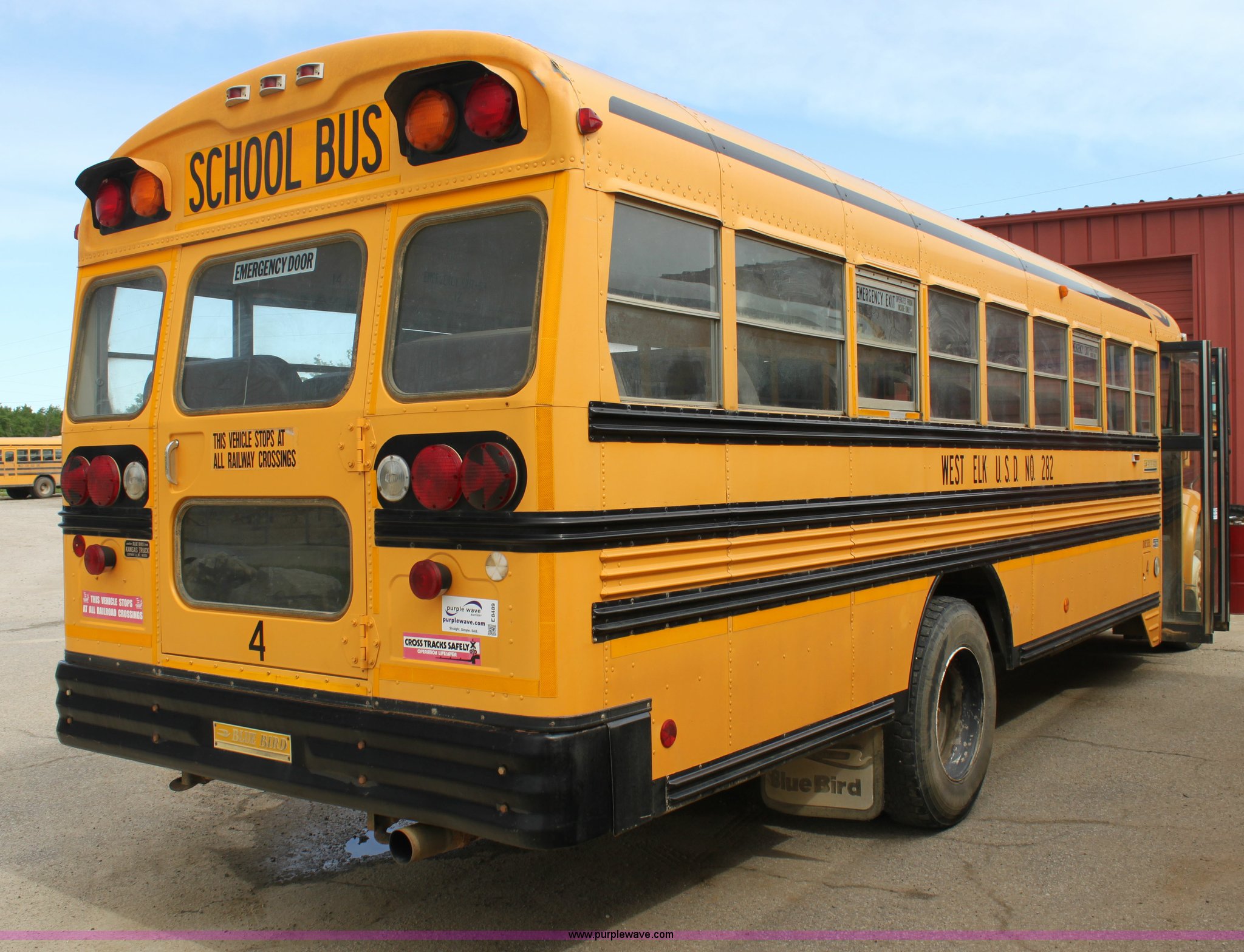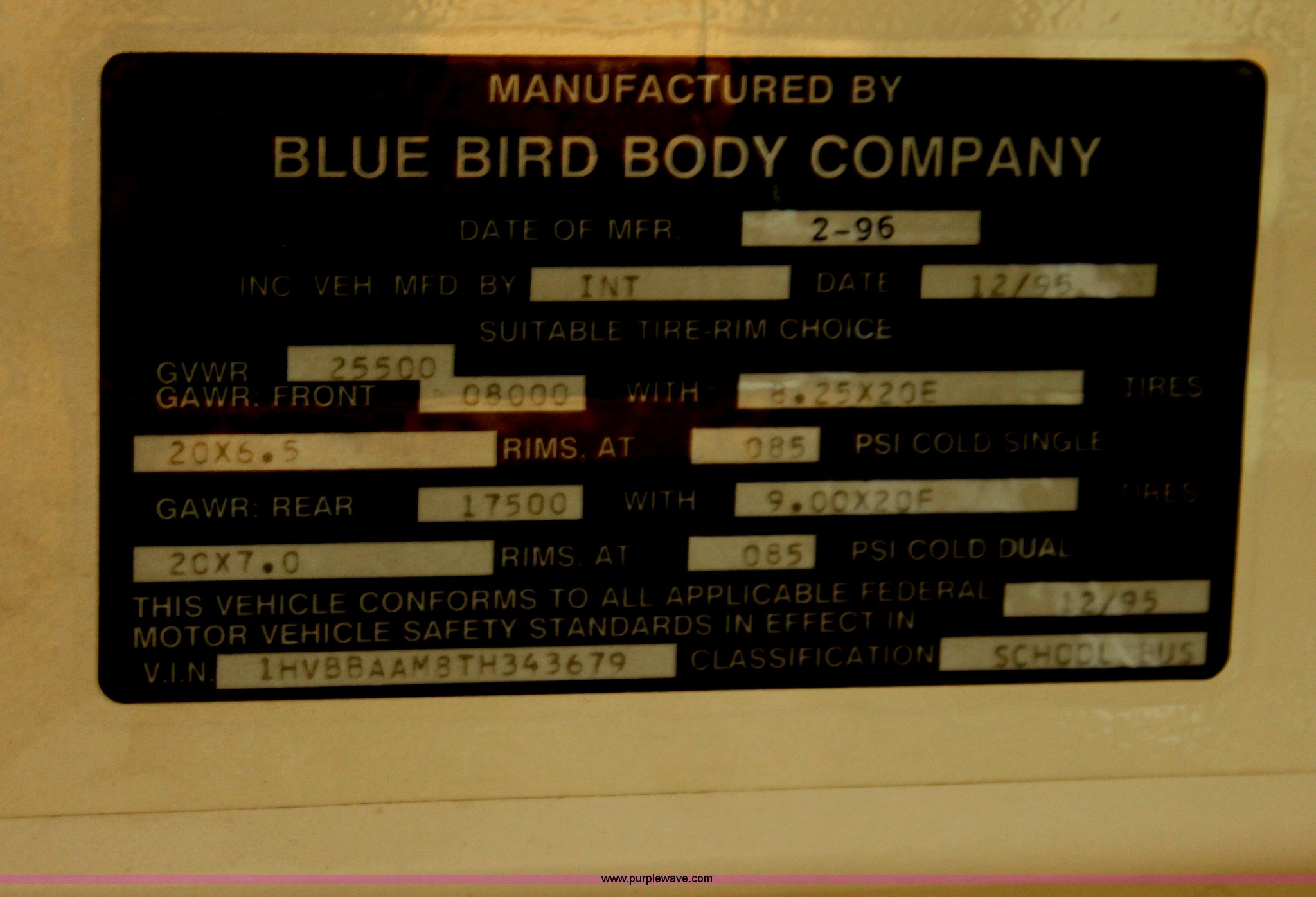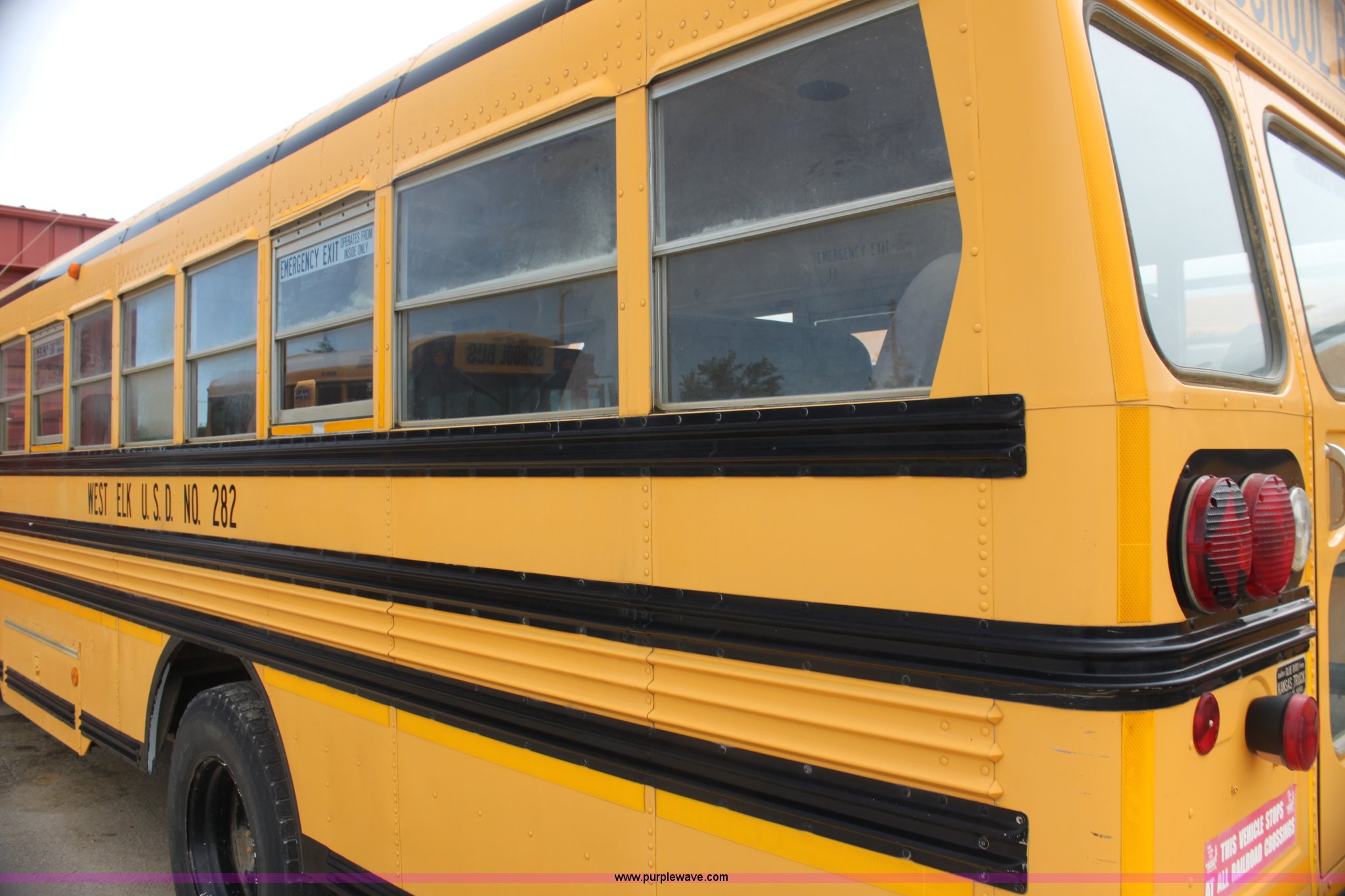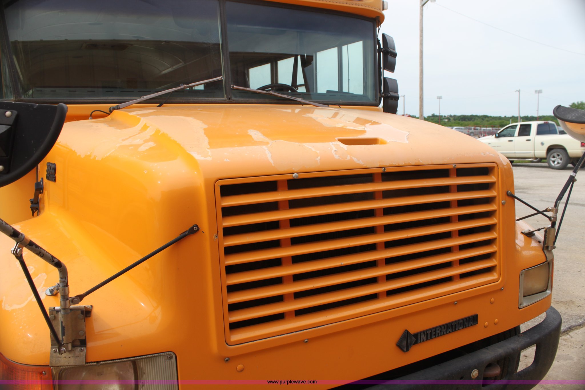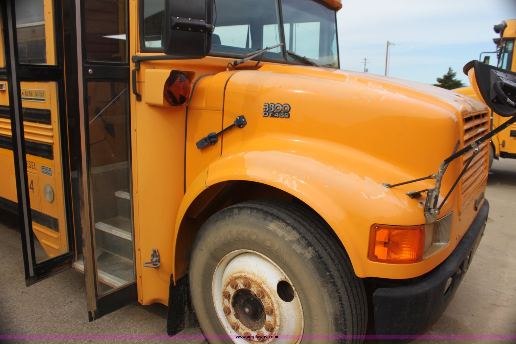 Purple Wave is selling a used Bus in Kansas. This item is a 1996 International 3800 Blue Bird school bus with the following: 210,999 miles on odometer, 48 passenger, International DT466 7.6L L6 diesel engine, Five speed manual transmission, 11R22.5 tires, Motorola radio not included