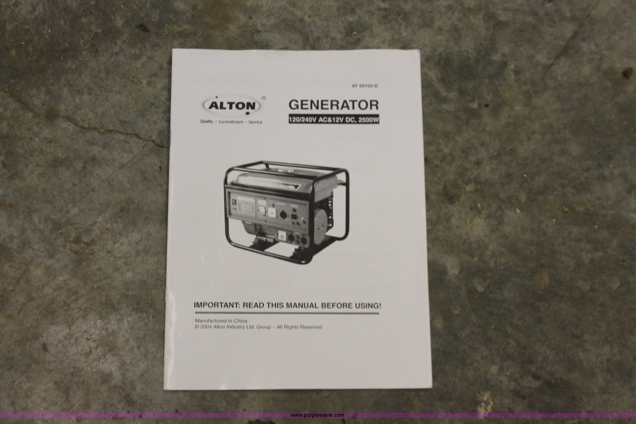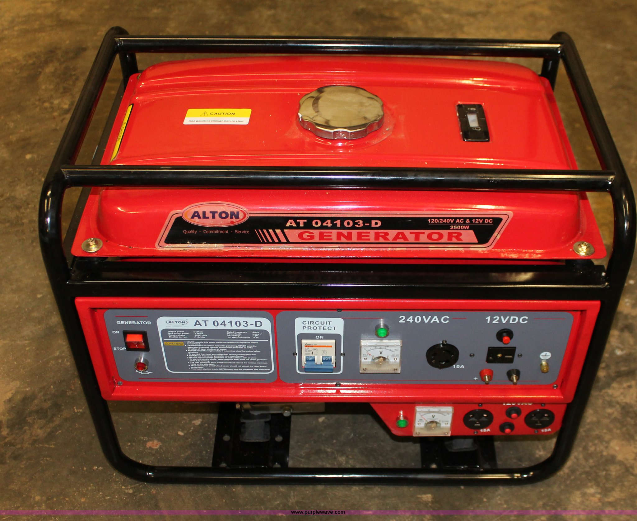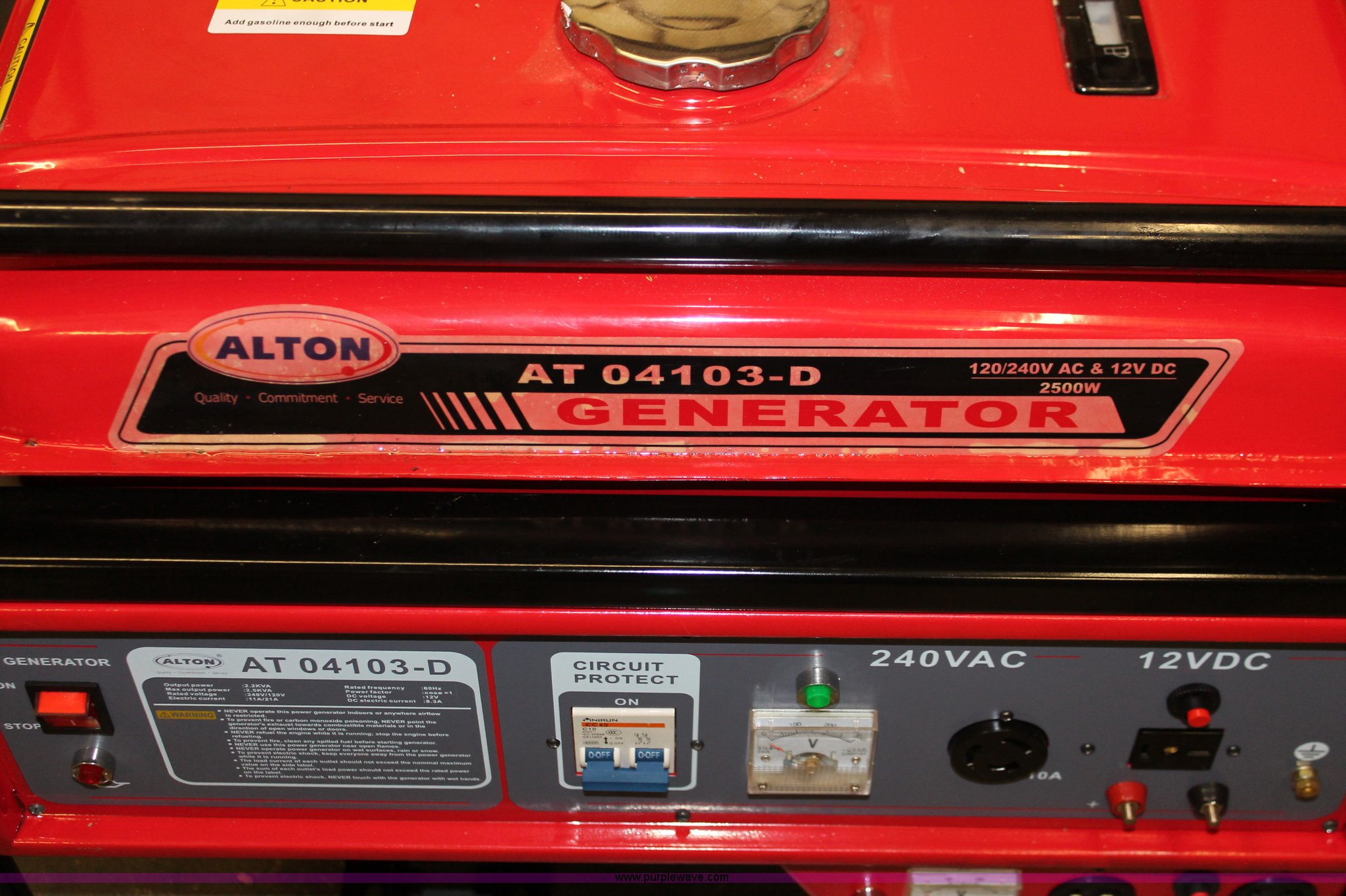 Alton AT04103-D portable generator has sold in Humboldt, Kansas for $176. Item H3663 sold on June 12th, 2013.