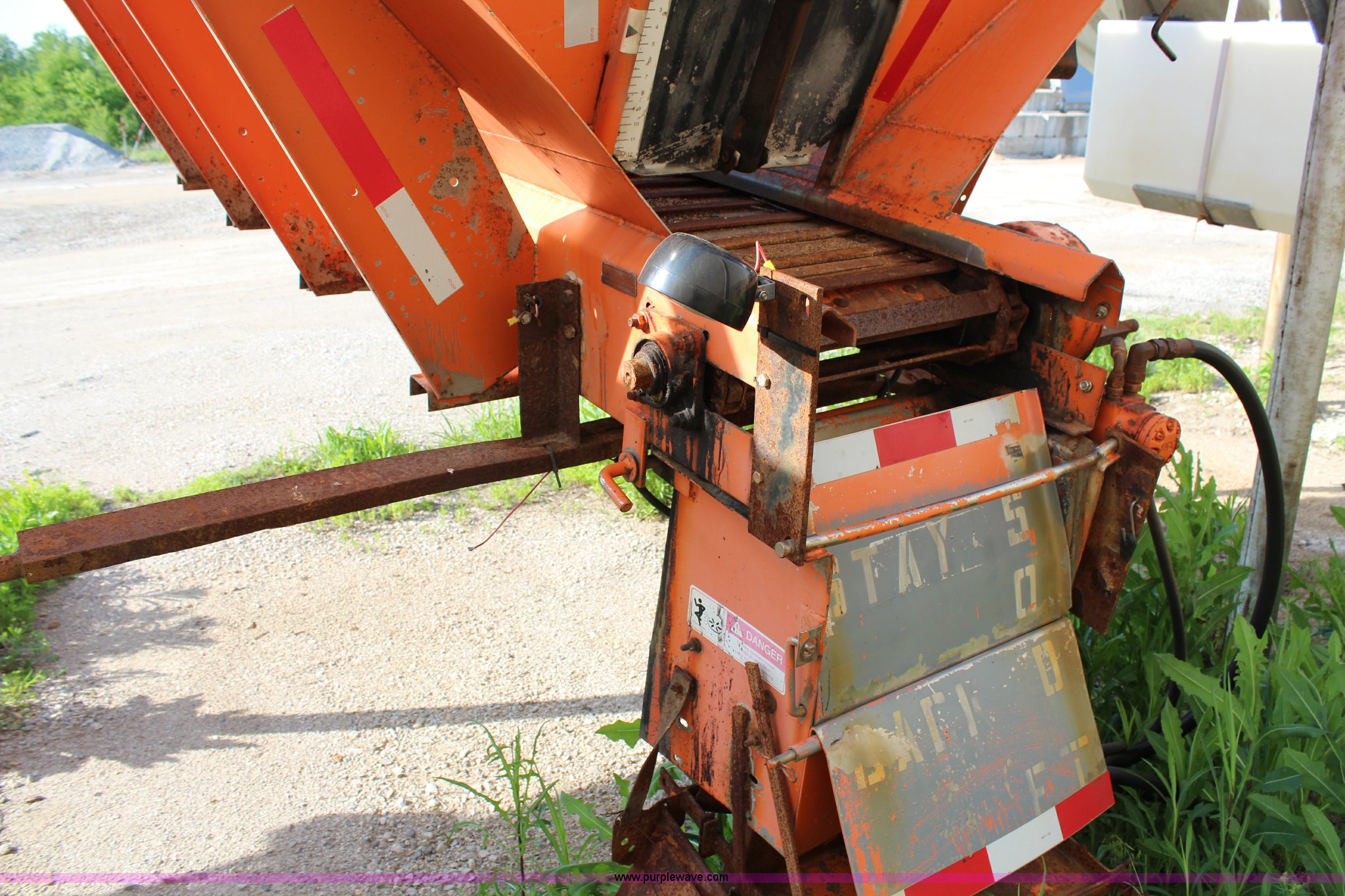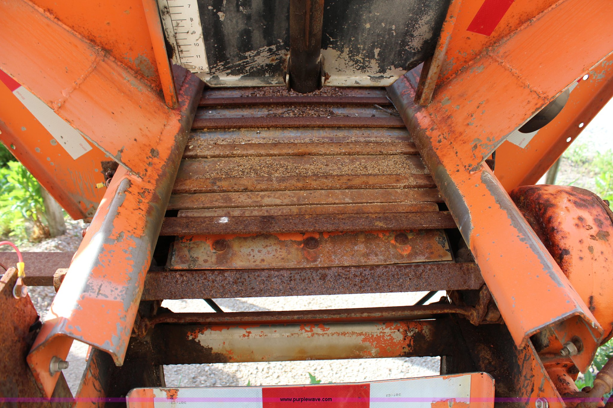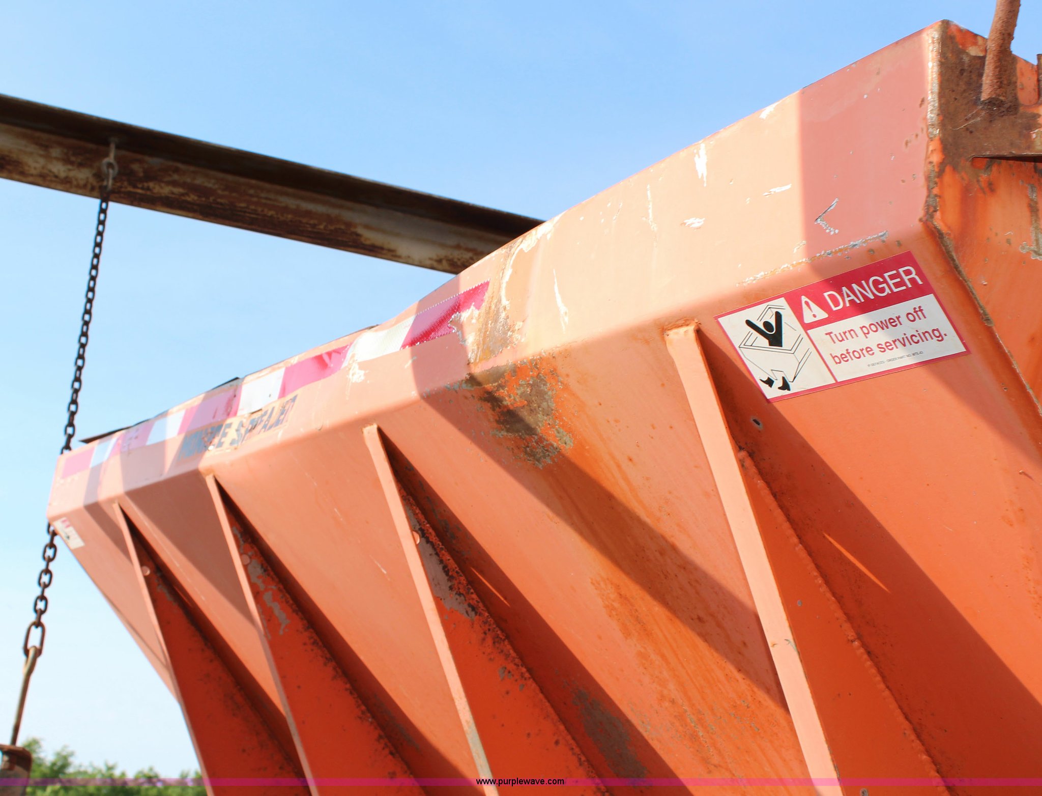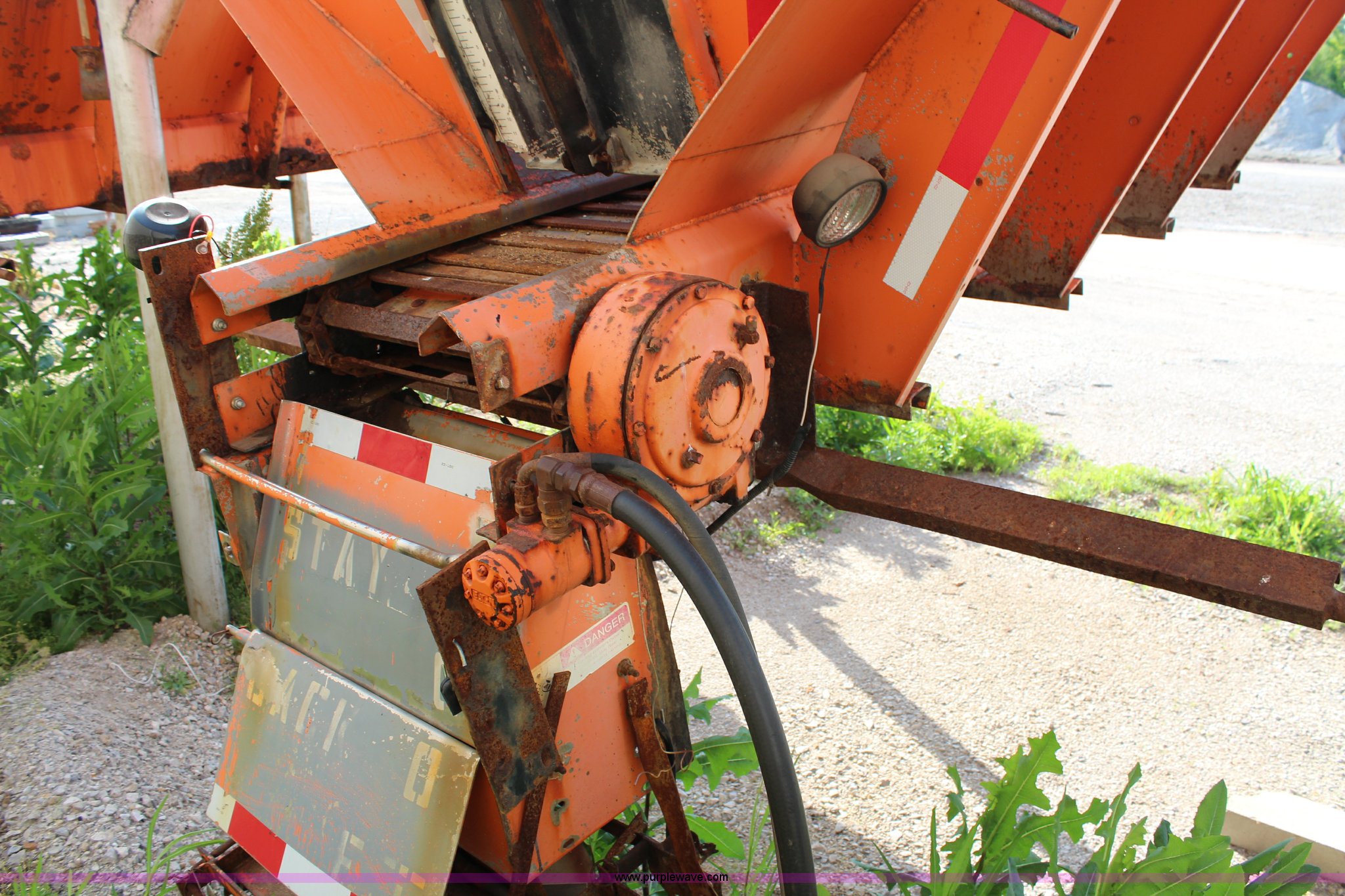 Purple Wave is selling a used Truck Part and Attach. in Kansas. This item is a Monroe stainless steel sand spreader with the following: 9'L, 22"W chain, Model 10884-50/4091007, Single spinner, Serial 95-17-6063