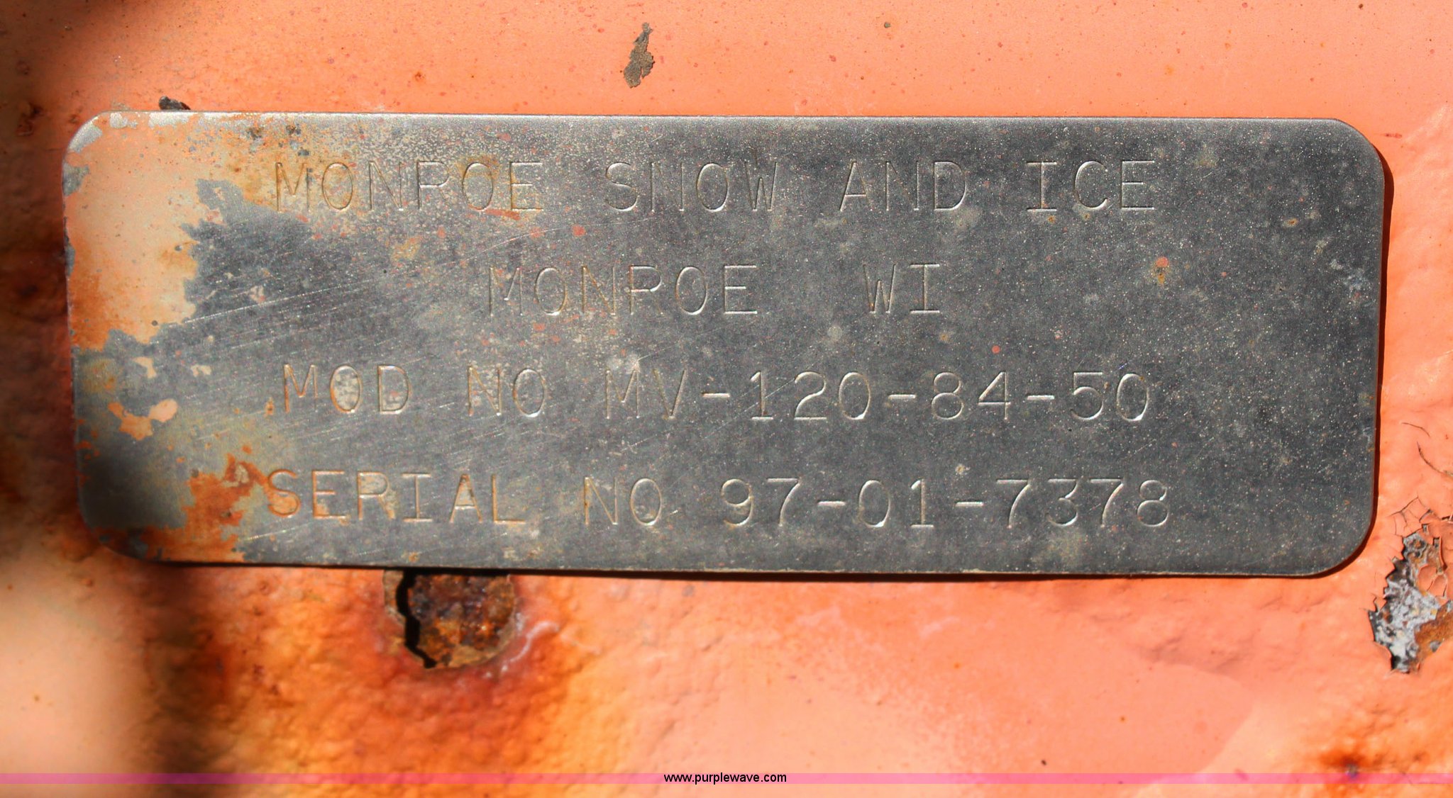 Purple Wave is selling a used Truck Part and Attach. in Kansas. This item is a Monroe sand spreader with the following: Model MV12084-50, 9'L, 22" chain, Single spinner, Rust, Serial 97-01-7378