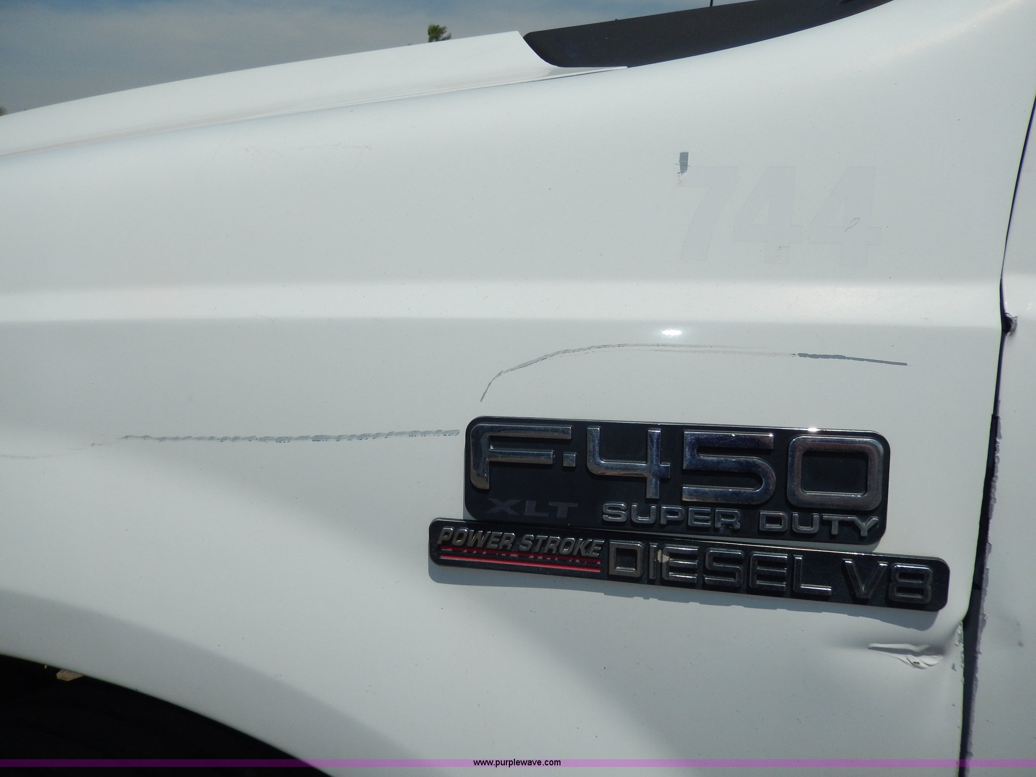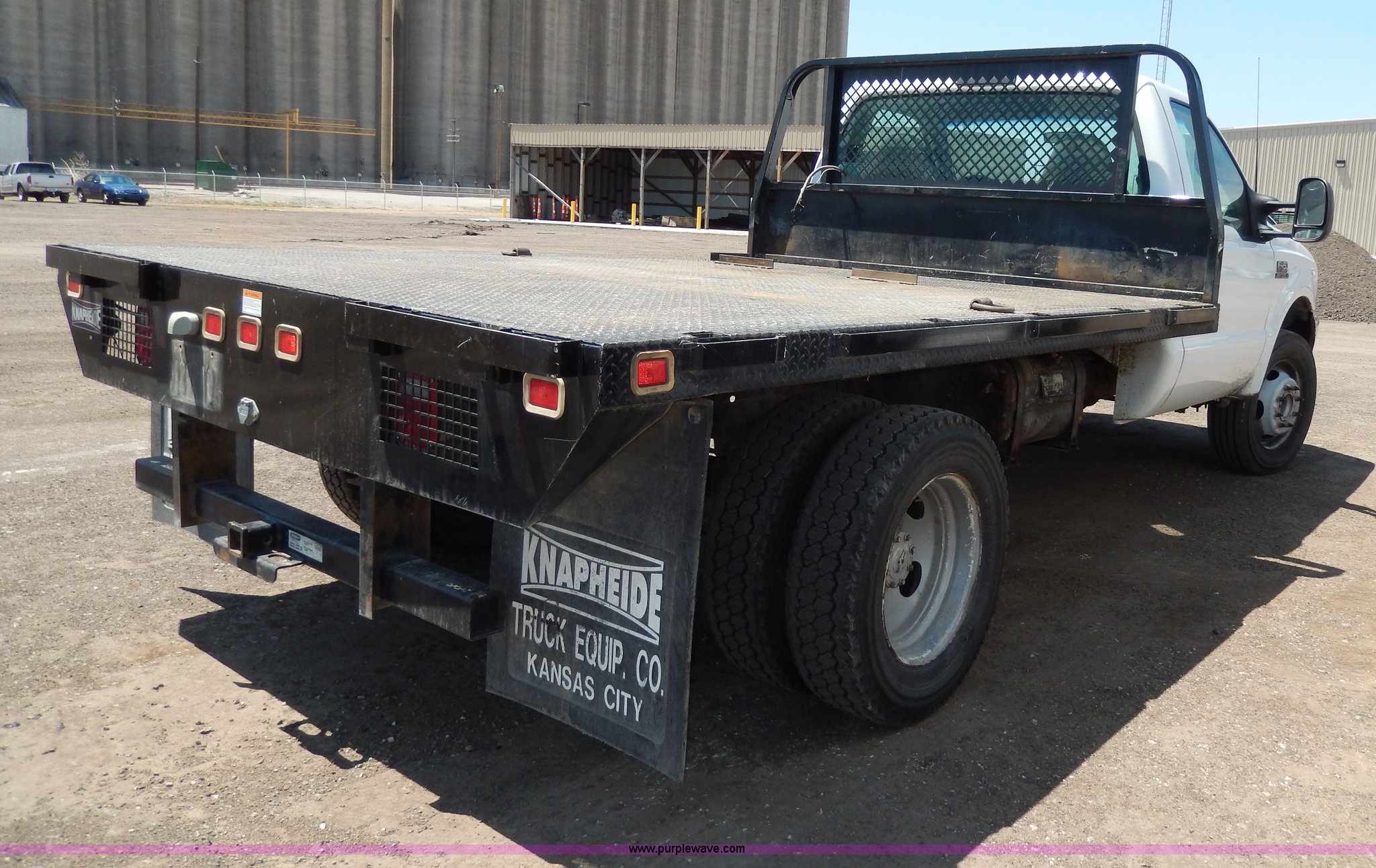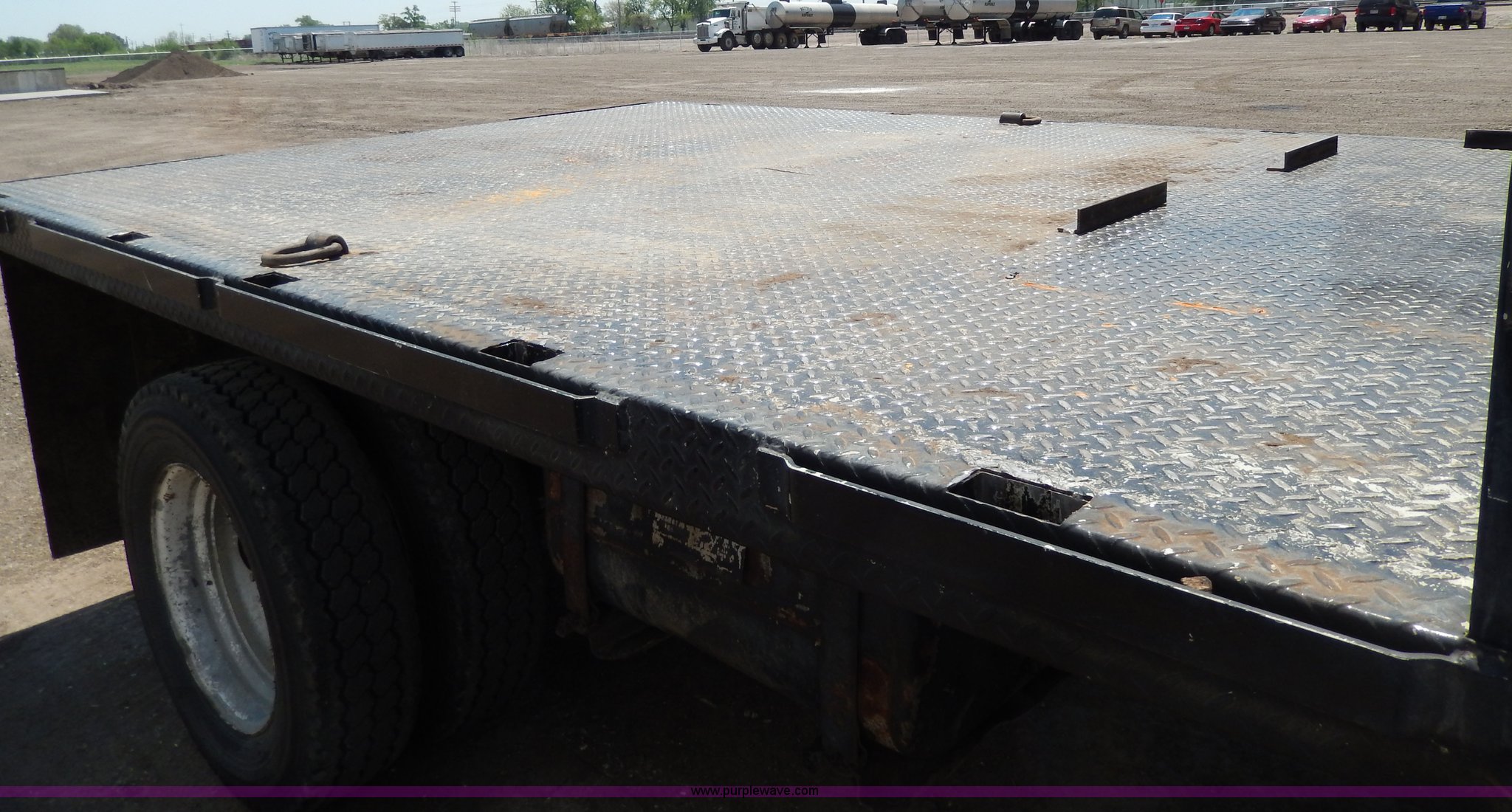 Purple Wave is selling a used Flat Bed Truck in Kansas. This item is a 2000 Ford F450 XLT Super Duty flatbed truck with the following: 200,518 miles on odometer, 7.3L V8 turbo diesel engine, Automatic transmission, AC and heat, Cruise, AM/FM, Power windows, locks, and mirrors, Cloth interior, 11'L x 8'W flatbed, Side and rear slots for rails, Front tow hooks, 23 gallon fuel tank, Receiver hitch, Trailer wiring, 245/70R19.5 tires, Interior/exterior cosmetic damage, Paint peeling, Dents and scratches, Driver's door damaged, Will not close properly