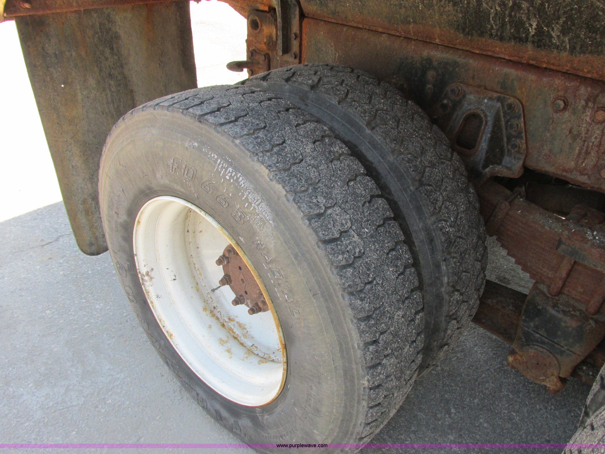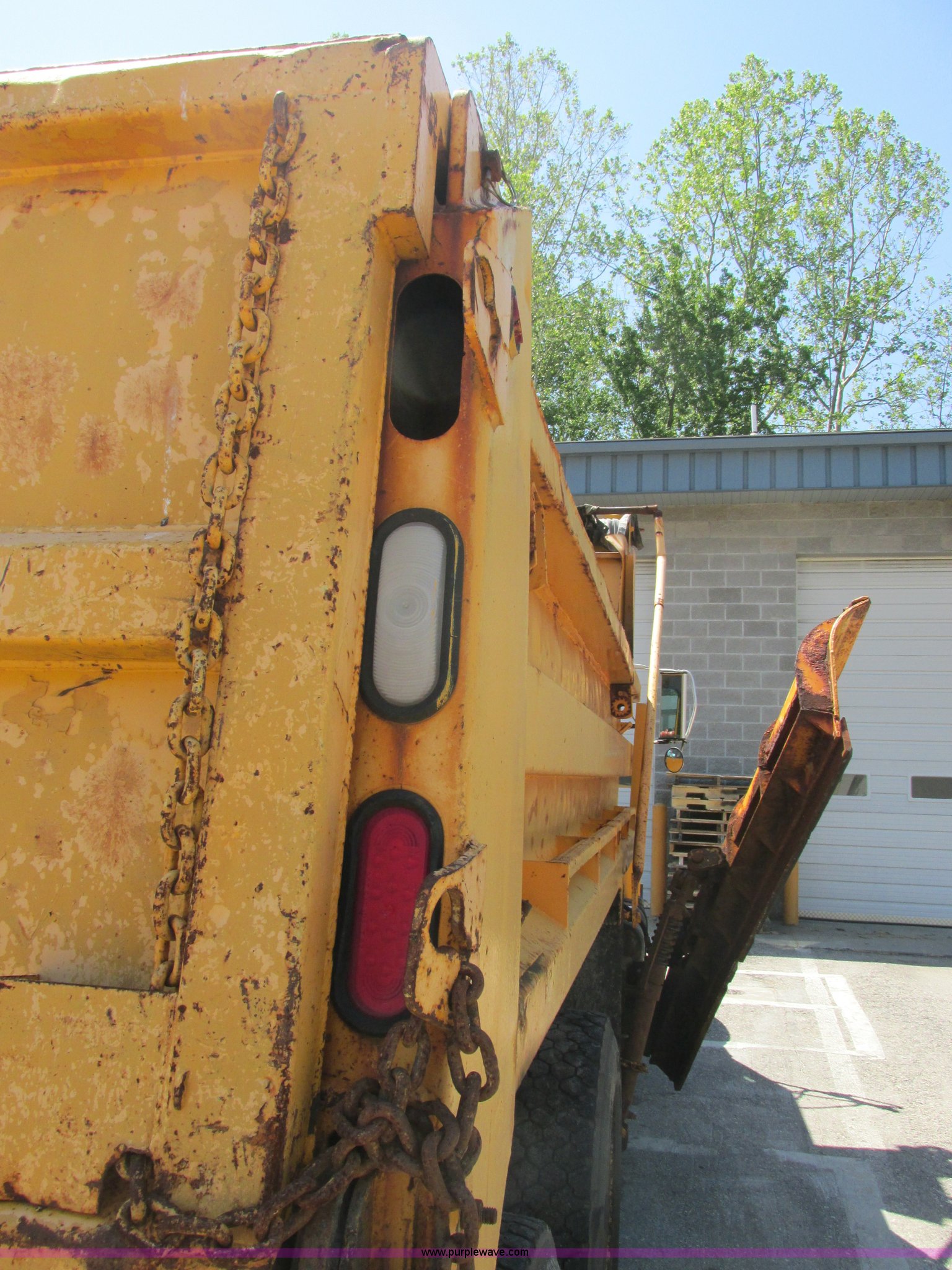 Purple Wave is selling a used Construction Dump Truck in Missouri. This item is a 1999 International 4900 dump truck with the following: 154,749 miles on odometer, 10,116 hours on meter, International DT530 8.7L L6 diesel engine, Push button automatic transmission, Differential lock, In-cab sprayer controls, Hydraulic front and side plow, Front plow light kit, Rear plumbed hydraulics, Electric rollover tarp, Integrated straps holders on bed, Air end gate, Trailer wiring, 65 gallon fuel tank, Spring over walking beam suspension, Air brakes, 206" wheelbase, 11R22.5 tires, Repaired ECM, Interior/exterior cosmetic damage, Hoist issues, Minor leaks, Rust, MoDOT ID 6055