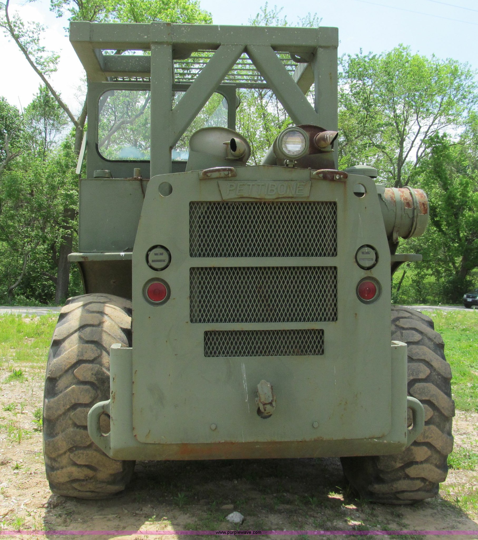 Take a look at this used Pettibone Rough Terrain military forklift being sold on June 13th, 2013 in the SOLD! June 13 Construction Equipment Auction made by Pettibone. Take a look at all of the item information below or take a look at similar auctions for Cushion Tire or Pneumatic Forklift.