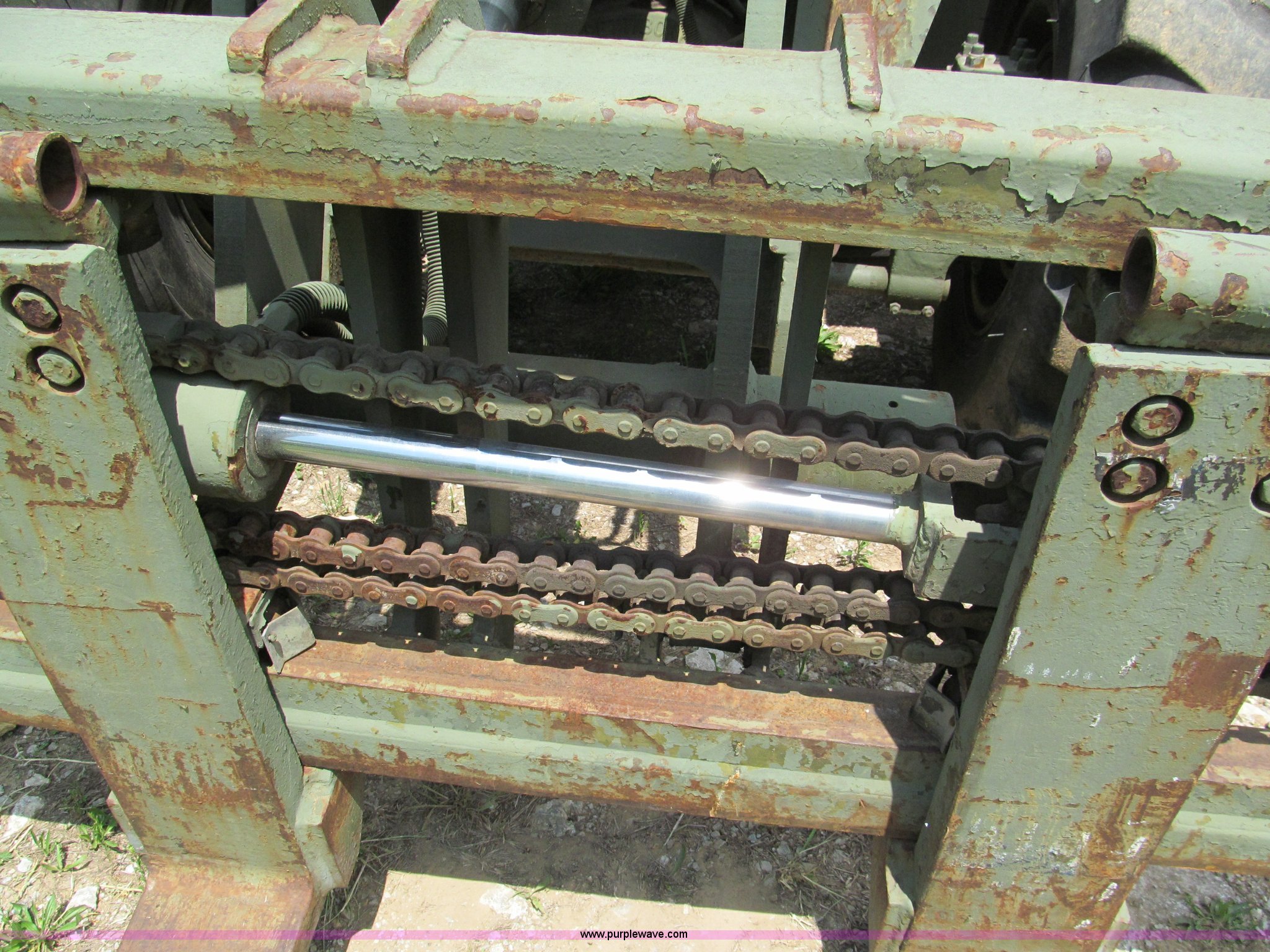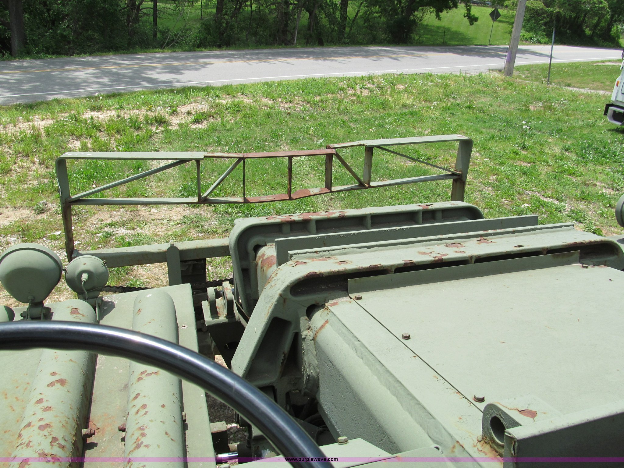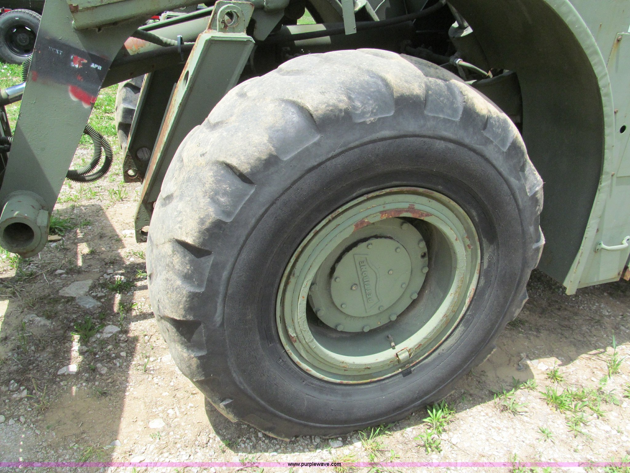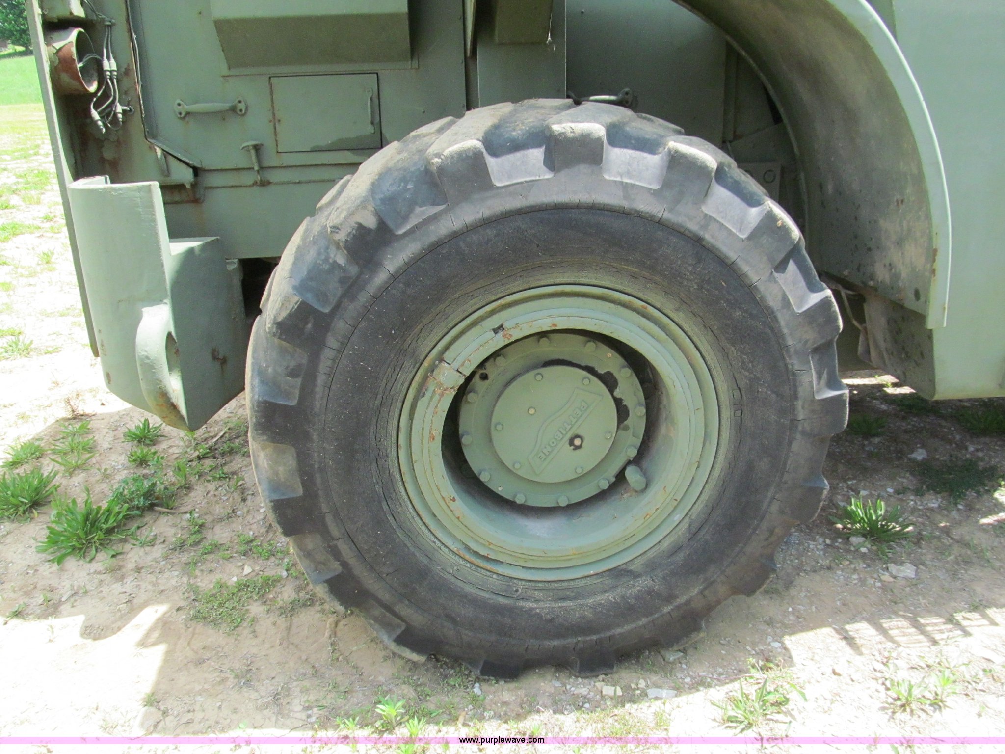 Purple Wave is selling a used Cushion Tire or Pneumatic Forklift in Missouri. This item is a Pettibone Rough Terrain military forklift with the following: 3,453 hours on meter, Model A3520-1, Detroit Diesel 671 engine, High, Mid, and low range transmission, Four wheel drive, ROPS, Three way steering, Tilt, 60"L x 8"W forks, 105" carriage, PowerFork slide, 110 gallon fuel tank, 38 gallon hydraulic oil tank, 20.5-25 tires, 33,500 lbs. base operating weight, GVWR 43,500 lbs, Serial 880