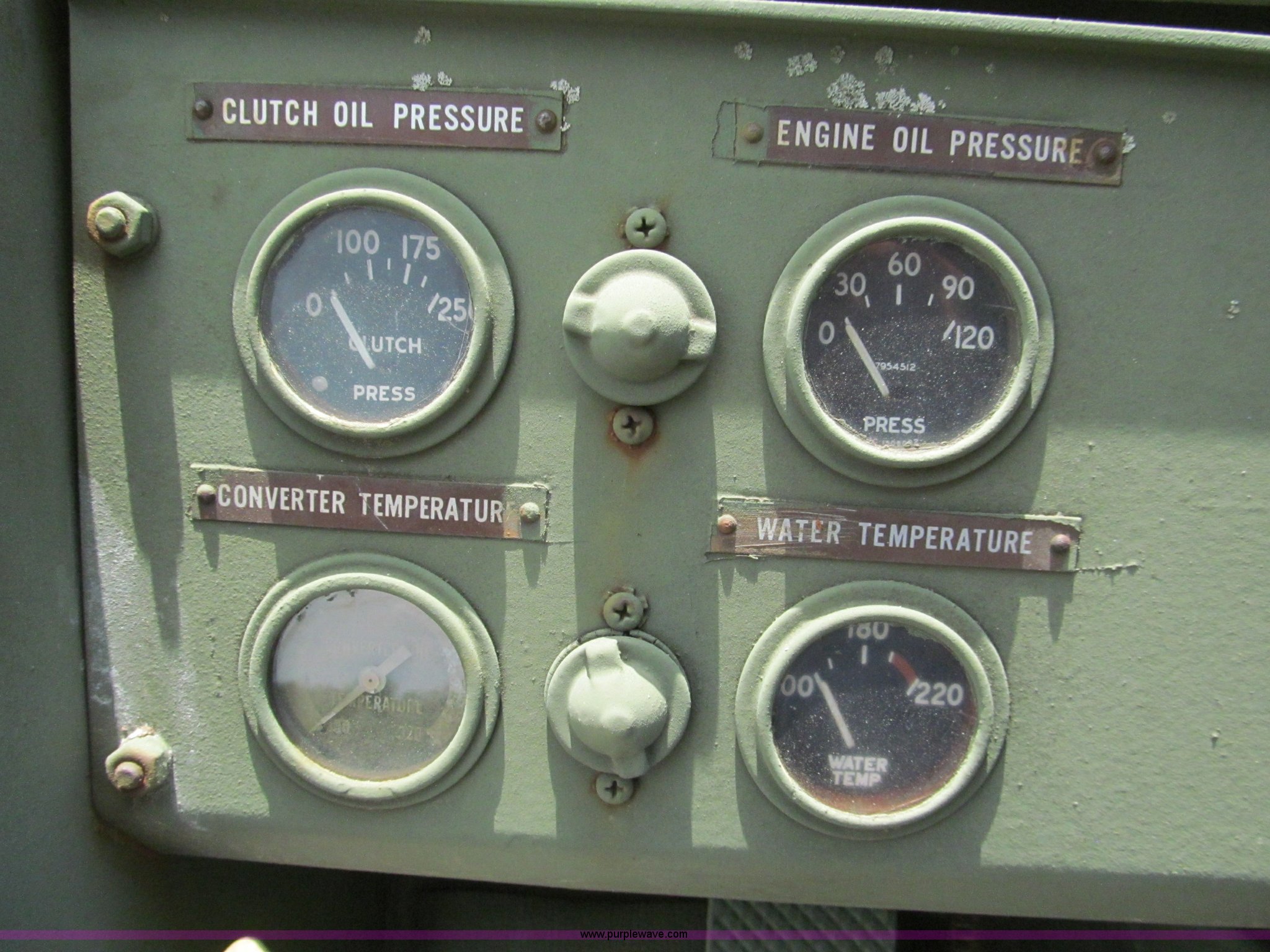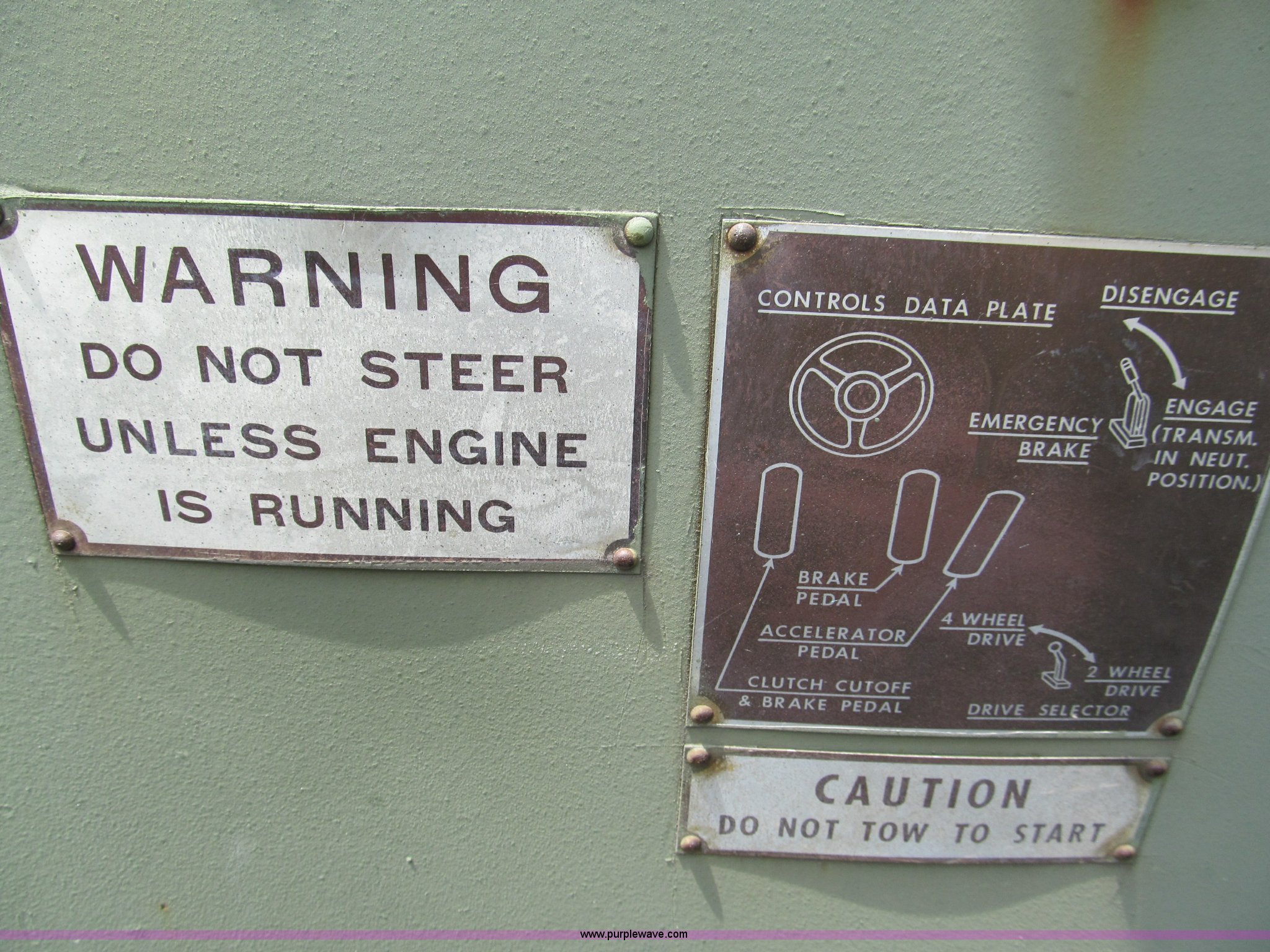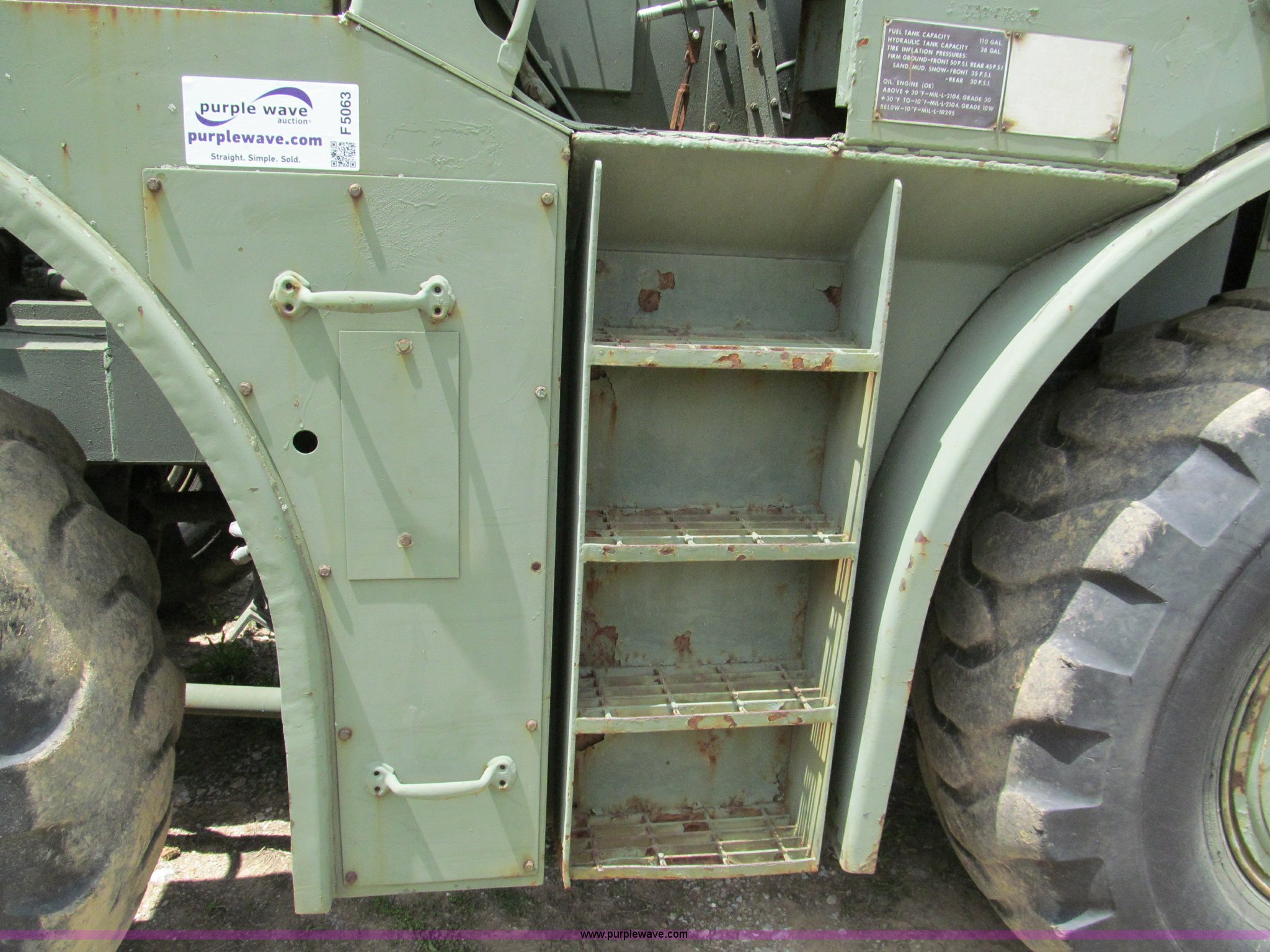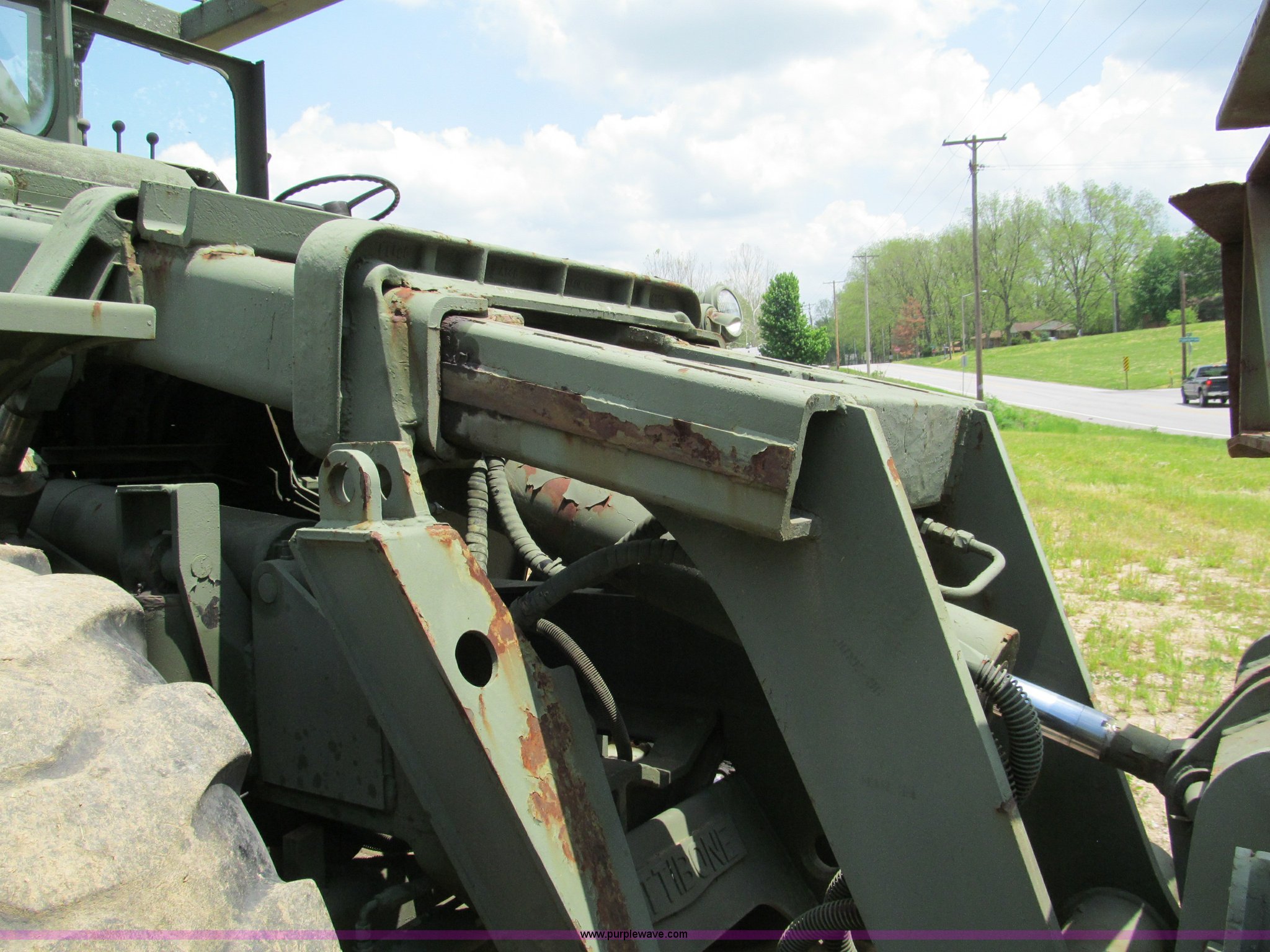 Purple Wave is selling a used Cushion Tire or Pneumatic Forklift in Missouri. This item is a Pettibone Rough Terrain military forklift with the following: 3,453 hours on meter, Model A3520-1, Detroit Diesel 671 engine, High, Mid, and low range transmission, Four wheel drive, ROPS, Three way steering, Tilt, 60"L x 8"W forks, 105" carriage, PowerFork slide, 110 gallon fuel tank, 38 gallon hydraulic oil tank, 20.5-25 tires, 33,500 lbs. base operating weight, GVWR 43,500 lbs, Serial 880