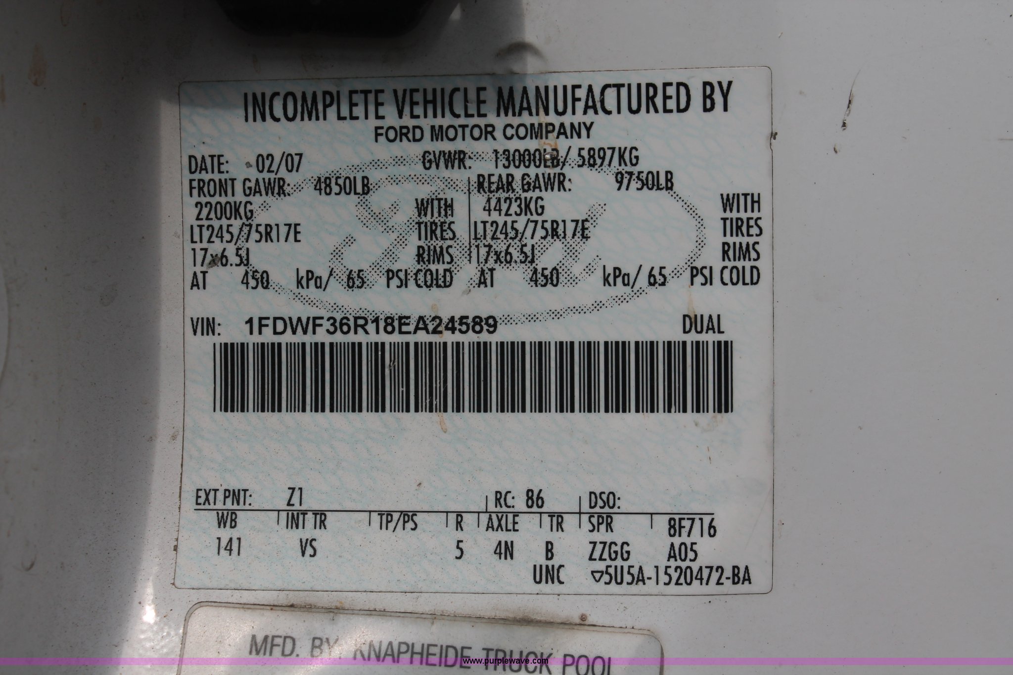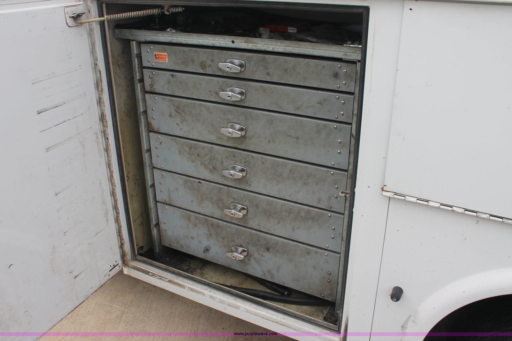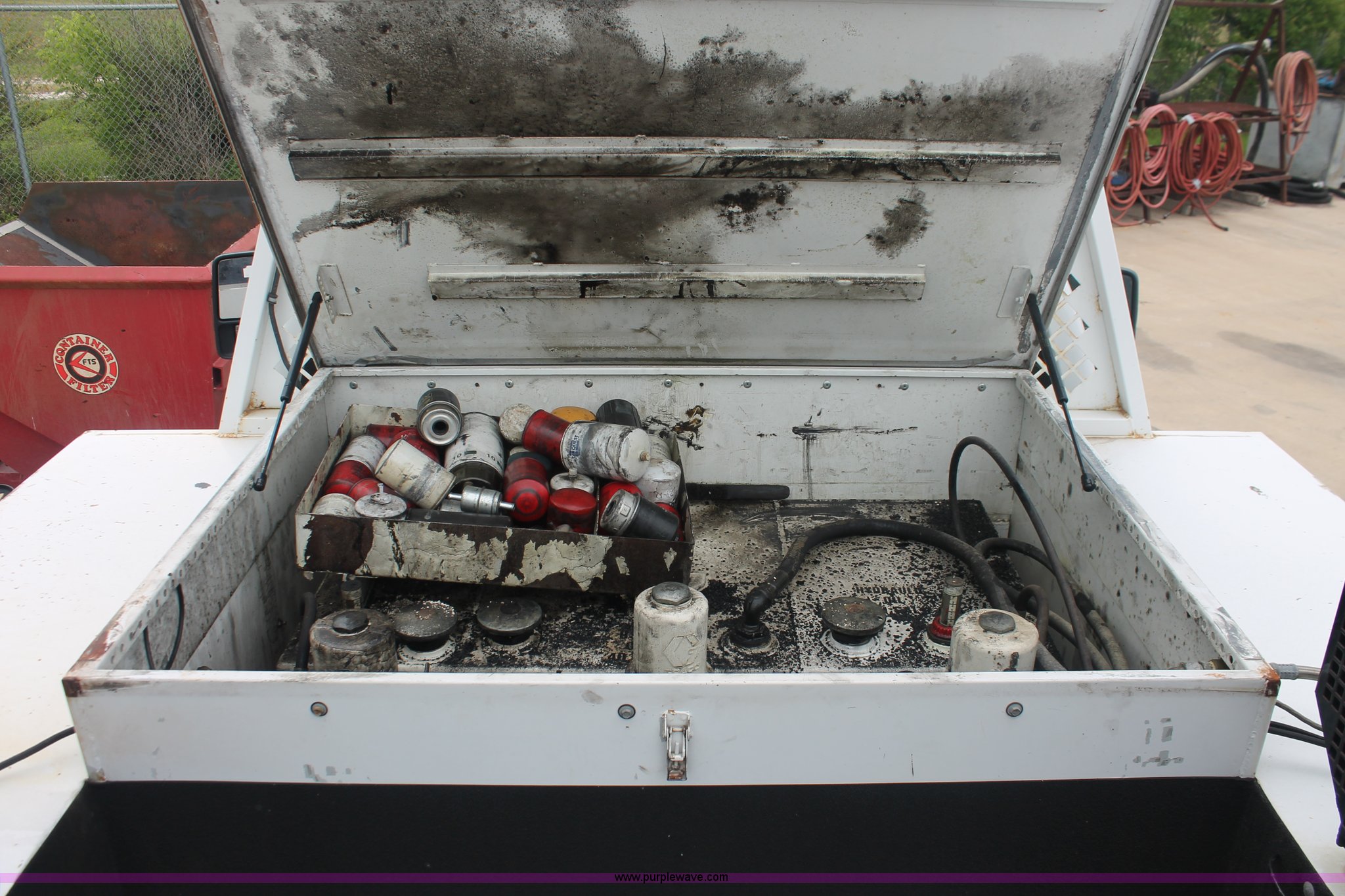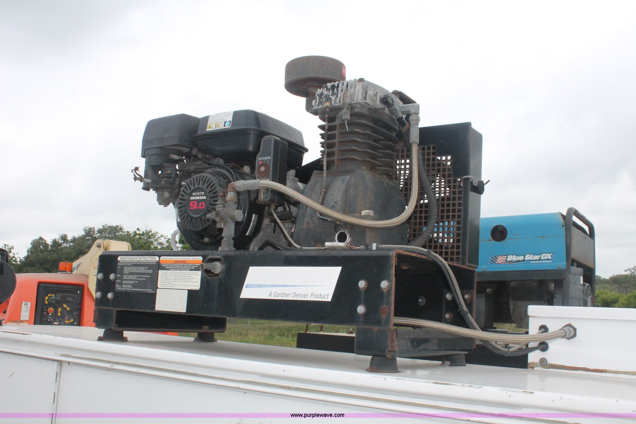 Purple Wave is selling a used Service Truck in Texas. This item is a 2008 Ford F350 XL Super Duty service truck with the following: 115,842 miles on odometer, 6.4L V8 OHV 32V turbo diesel engine, Engine is bad, Automatic transmission, AC and heat, Tilt, Cruise, AM/FM/CD, Manual windows and locks, Vinyl interior, Brake controller, Auxiliary control panel, Knapheide 9' service service, (6) storage compartments, American Eagle toolbox, Internal shelving, Spray-in bed liner, Miller Blue Star DX185 welder/generator, 3 hours on meter, Kohler Welder 12.75 HP gas engine, 6,000 watt, (4) 120V outlets, 240V outlet, CC/DC welder, Weld output control, Champion air compressor, Honda GX270 9.0 HP gas engine, Hose, Hose reel, Graco oil, lube, and recovery system, Motor, hydraulic, waste, and grease reservoirs, Graco Fire-Ball pumps, Reelcraft nozzle, hose, and reel assemblies,, Backup alarm, Amber beacon, Running boards, Receiver hitch, Trailer wiring, LT245/75R17 tires, Engine is bad, EIN 709519RA