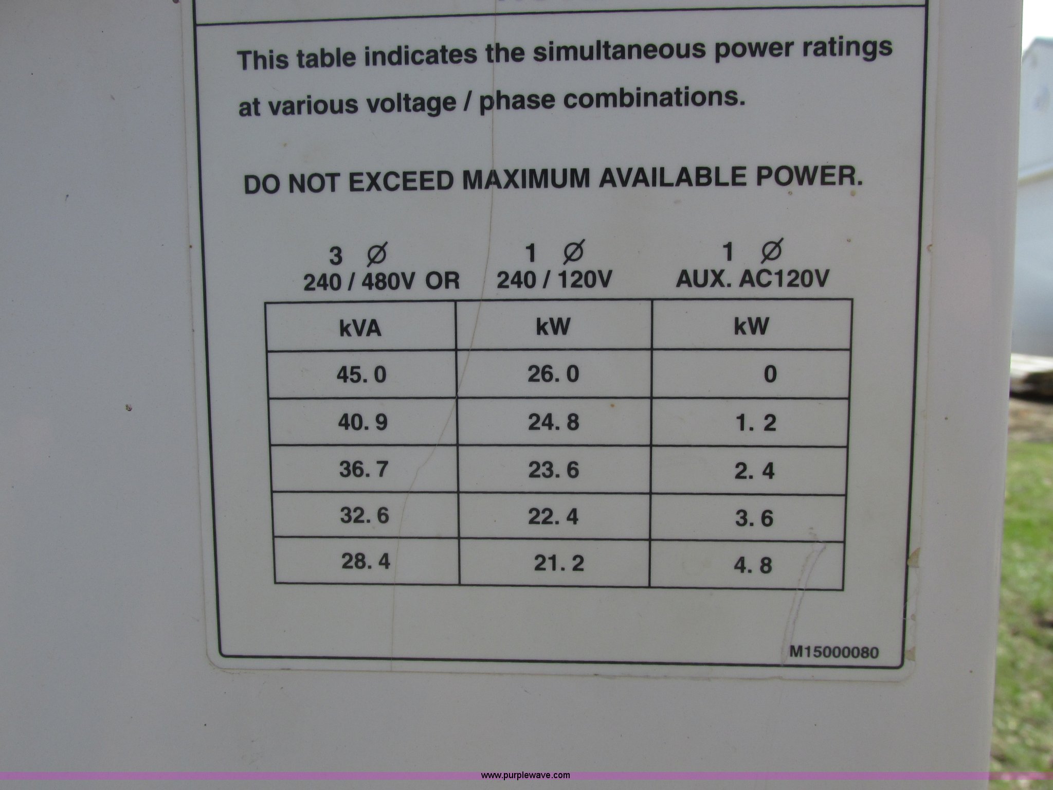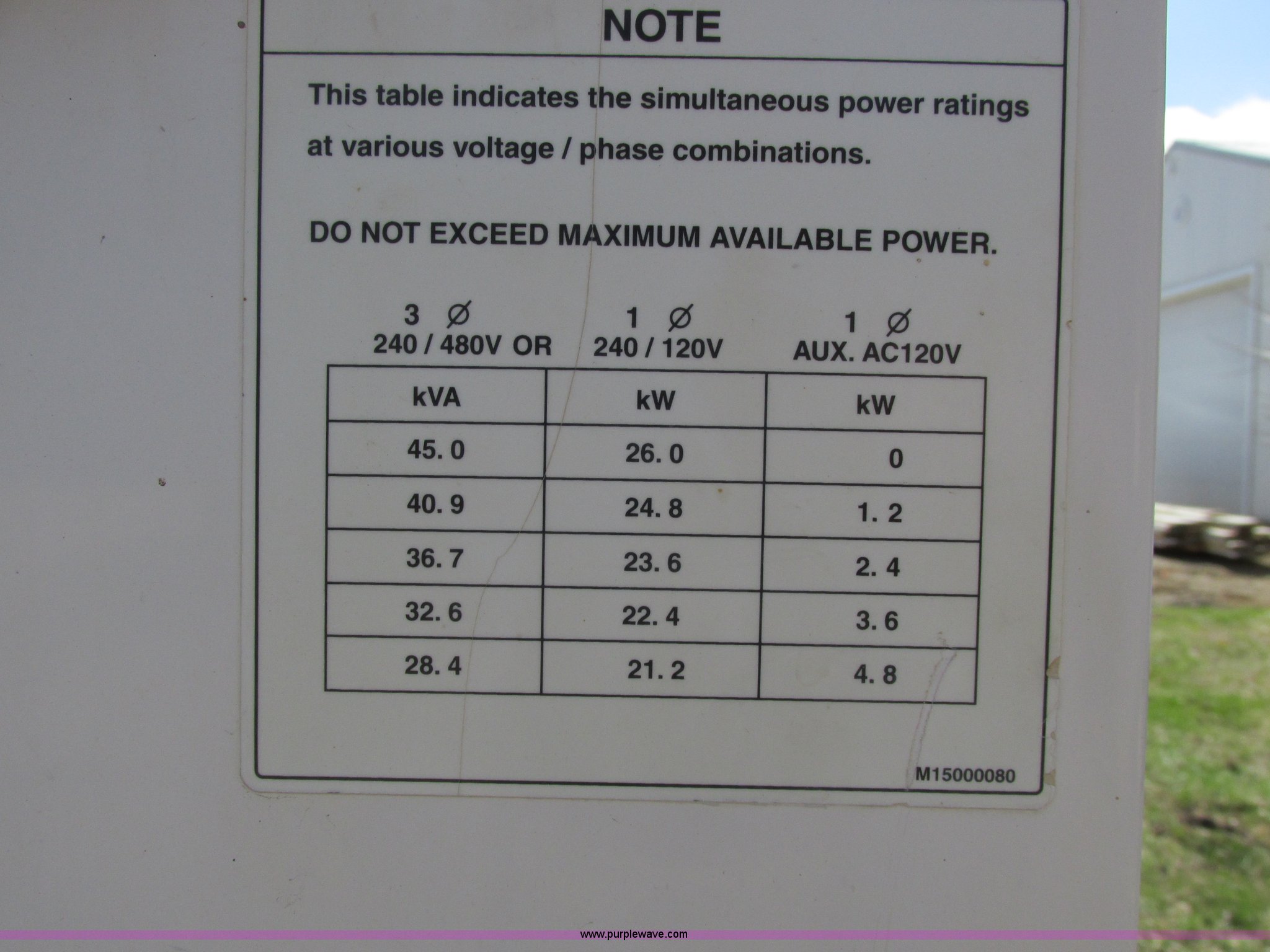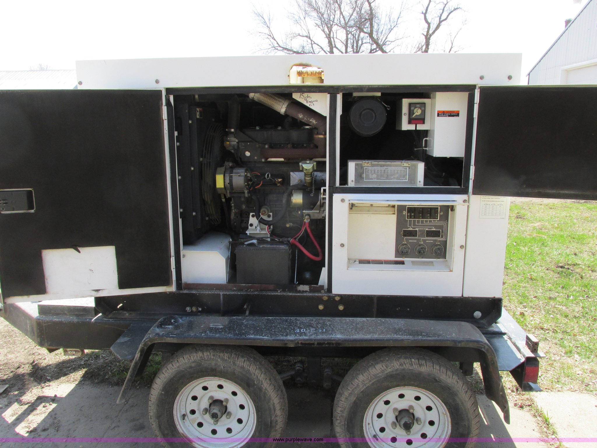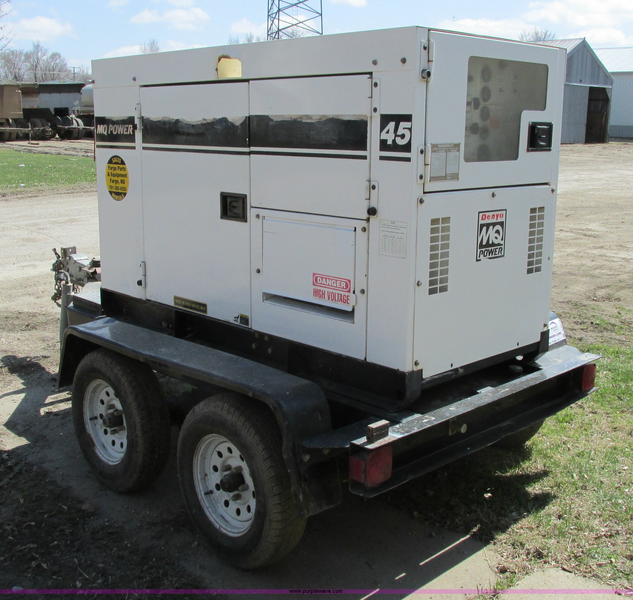 Purple Wave is selling a used Generator Set in Minnesota. This item is a MQ Whisperwatt generator with the following: Model DCA45551U11, 13,148 hours on meter, 45 kVA three phase output, 26 kVA single phase output, Isuzu B48G1 diesel engine, 55 HP, Tandem axle trailer, 6,000 lb capacity, 2" hitch, ST175/80D13 tires, Serial 7200680