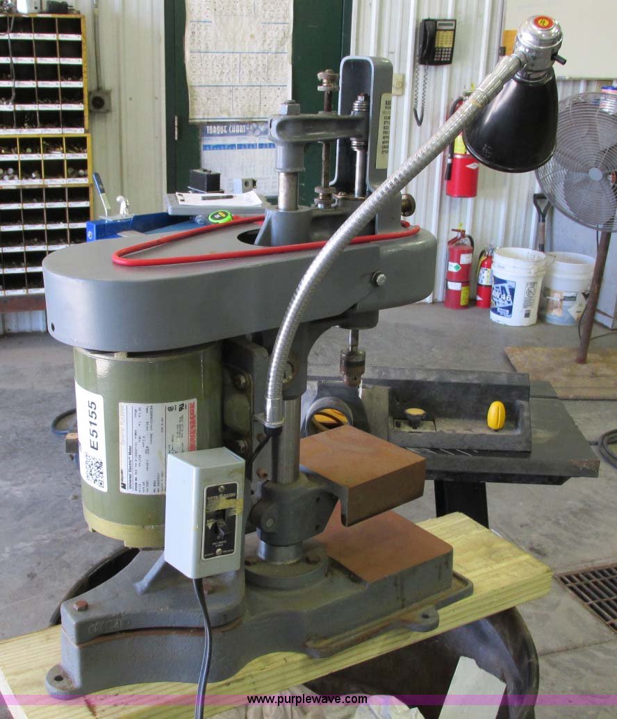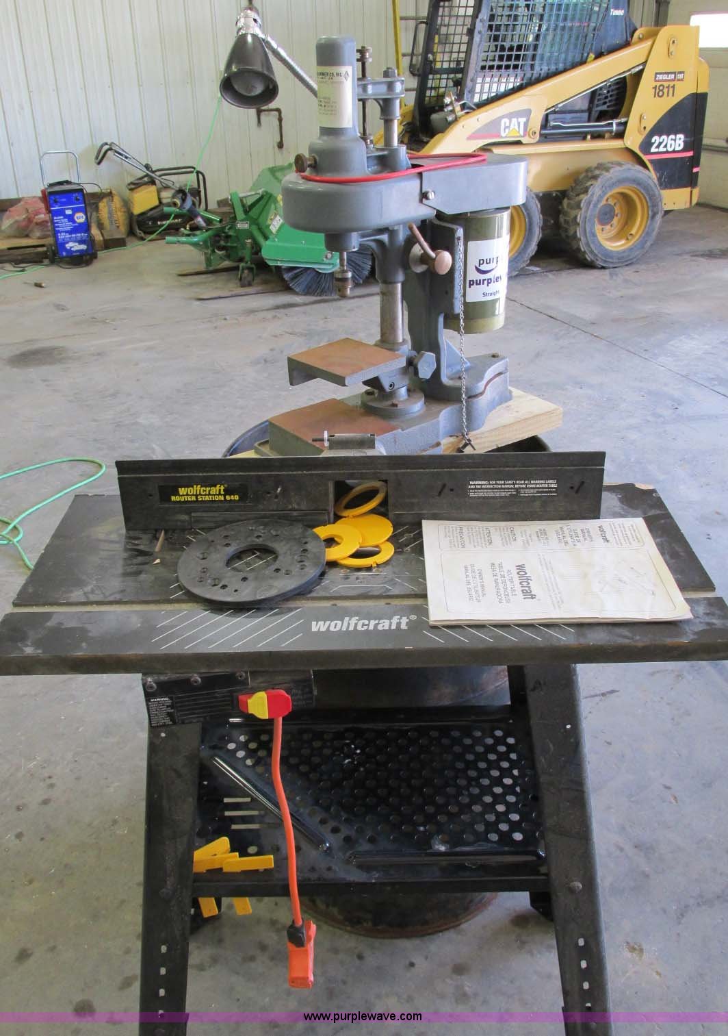 Purple Wave is selling a used Tools in Minnesota. This item is a High speed electric drilling machine with Wolf Craft 640 router station with the following: Drilling machine, Class 10, Style A, Model R53, Serial 33168-1, Universal electric motor, 1/4 HP, Stock# 902, Wired with GE switch, Work light, Serial 31DA66219A, Broken belt, Router table, Manual, Surge outlet, Router not included