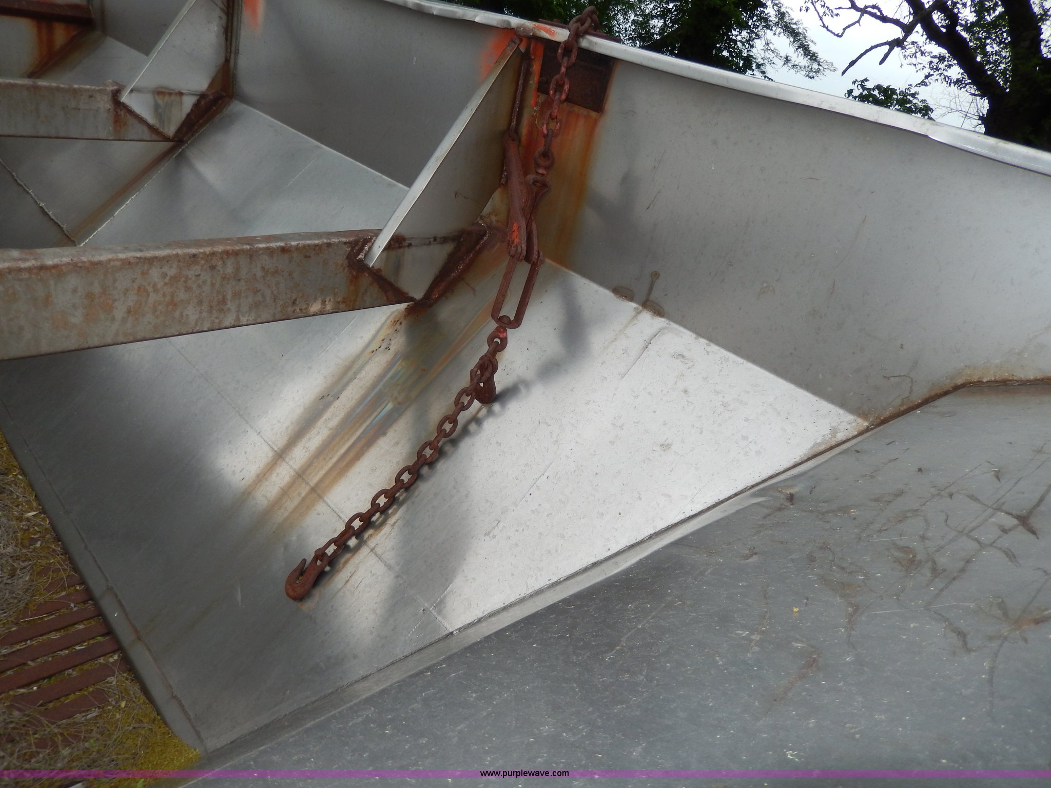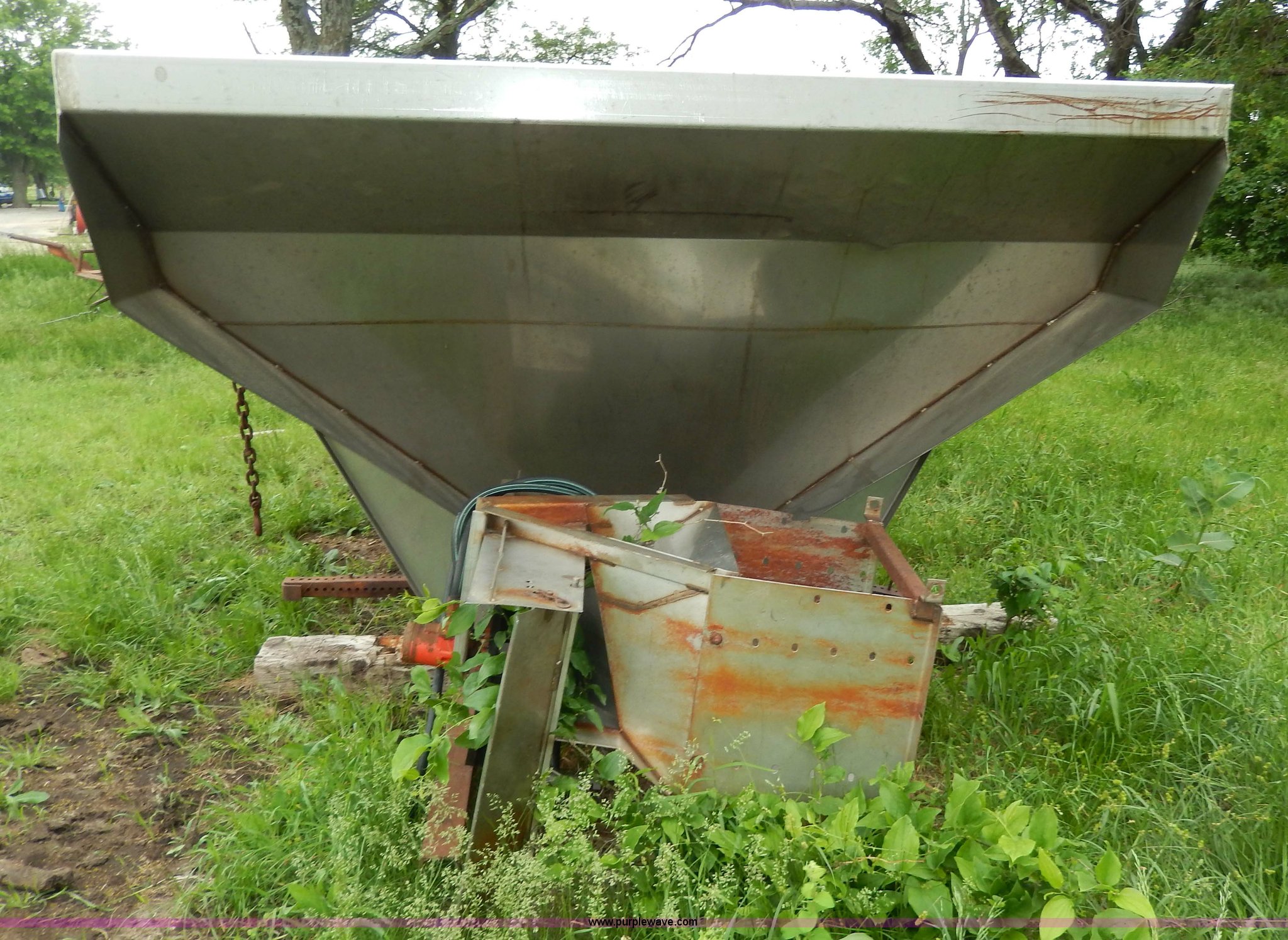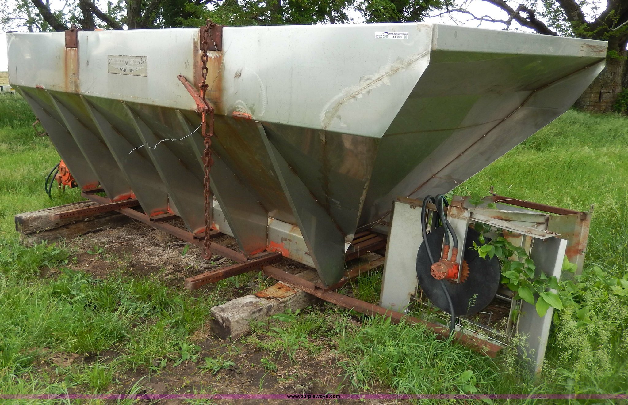 Swenson stainless steel spreader. 14' x 7' x 5', Side tie down chains, Unknown operating condition. Shipping quotes available. 5852 E 125th St. Overbrook, KS 66524