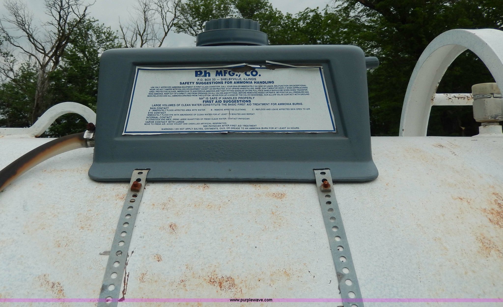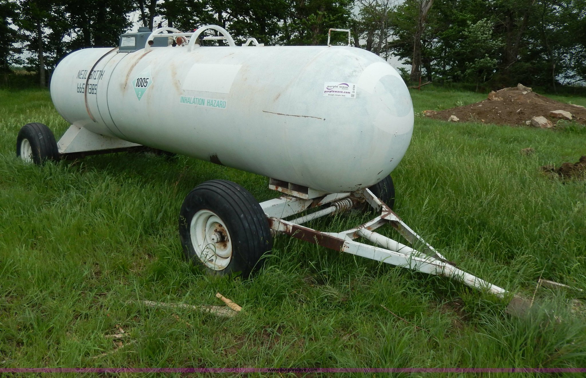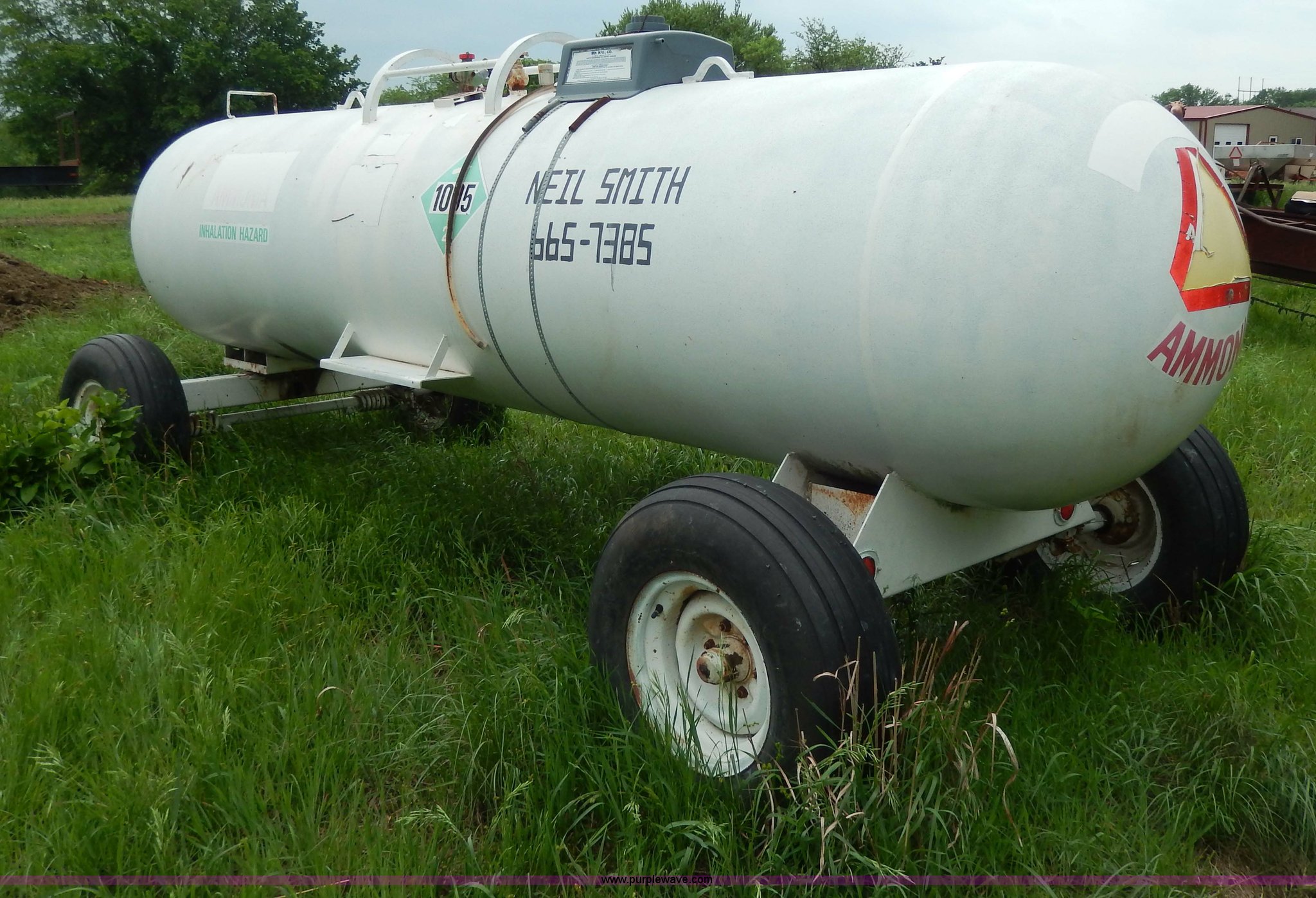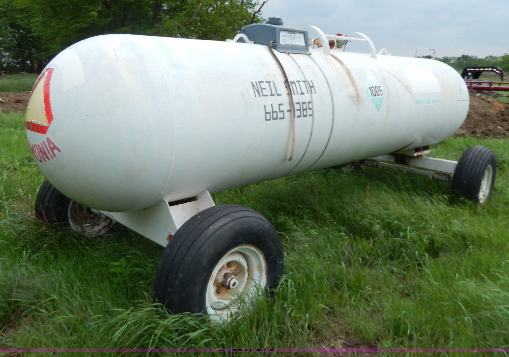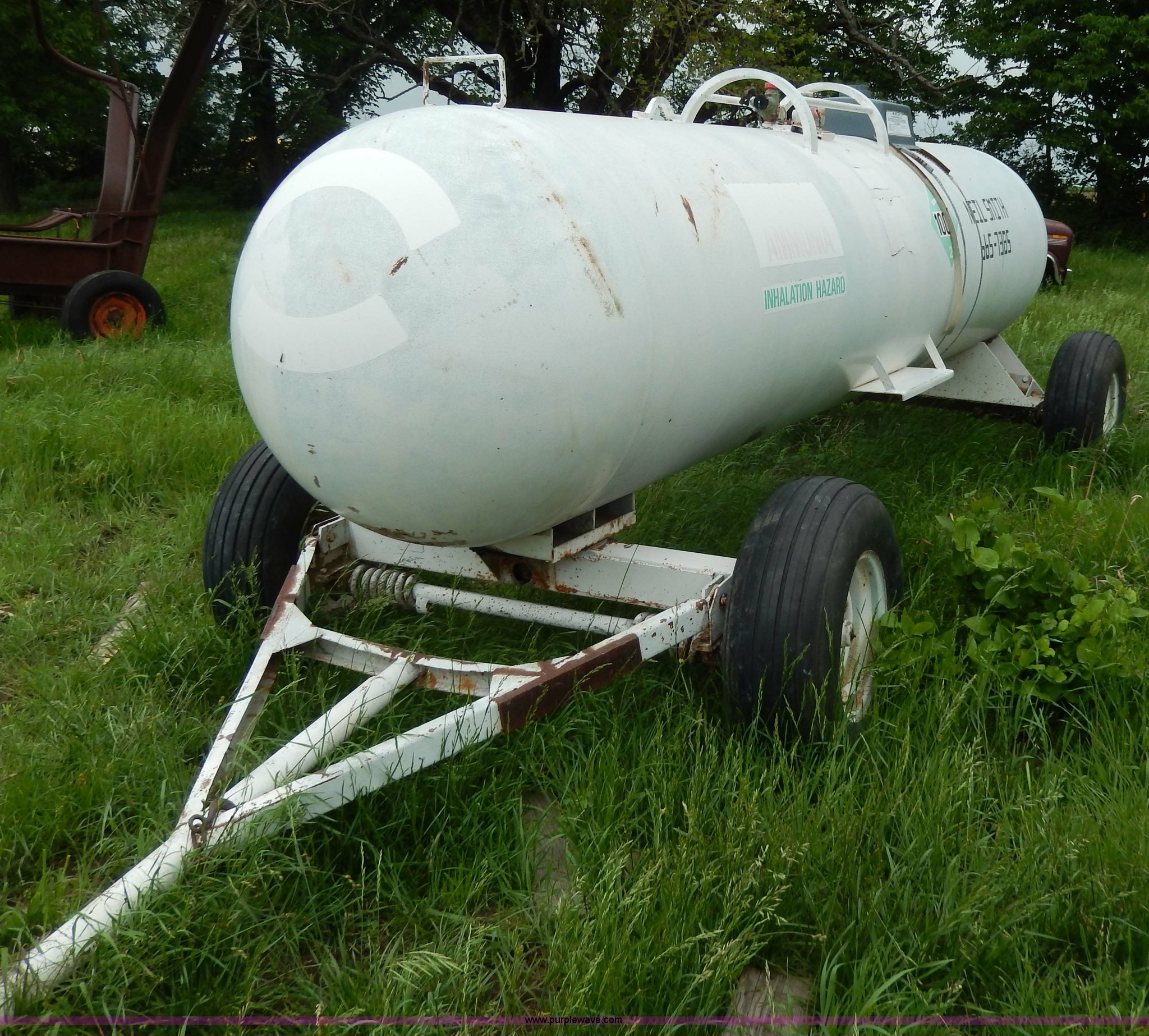 This 1,000 gallon anhydrous tank will sell to the highest bidder regardless of price.