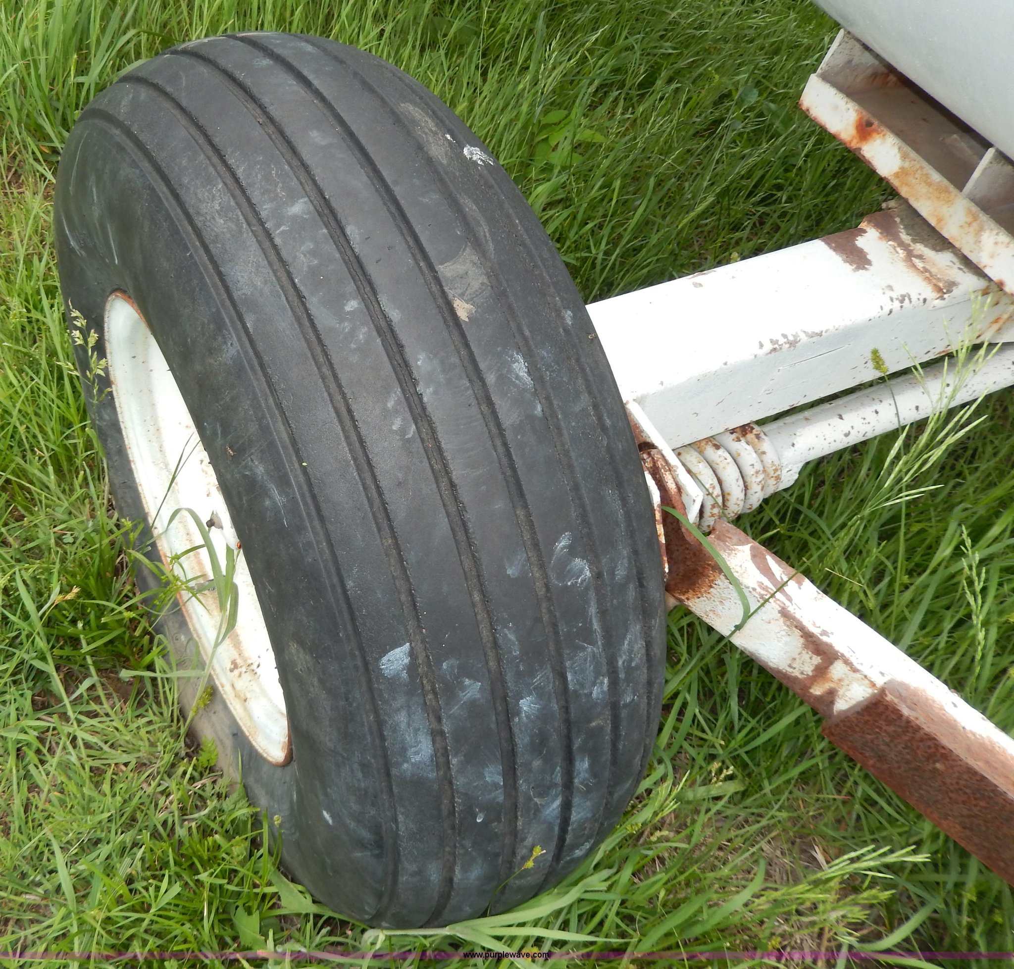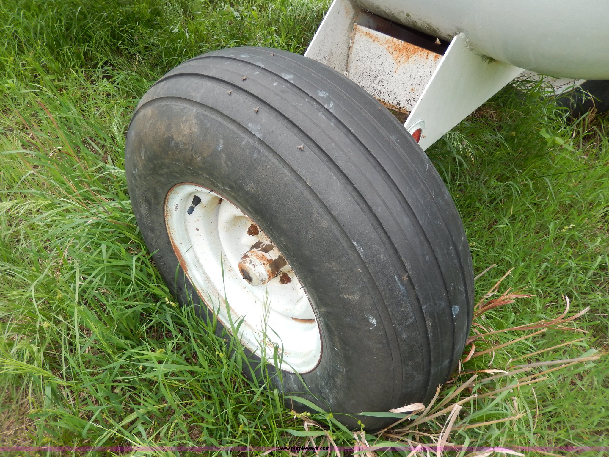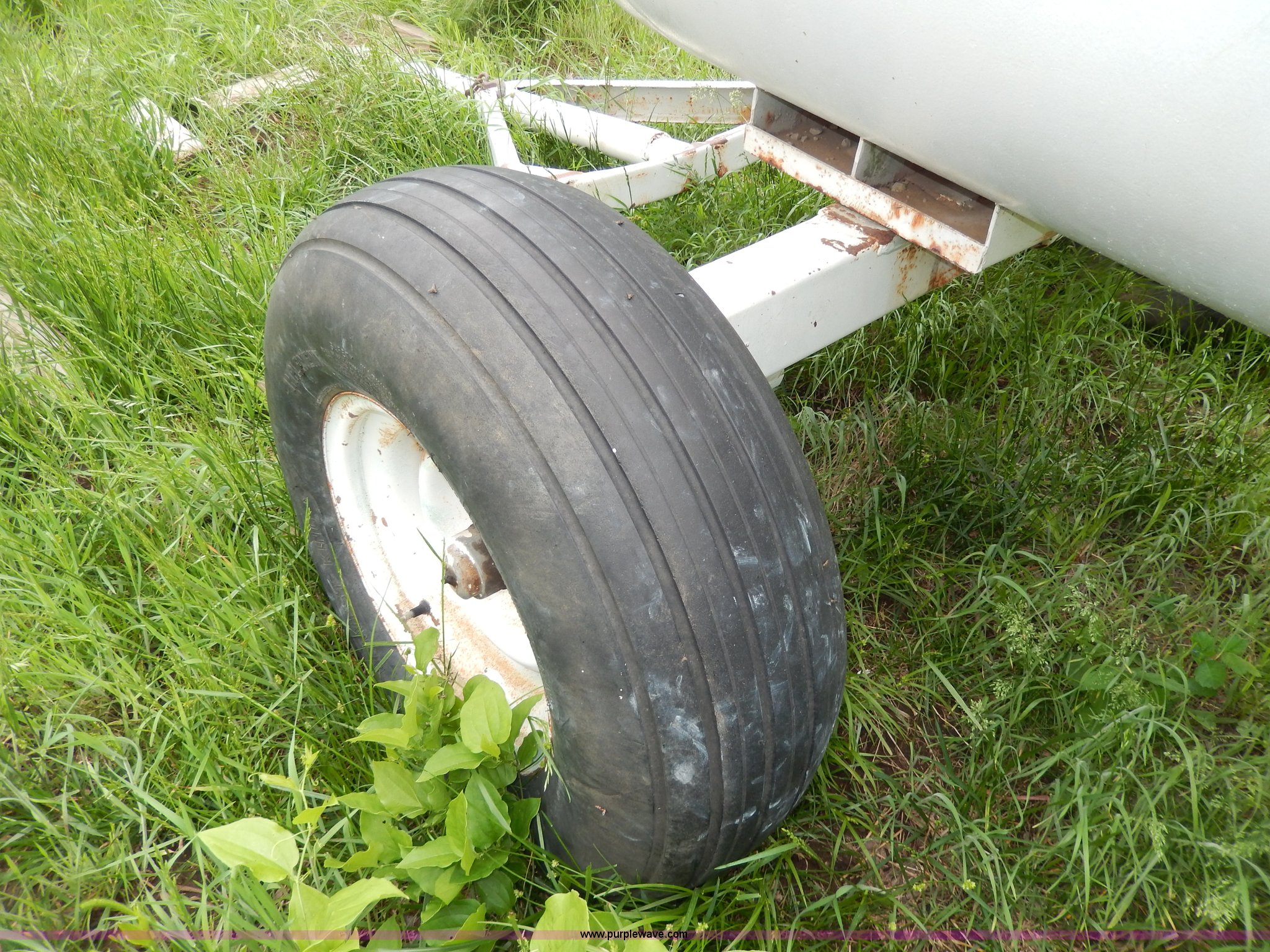 Purple Wave is selling a used Applicator Attach. in Kansas. This item is a 1,000 gallon anhydrous tank with the following: Pin hitch, Gauges and caps, 11L-15 tires