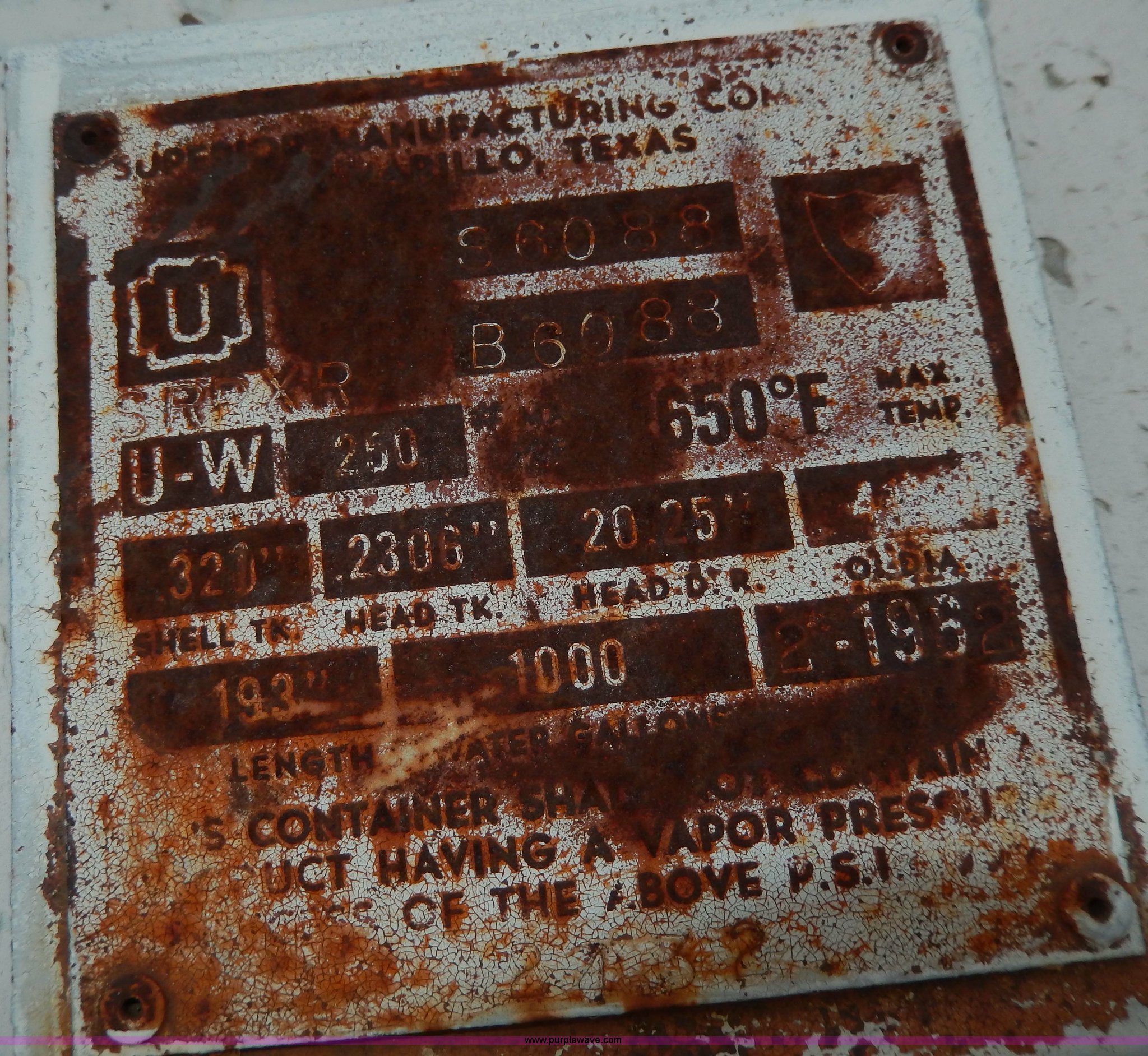 1,000 gallon anhydrous tank has sold in Overbrook, Kansas for $412.50. Item D4784 sold on June 26th, 2013.