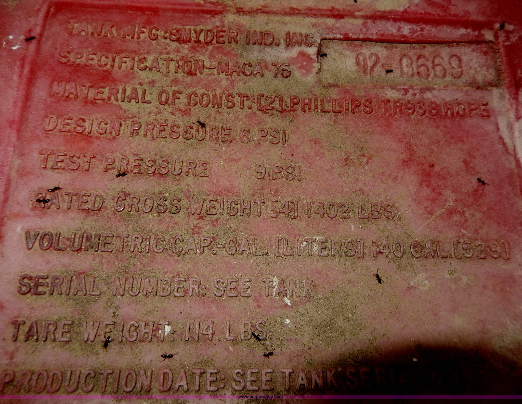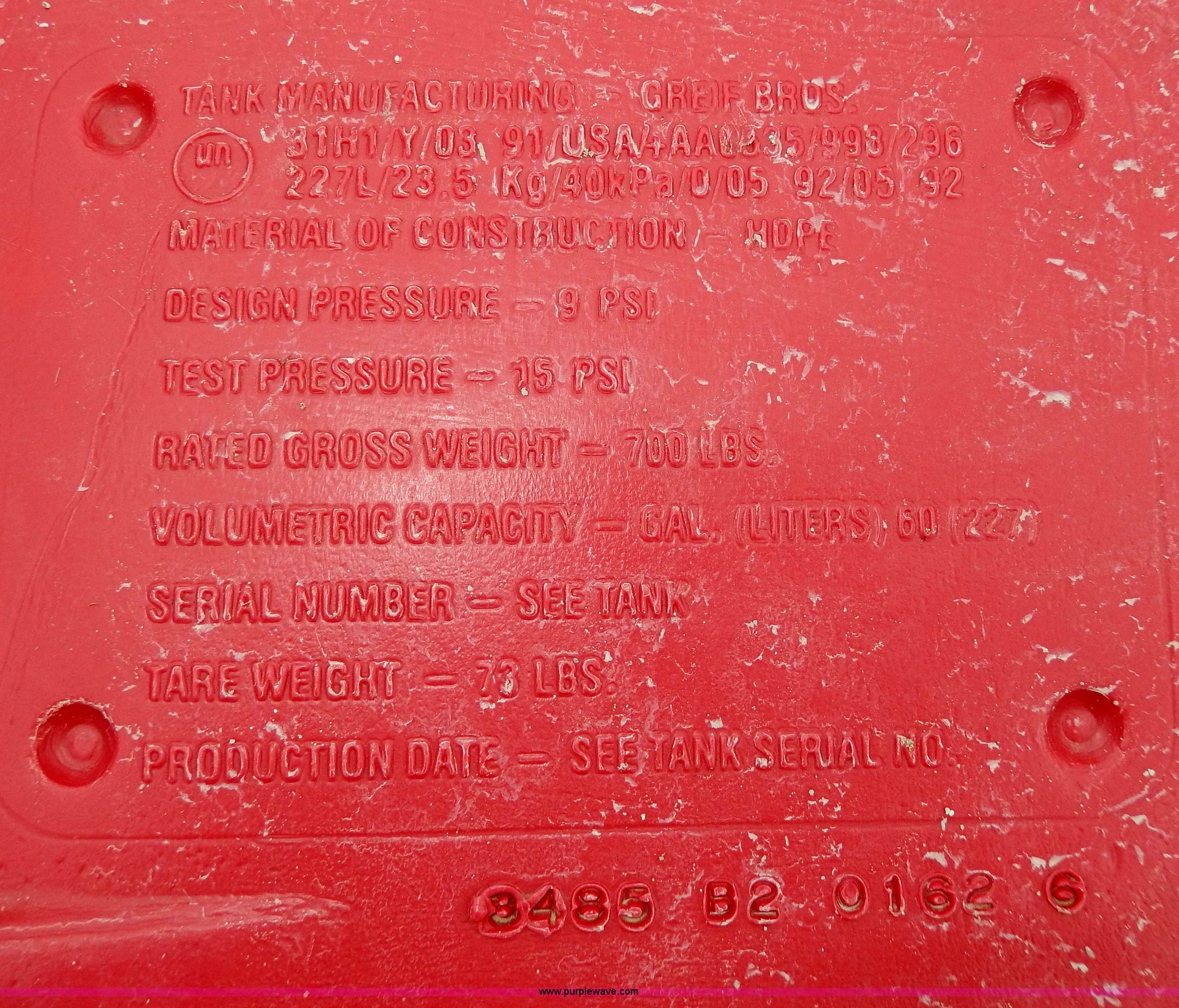 Purple Wave is selling a used Applicator Attach. in Kansas. This item is a (2) Bicep II chemical tanks with the following: 60 gallon and 140 capacities, Caps and plugs included