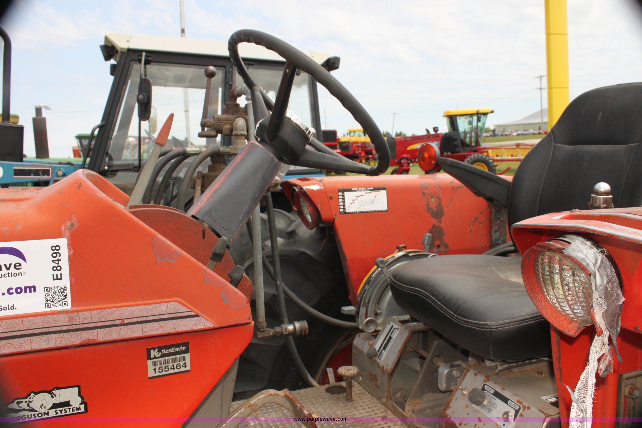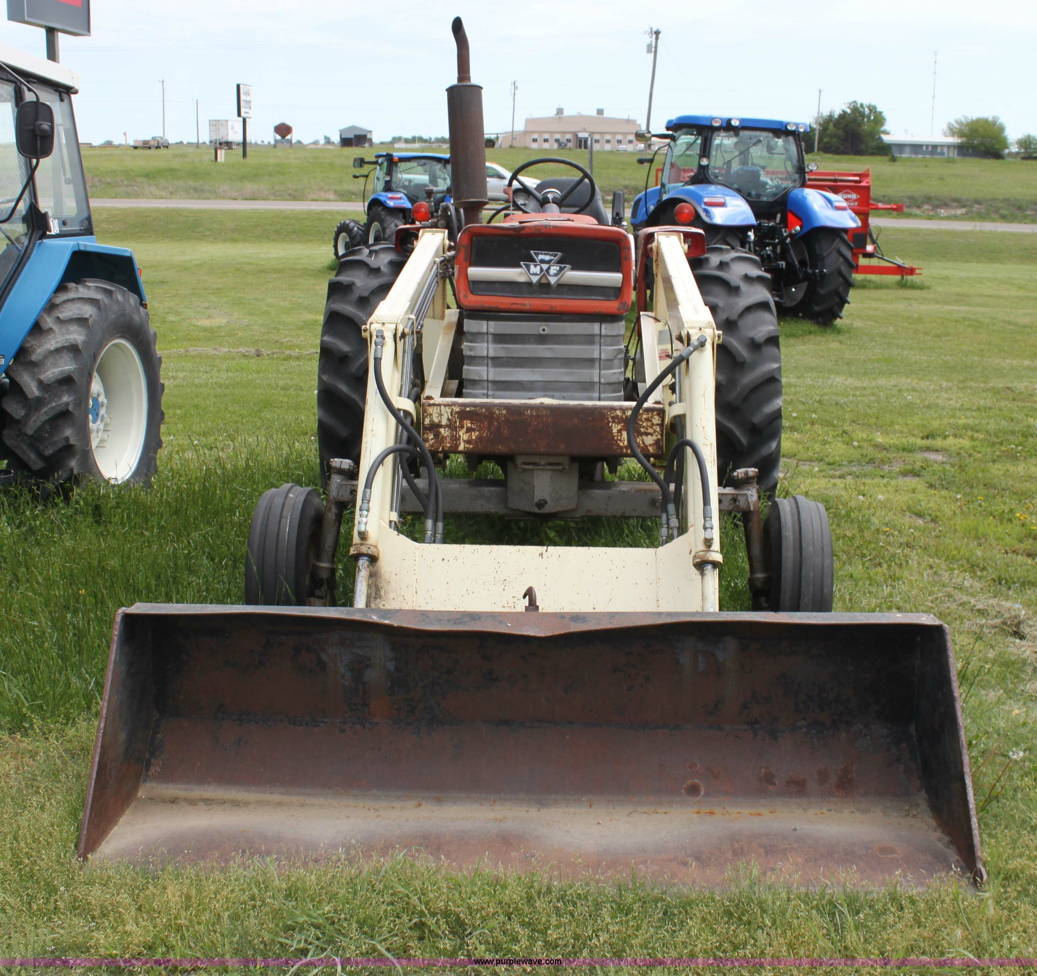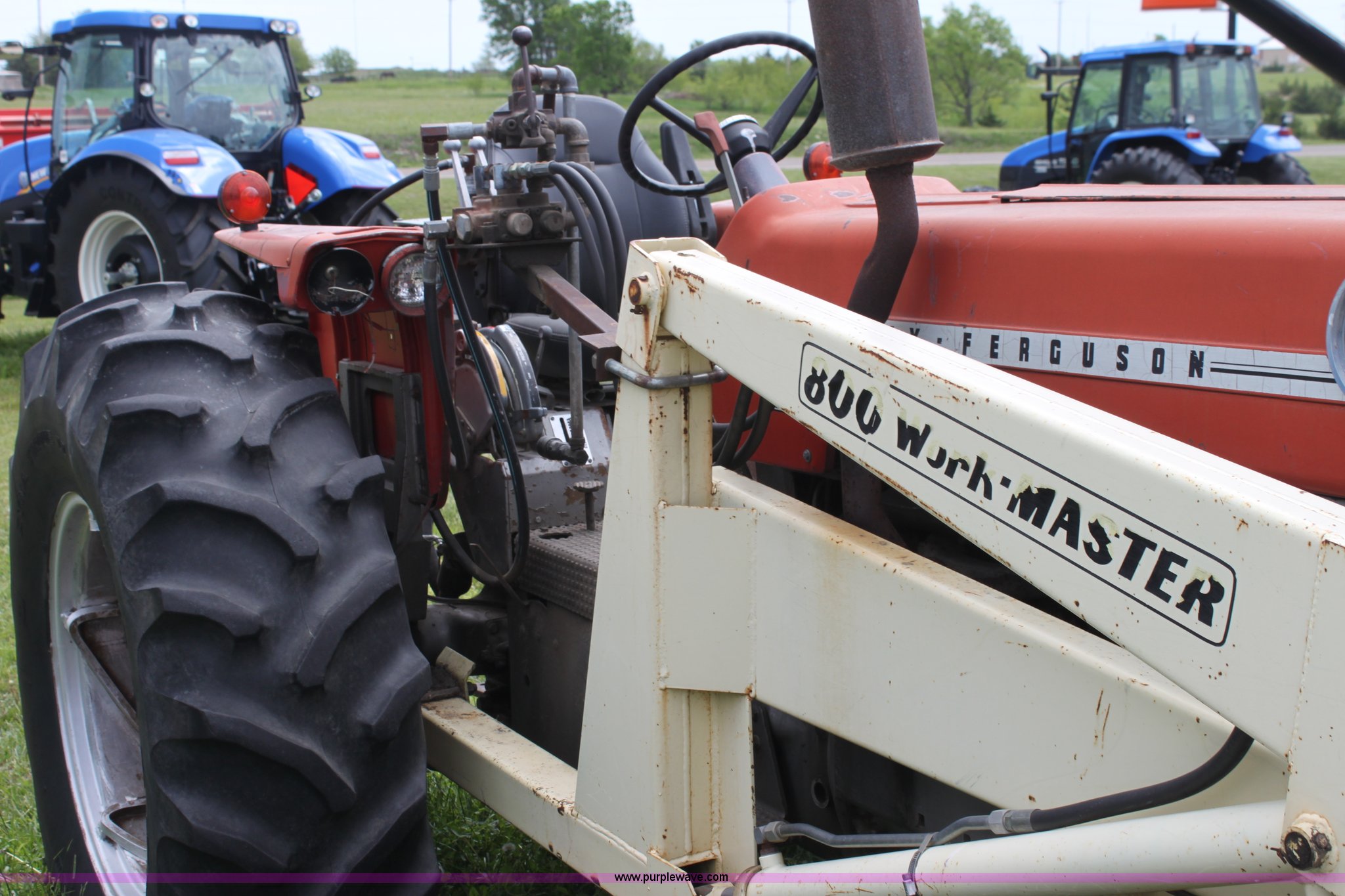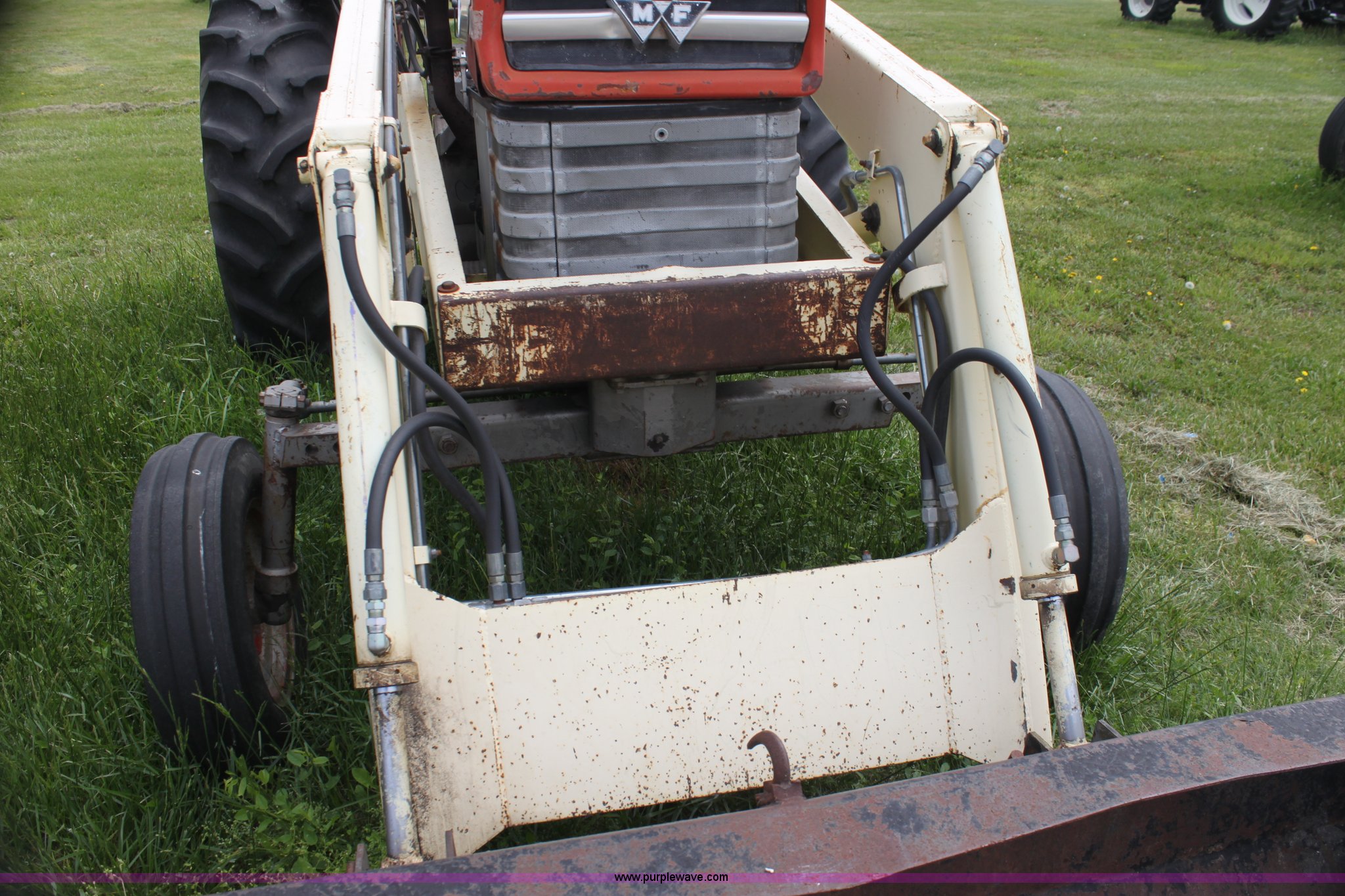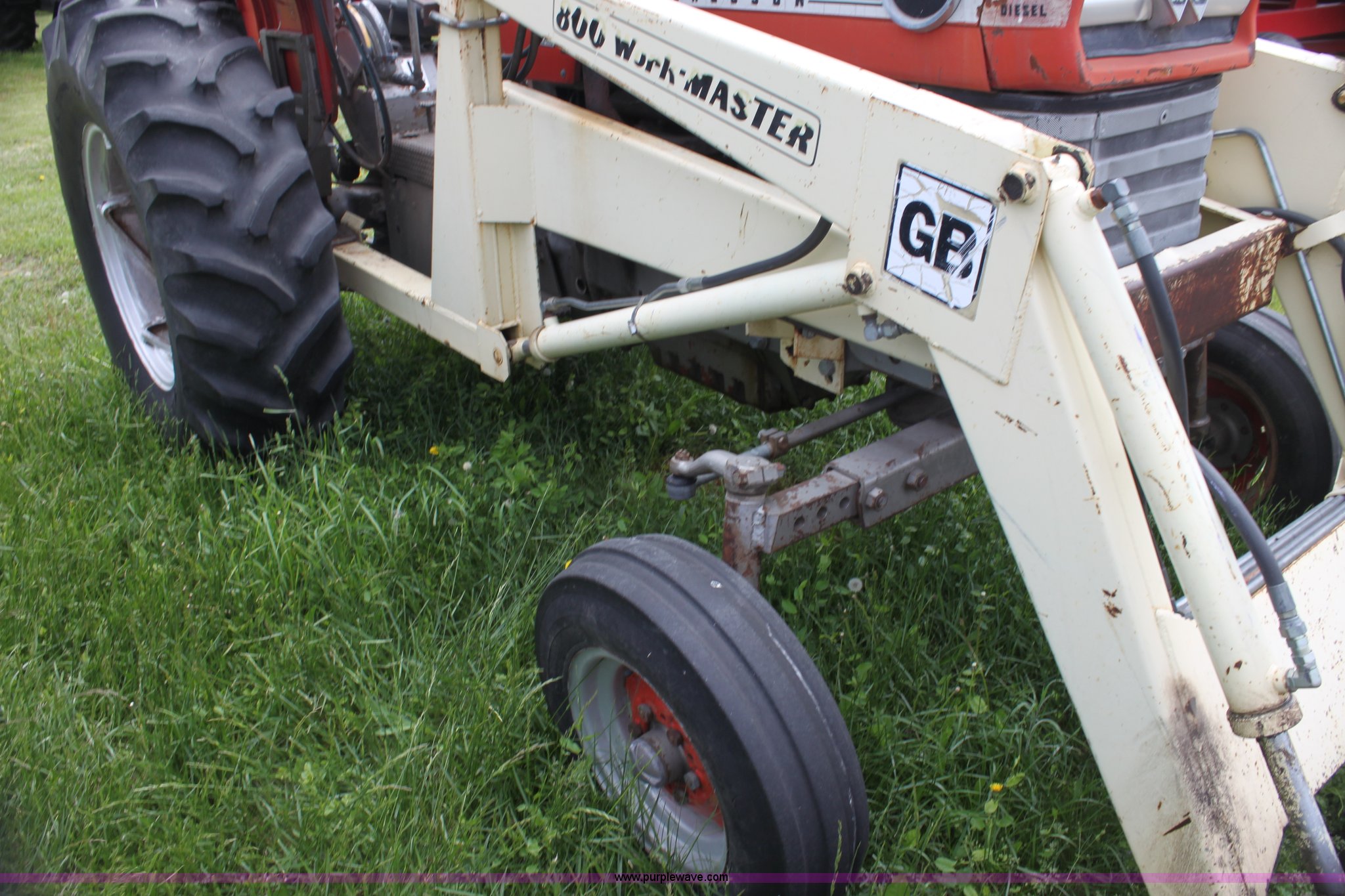 Purple Wave is selling a used Tractor in Kansas. This item is a Massey-Ferguson 180 tractor with the following: 5,174 hours on meter, Perkins diesel engine, Synchro transmission, 6F-2R gears, Tilt steering wheel, Three point, Draw bar, 540 PTO, Single rear hydraulic remote, GB 800 Workmaster loader, 7'W bucket, Hydraulics ran off of PTO, 7.5 x 15 front tires, 18.4 x 30 rear tires, Loader slowly leaks down during operation, Serial CDW645001389, Unit# 155464