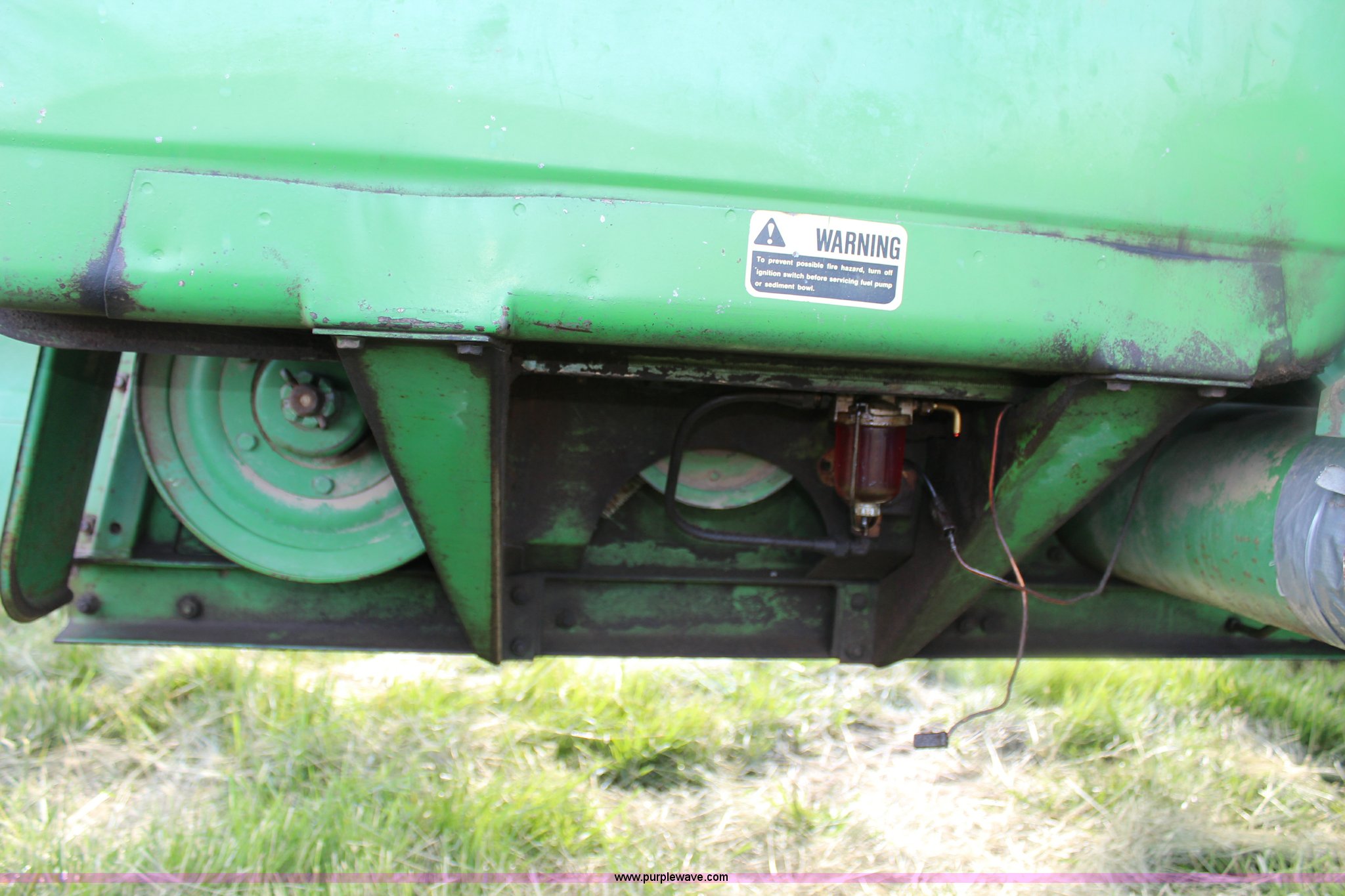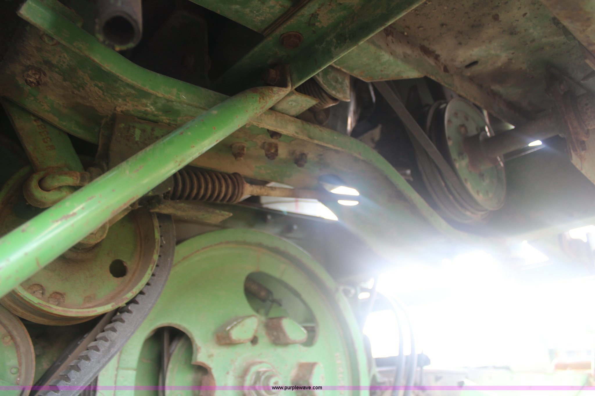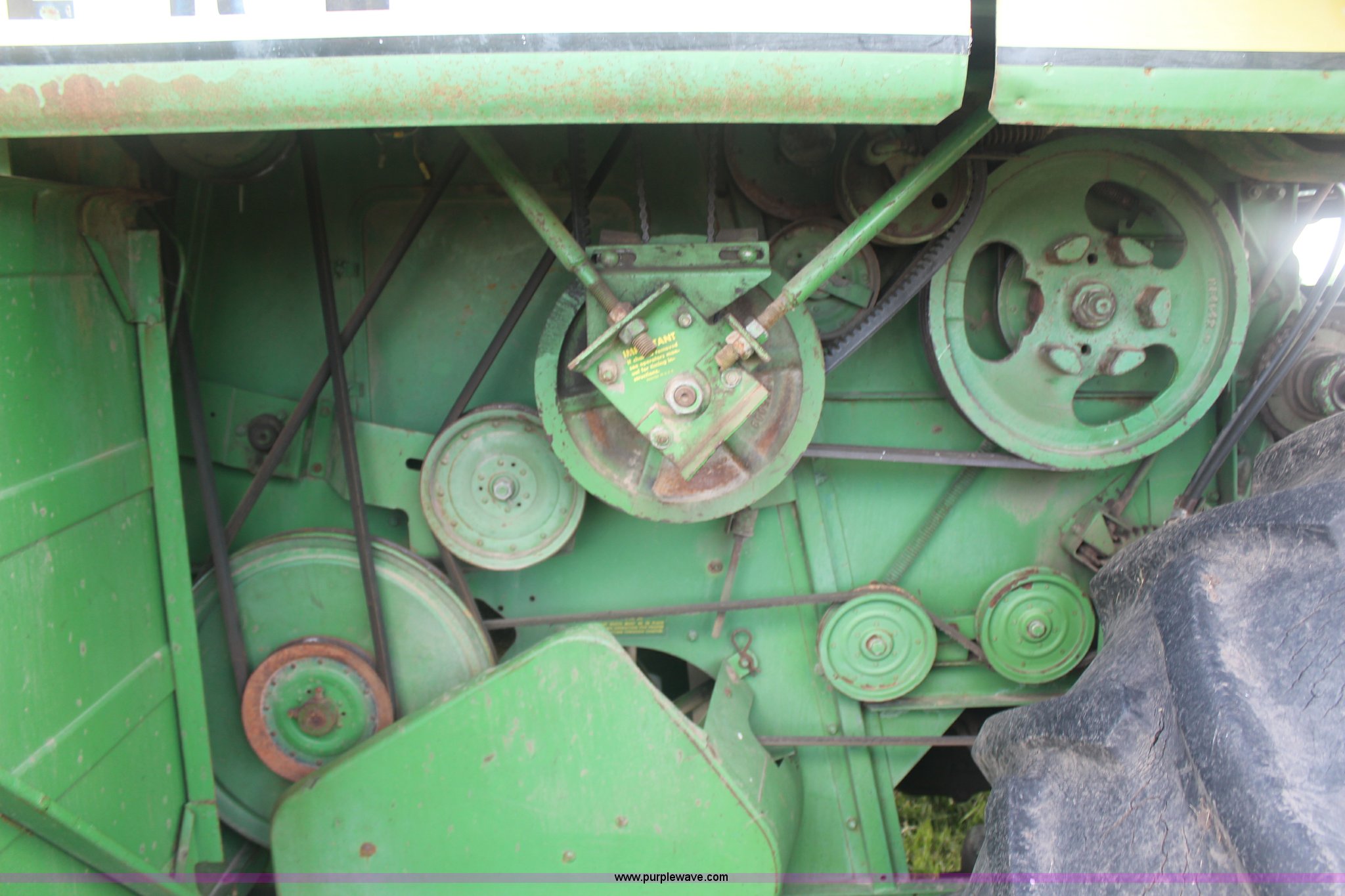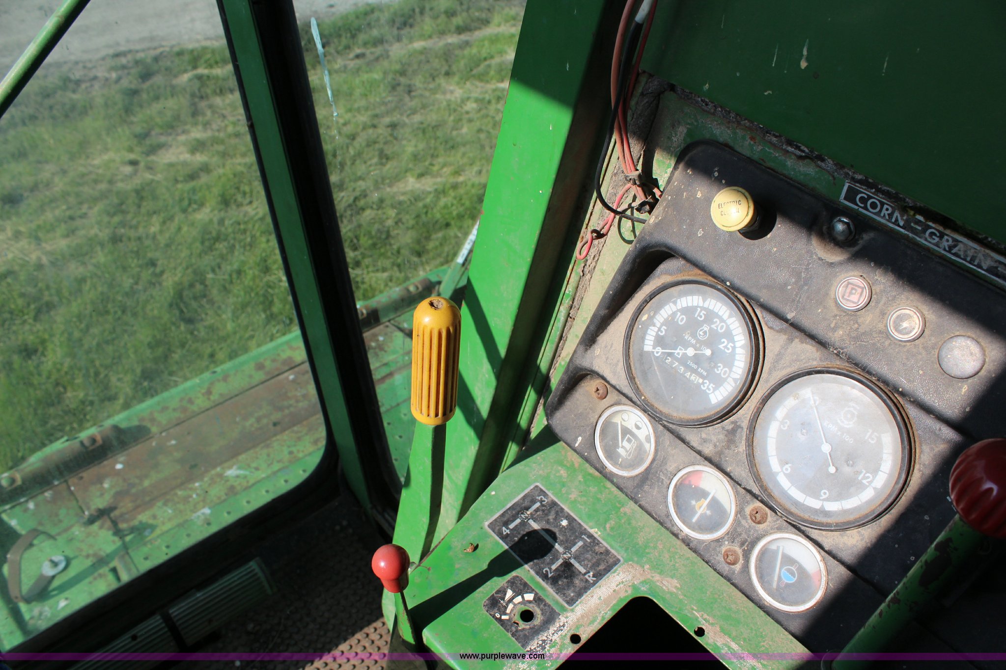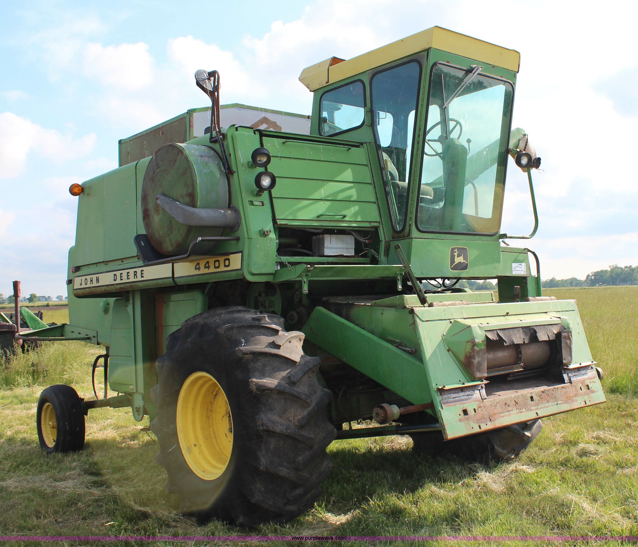 Purple Wave is selling a used Combine in Kansas. This item is a 1976 John Deere 4400 combine with the following: 2,734 engine hours on meter, John Deere six cylinder diesel engine, 100 HP, Four speed hydrostatic transmission, Electric header clutch, Straw spreader, Accumulator, Murphy switches, Auto/manual header height, 23.1-26 front tires, 11L-15 rear tires, Serial 201815H