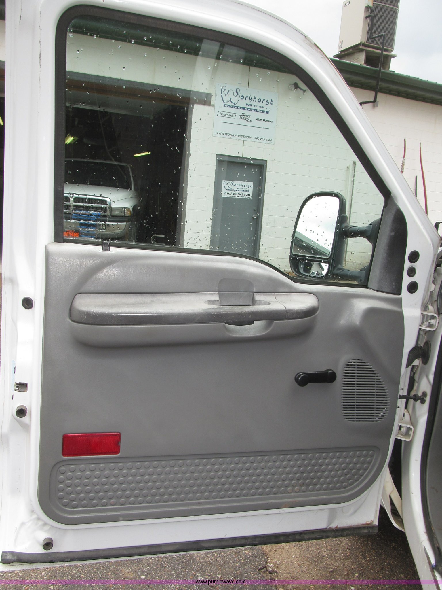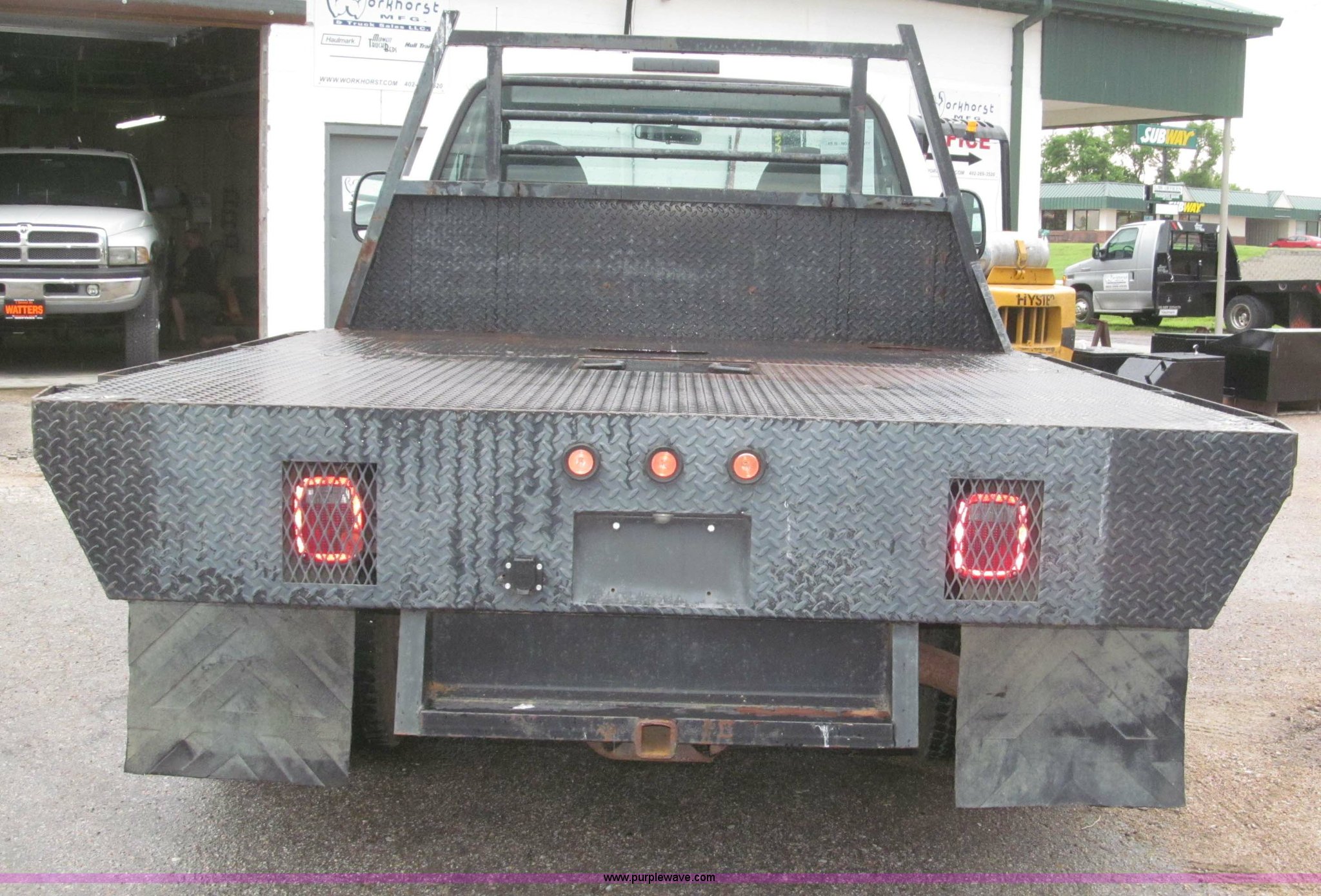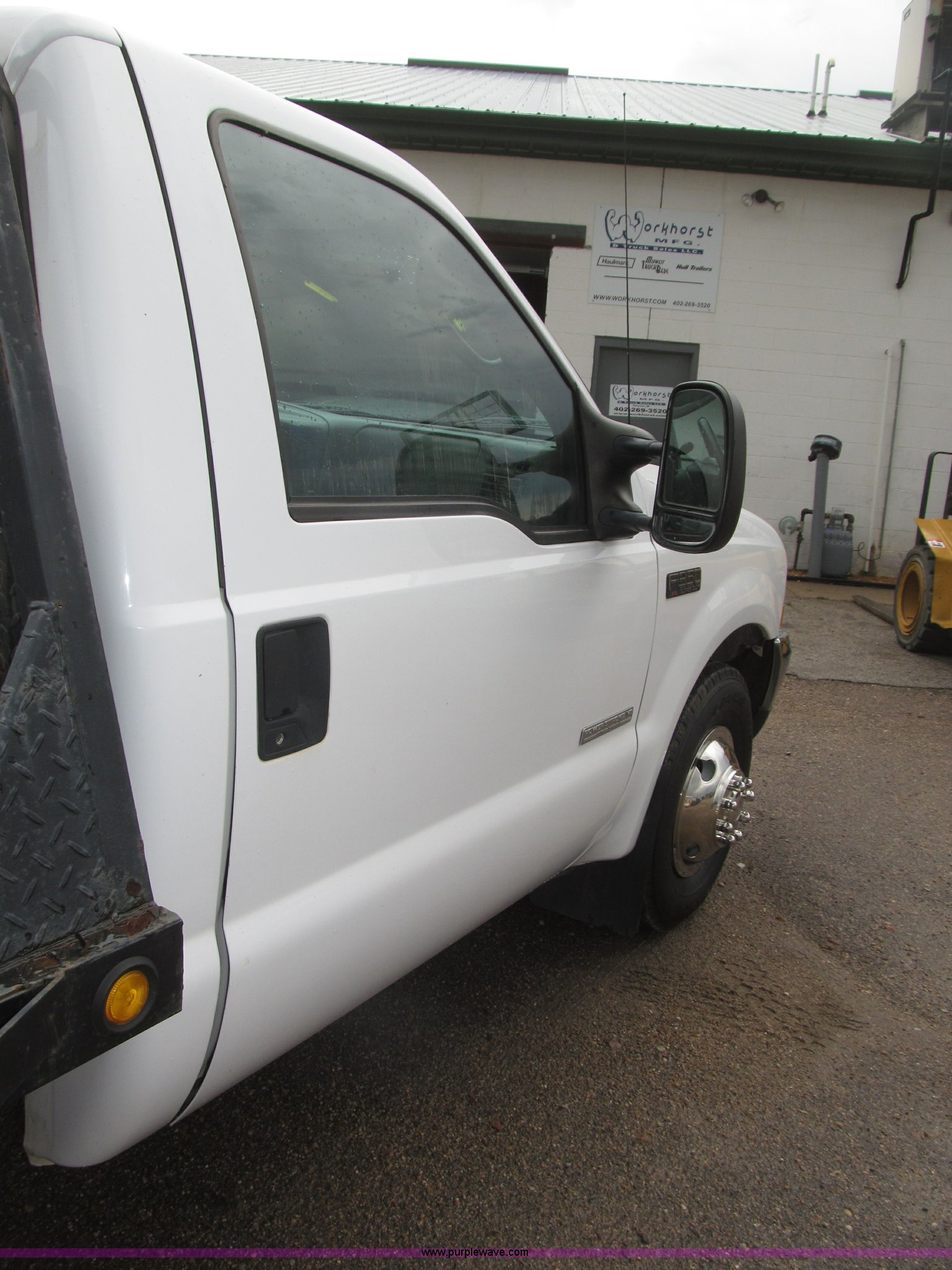 2004 Ford F350 XL Super Duty flatbed truck. 174,899 miles on odometer, 6.0L V8 OHV 32V turbo diesel engine, Automatic transmission, AC and heat, Tilt, Cruise, Pyle Plus PLRCE19U AM/FM/USB/cassette, Manual windows and locks, Cloth interior, J&I 9'L x 92 3/4"W flatbed Rub rails, Four stake pockets per side, Tread plate design, 40"H headache rack Window, Opening in floor for gas bottle, Block heater, Tow hooks, Clearance lights, Recessed gooseneck ball, Receiver hitch, Trailer wiring, Treadstone 235/85R16 front tires, BF Goodrich LT235/85R16 rear tires, Fuel injectors replaced within last six months, Fuel injection control module and high pressure oil pump replaced in the last six months, Front tires replaced June 2013, Recently replaced camshaft sensor and fuel filter, Interior/exterior cosmetic damage, Seat torn, Manuals. 1FDWF36P24EB04167. View equipment video. Shipping quotes available. Workhorst Manufacturing and Truck Sales. 1201 Park Street STE A. Syracuse, NE 68446