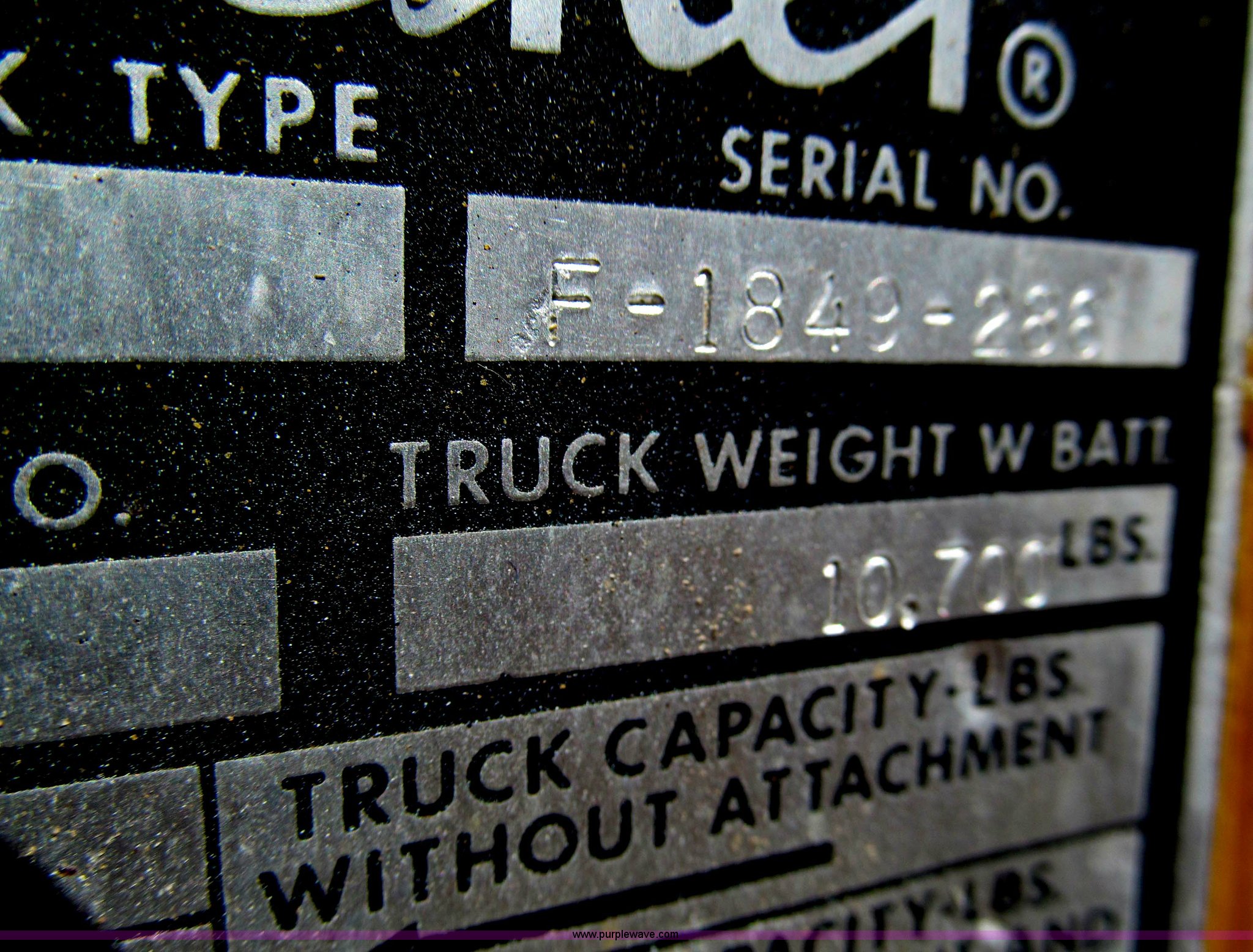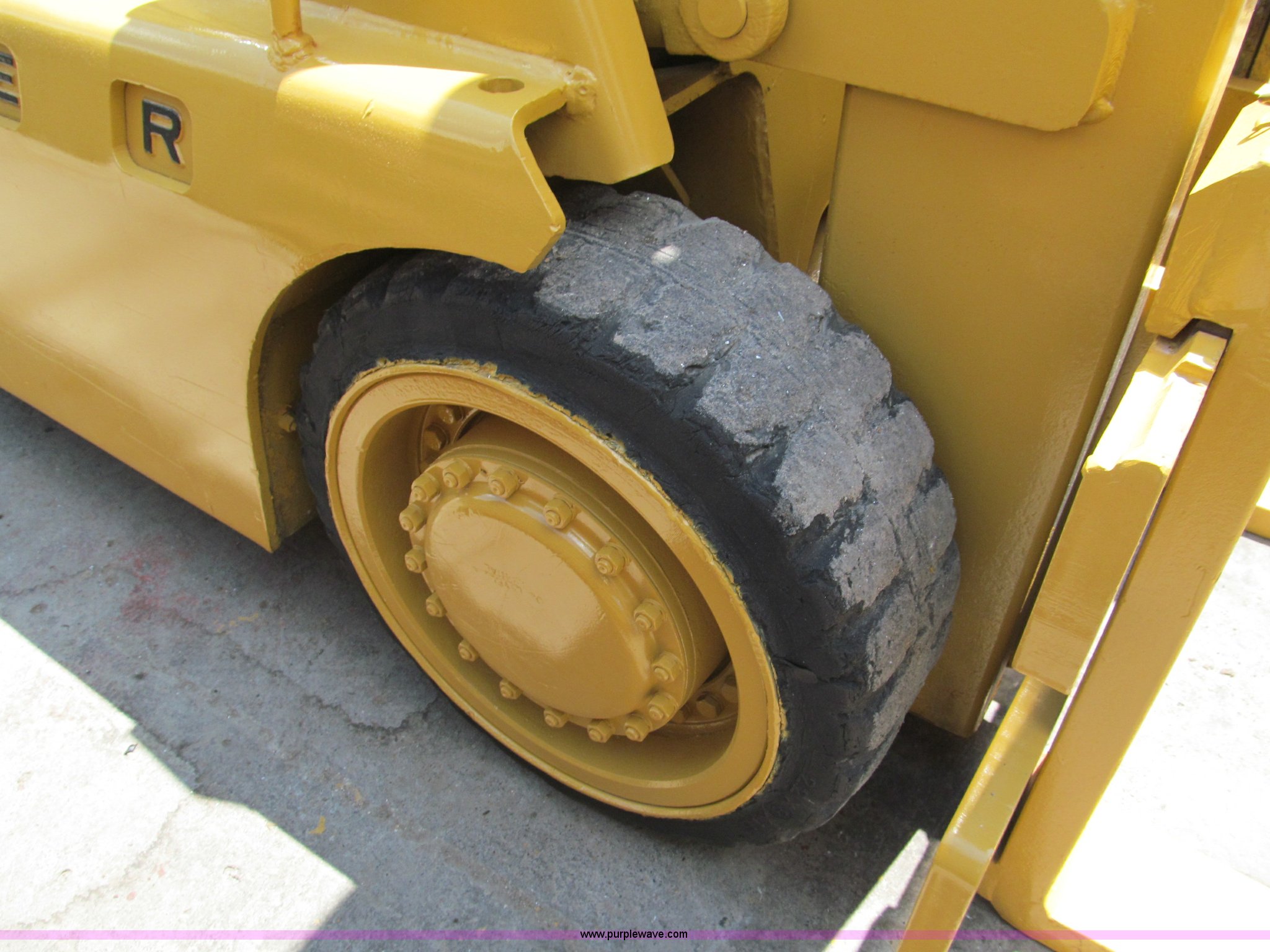 Purple Wave is selling a used Cushion Tire or Pneumatic Forklift in Missouri. This item is a Baker Industrial FGD-060 forklift with the following: 5,965 hours on meter, Continental six cylinder gas engine, 130" maximum lift height, 6,000 lbs maximum lift capacity, 42"L forks, 22 x 8 x 16 solid front tires, 18 x 6 x 12 1/8 solid rear tires, Recently replaced seat, New paint, Serial F-1849286