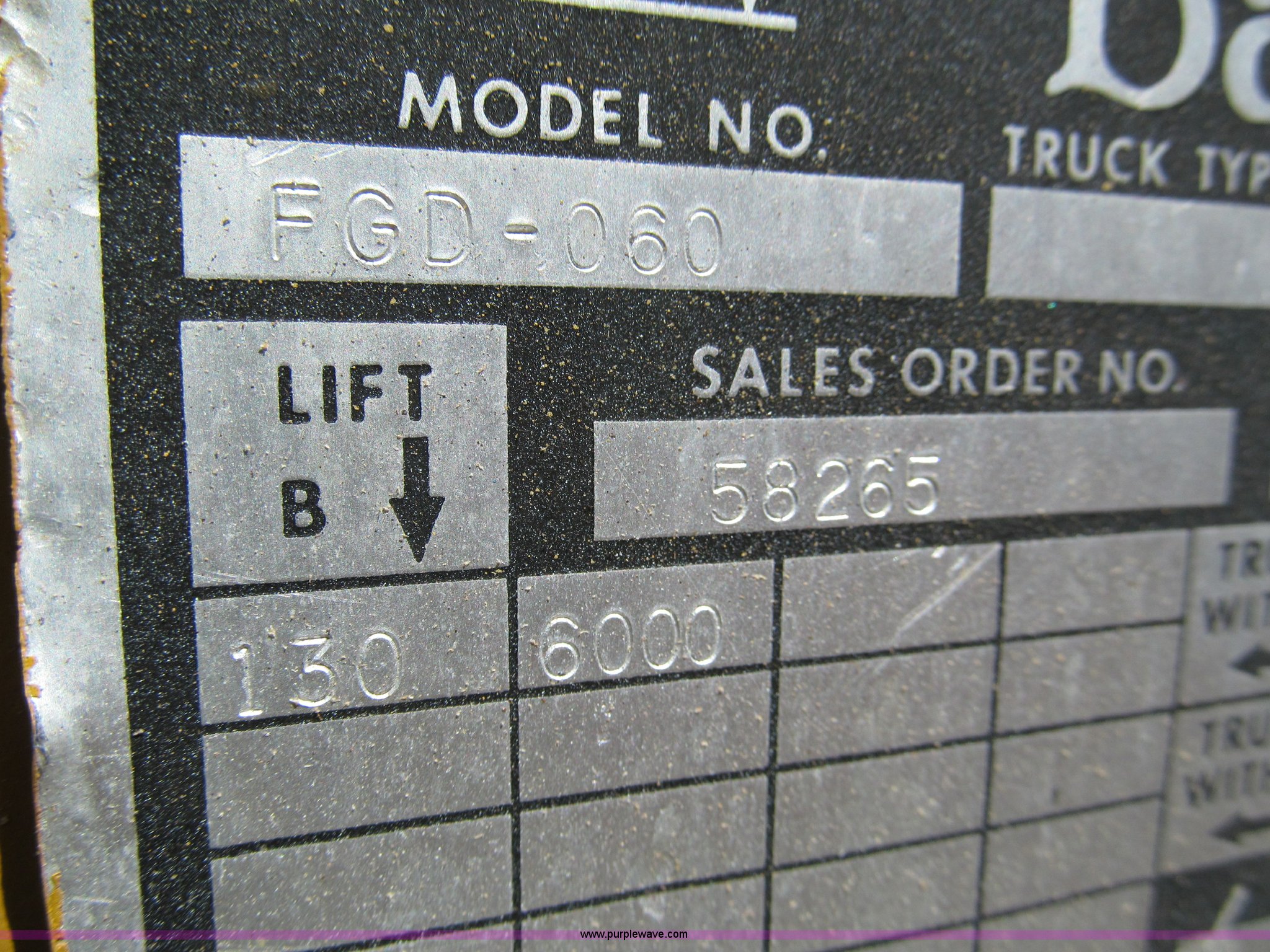 Baker Industrial FGD-060 forklift has sold in Kansas City, Missouri for $1155. Item F5080 sold on June 26th, 2013.